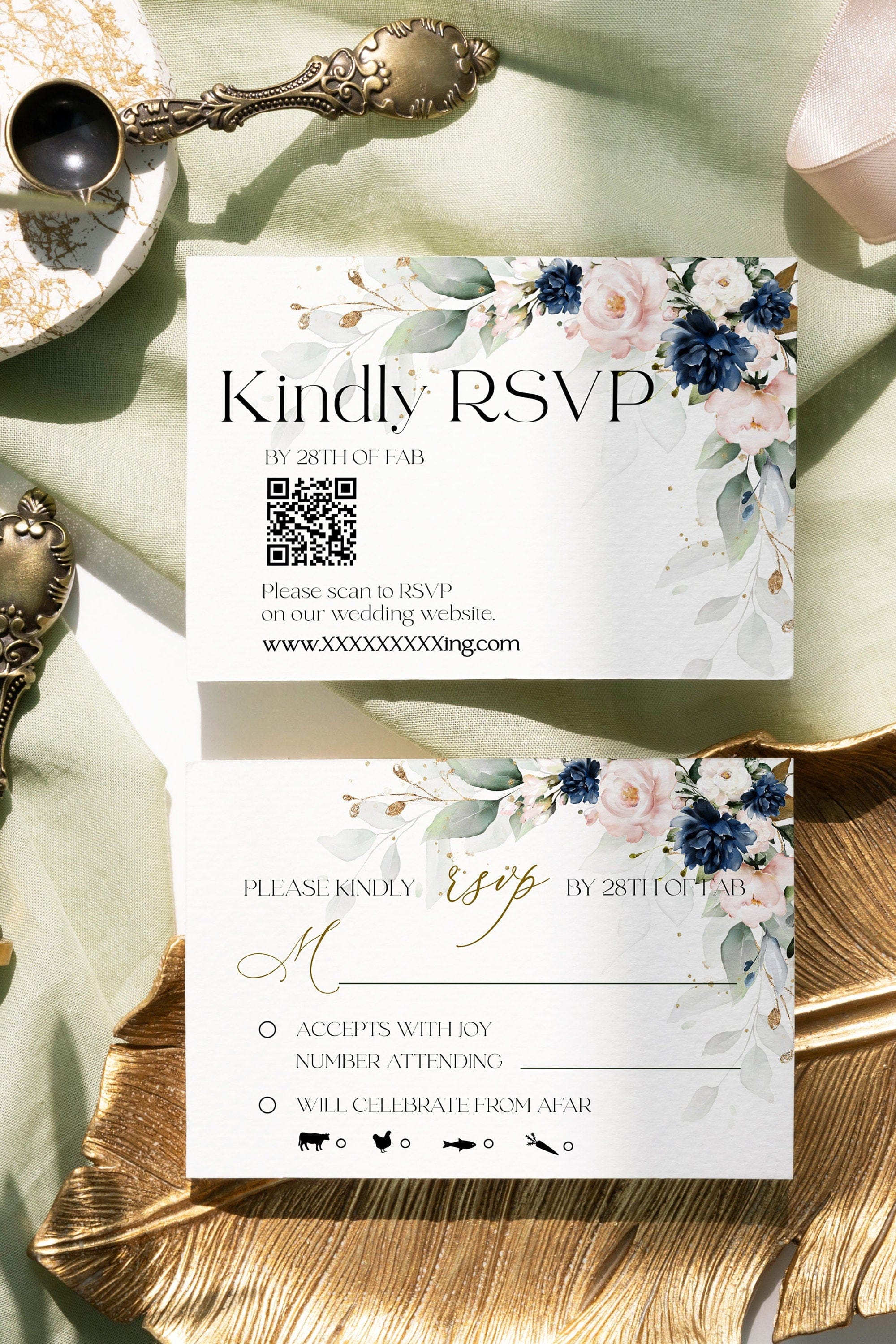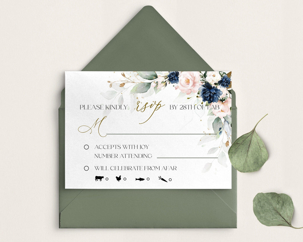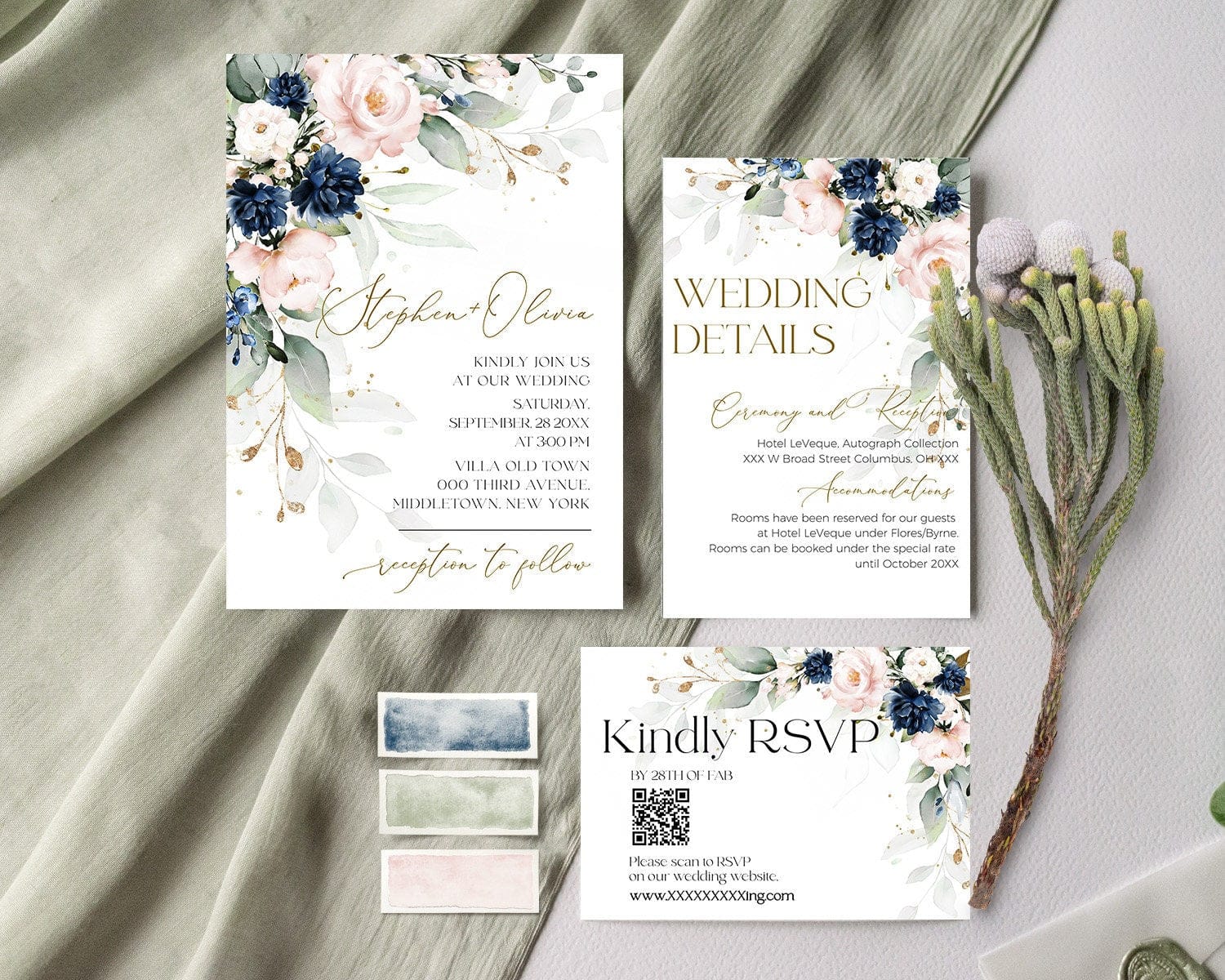 Royal Blue & Blush Wedding Invite Suite, EDITABLE Templates