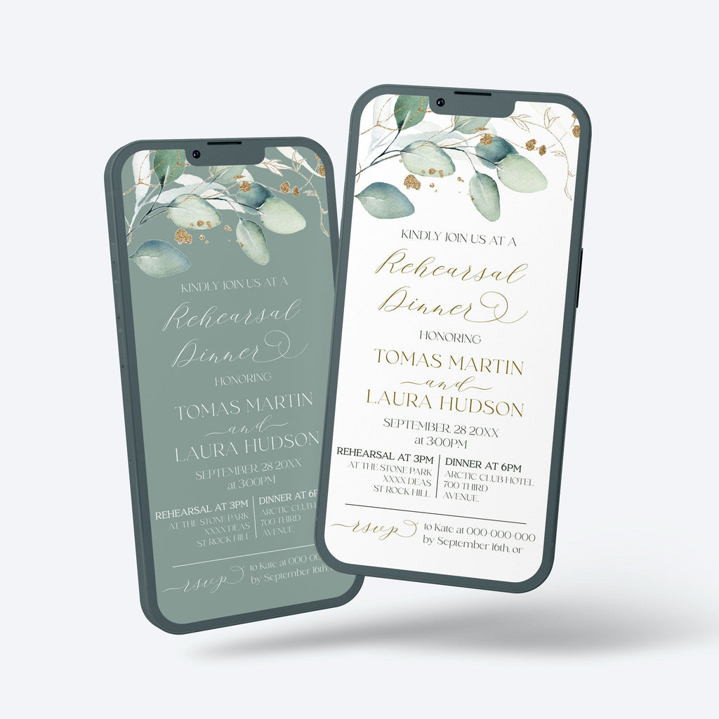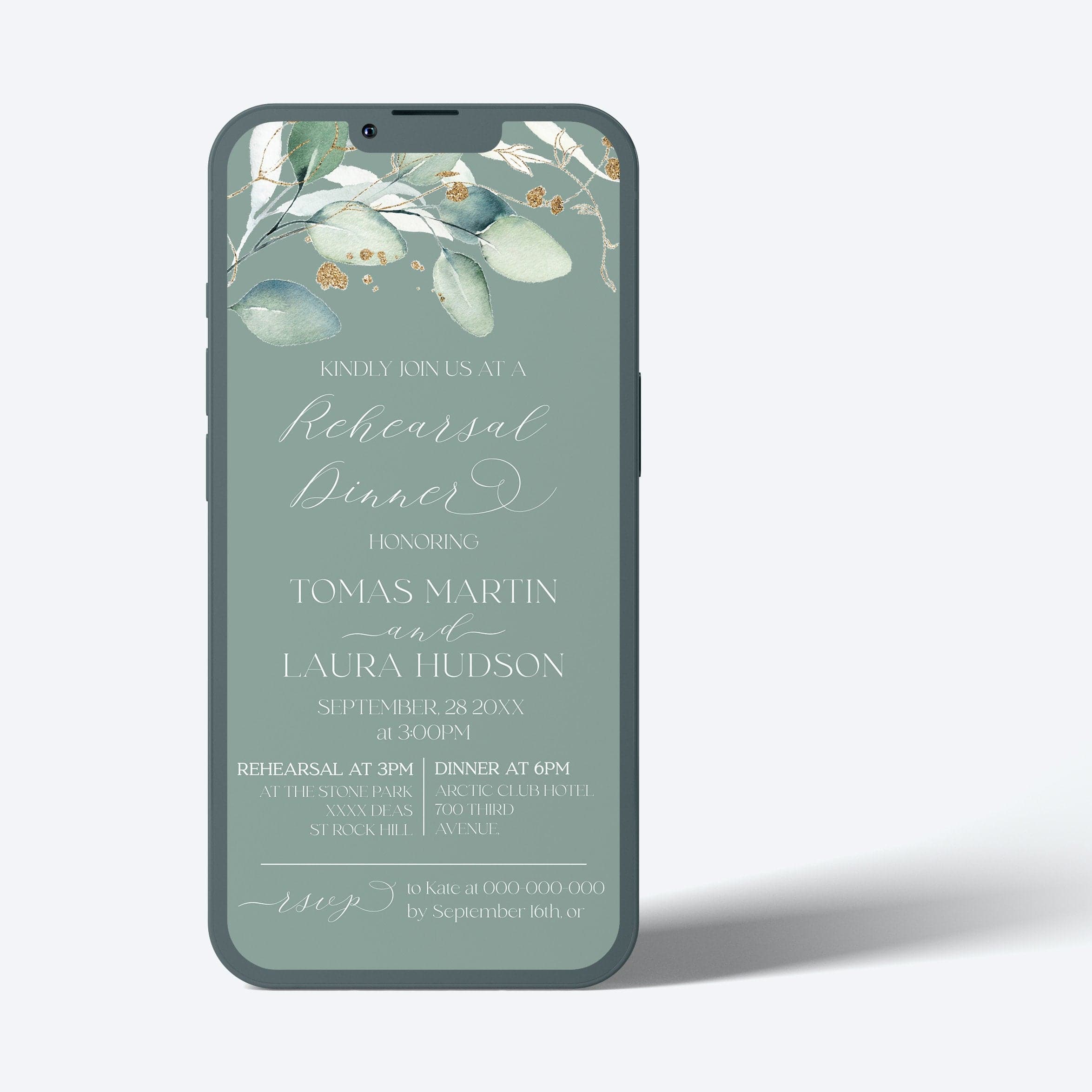 Sage & Gold Rehearsal Dinner Evite, EDITABLE Templates