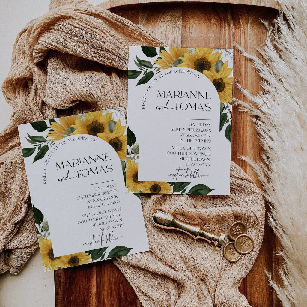 Sunflower Wedding Invitation with Rustic Floral Design | 3 Sizes | DIY Bride Inspo