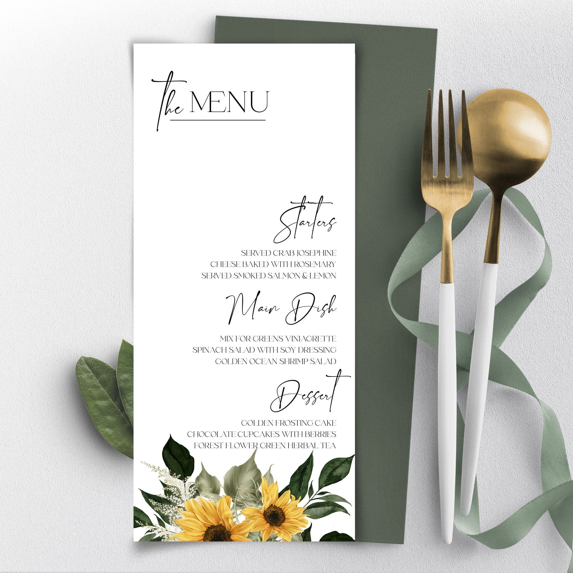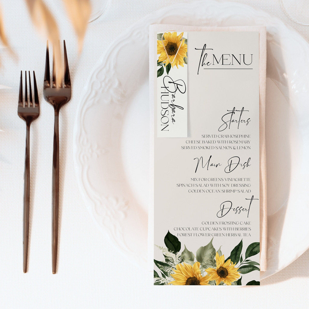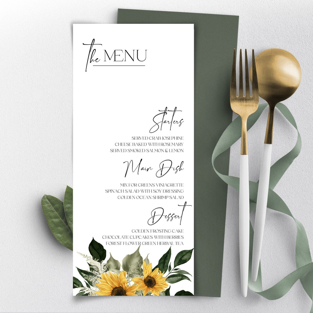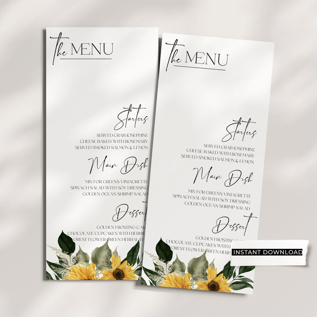 Sunflower Wedding Menu Card, EDITABLE Templates