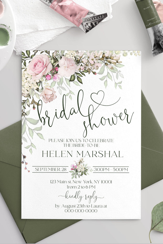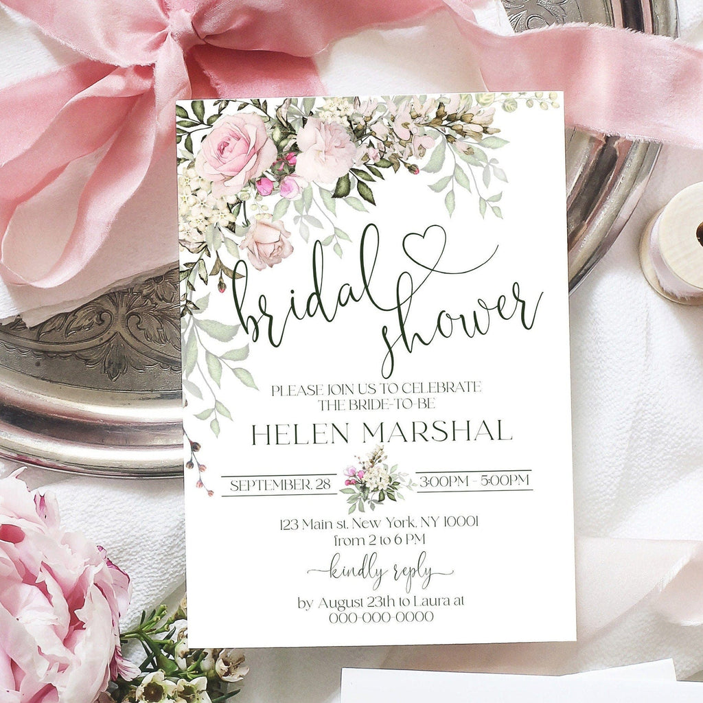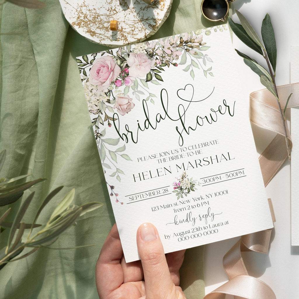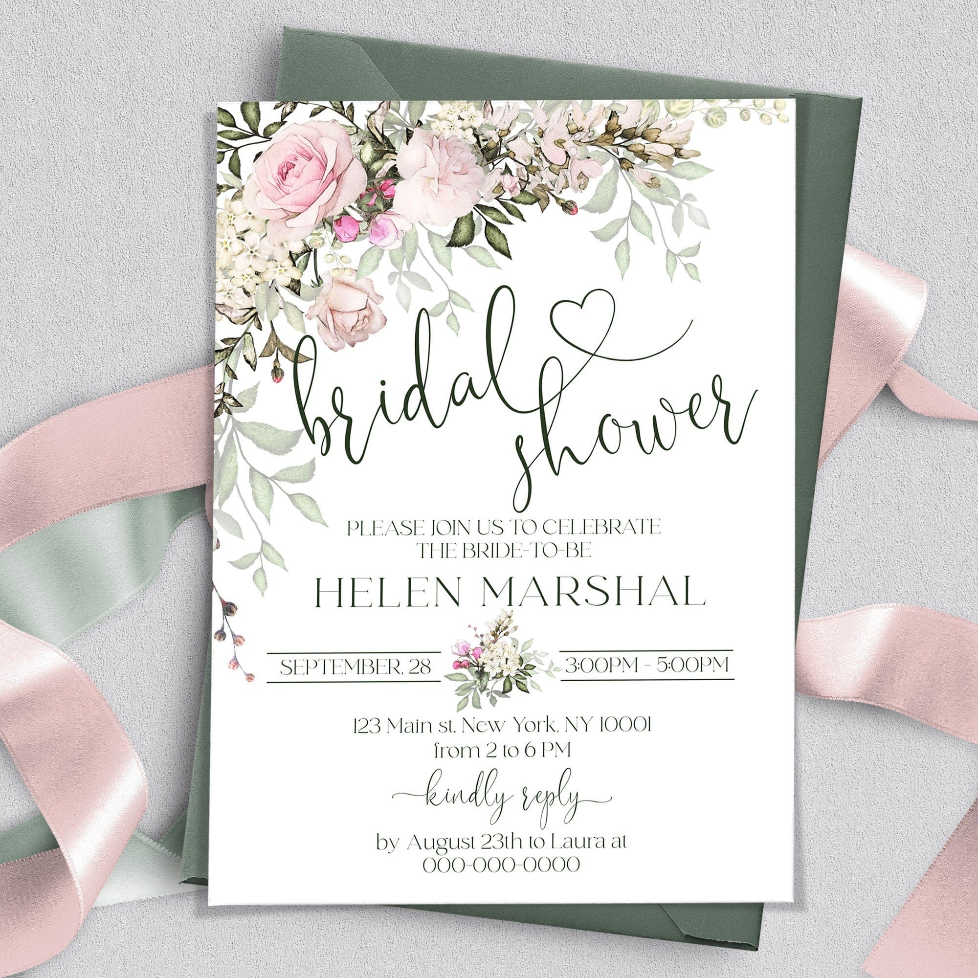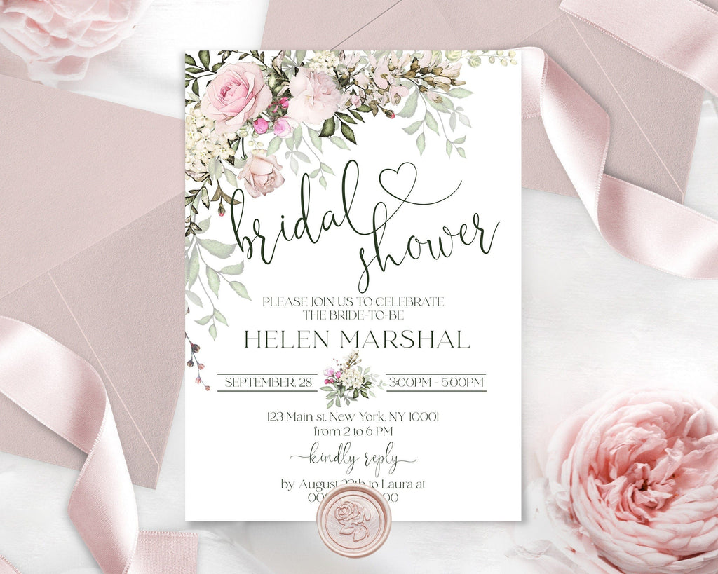 Tea Rose Bridal Shower Invitation | 3 Sizes Included | Blush Pink Shower Invites