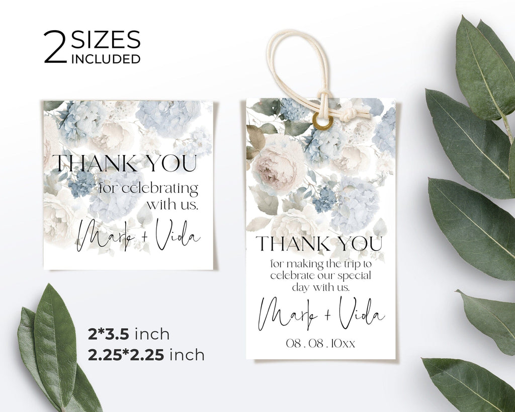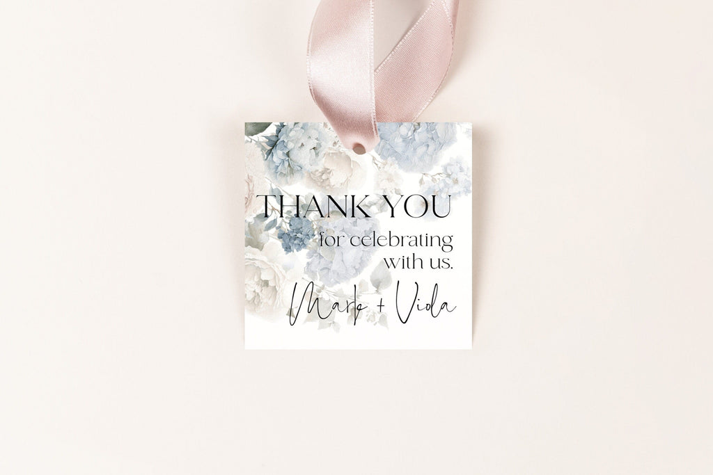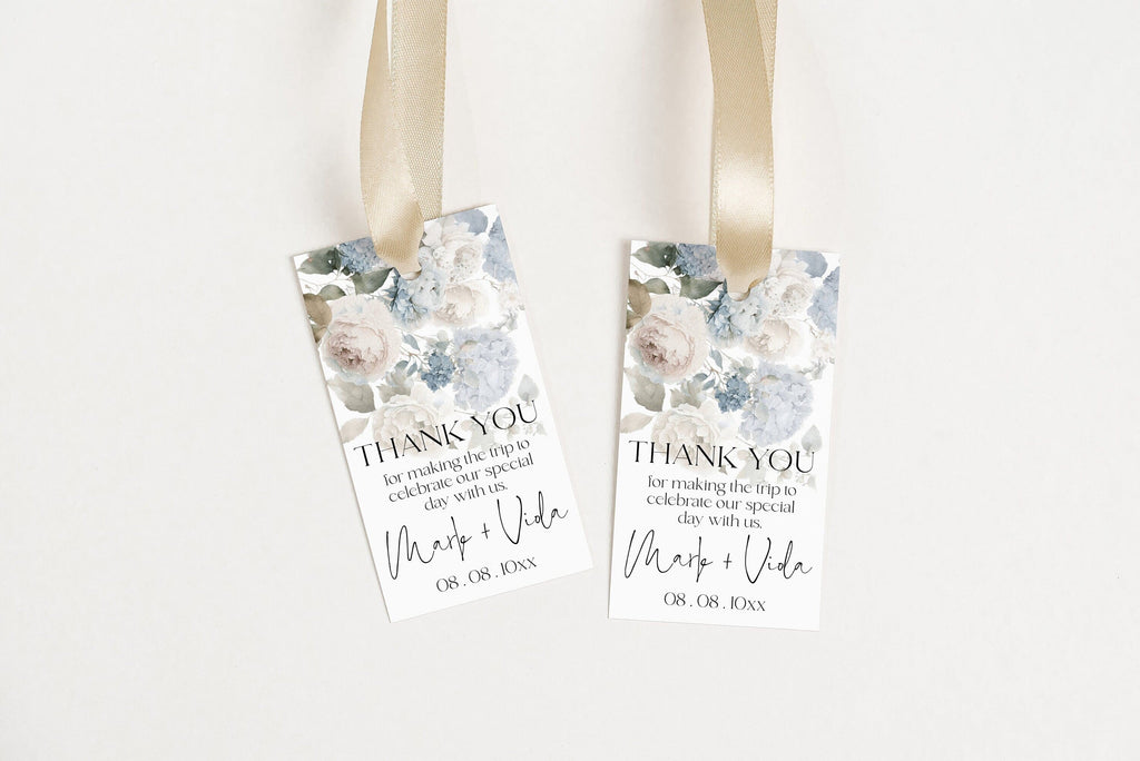 Dusty Blue & Blush Favor Tags, EDITABLE Templates