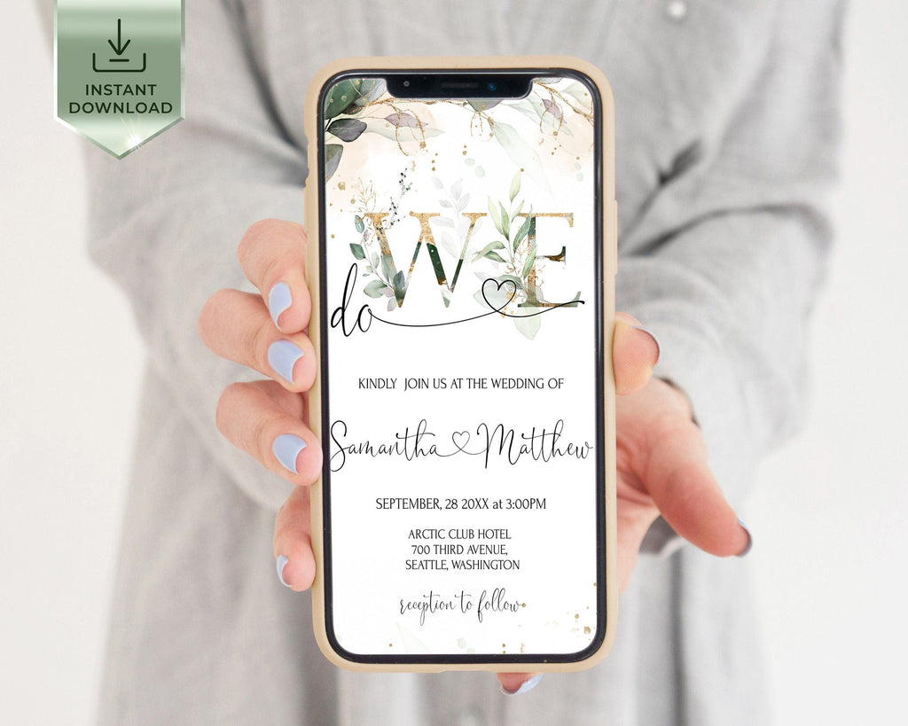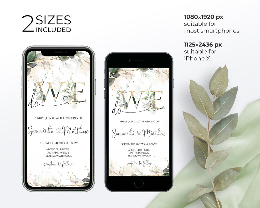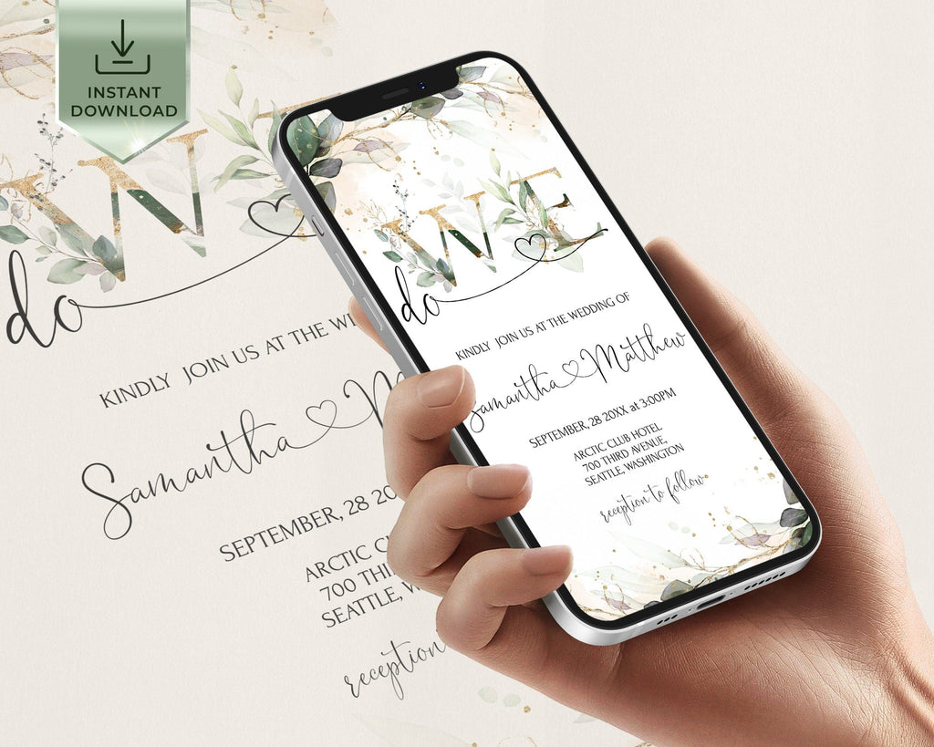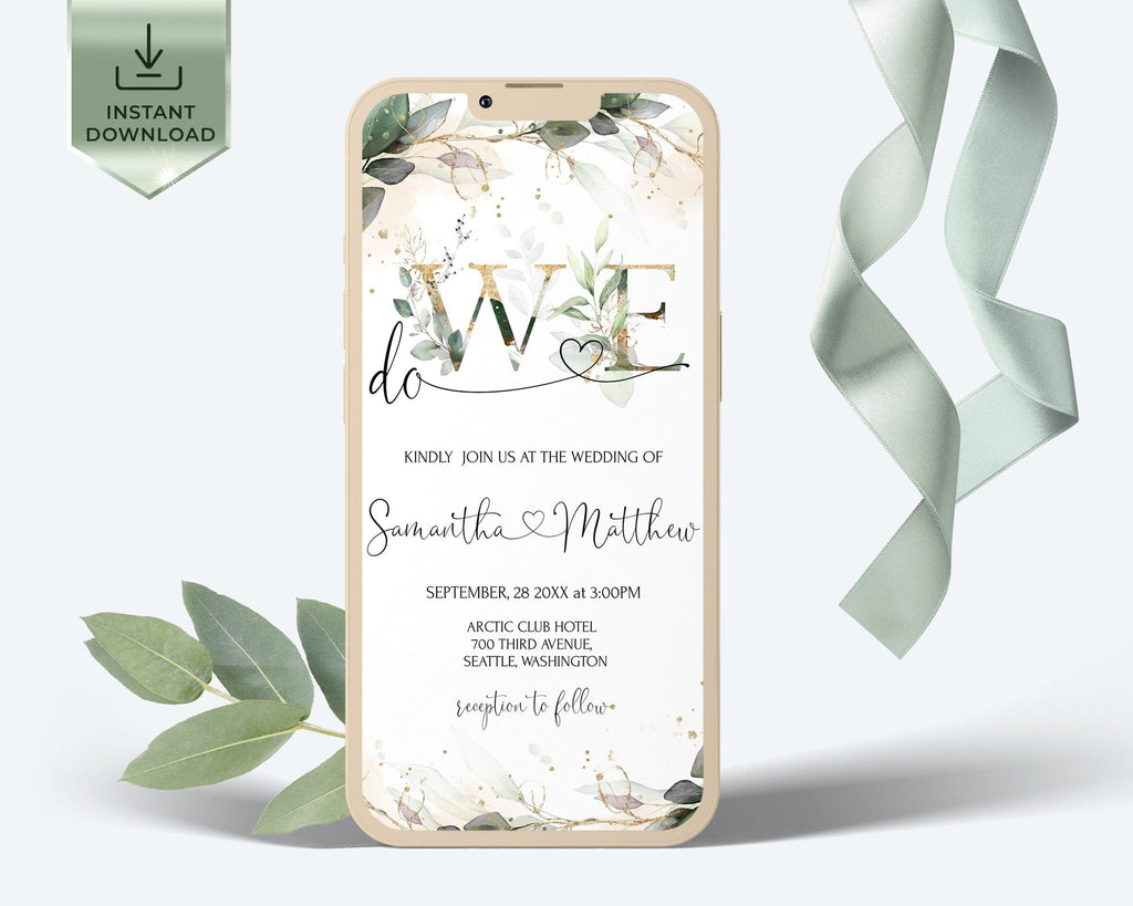 We do Wedding Invitation Suite | Greenery Gold Digital Set