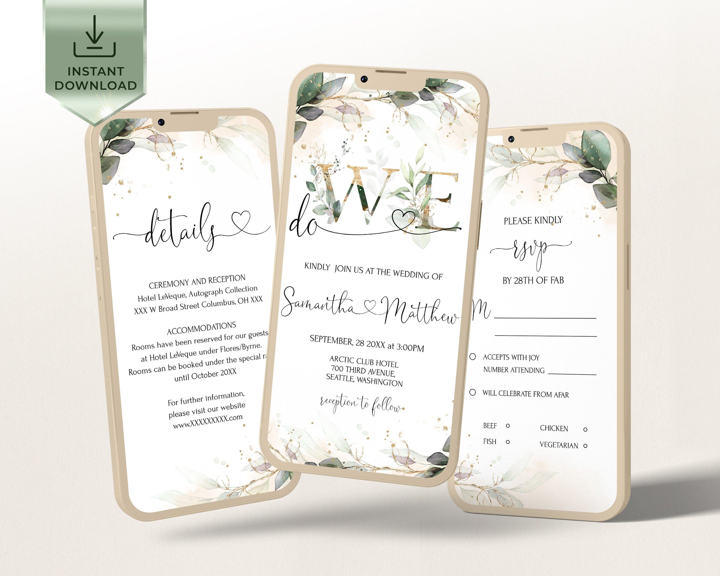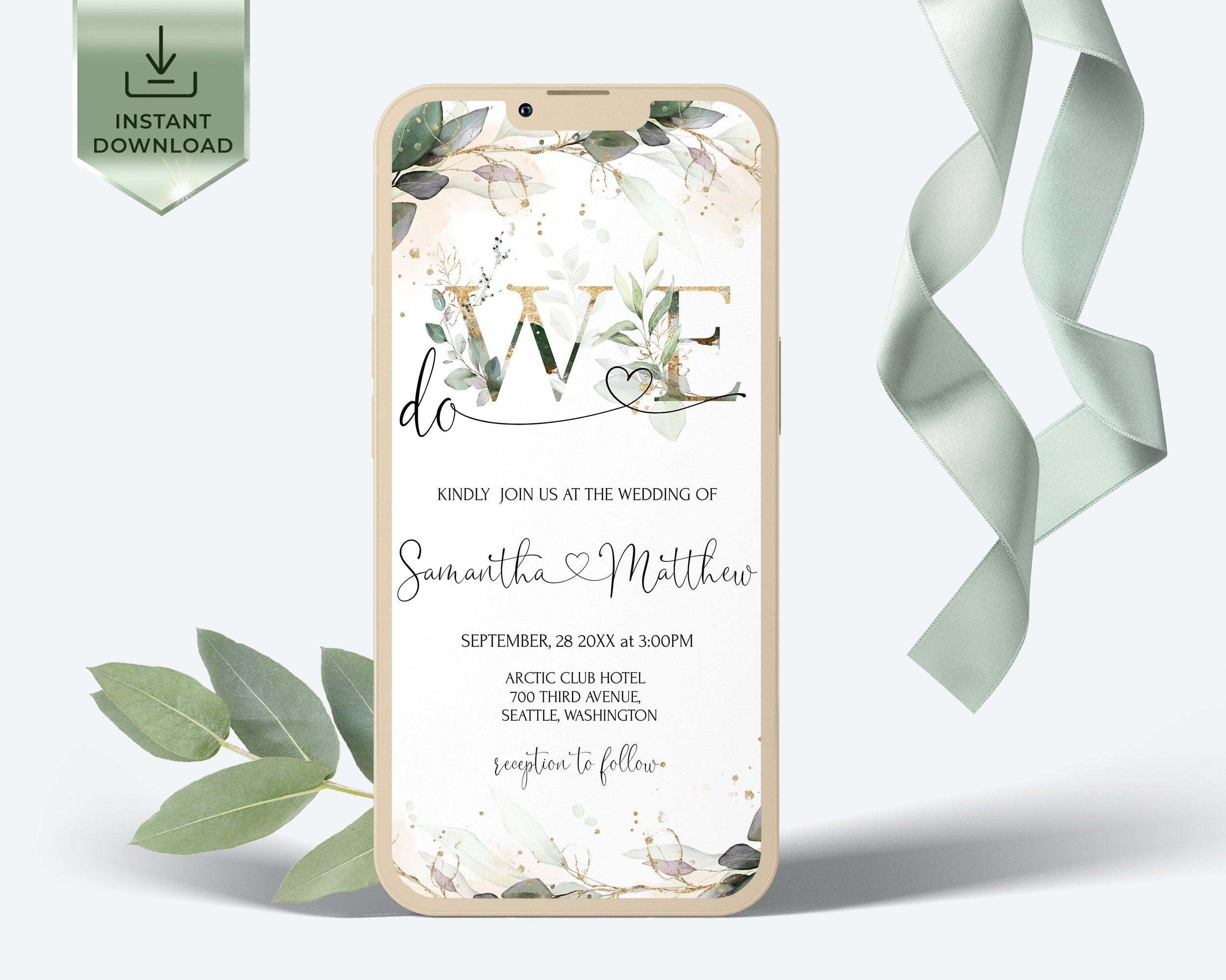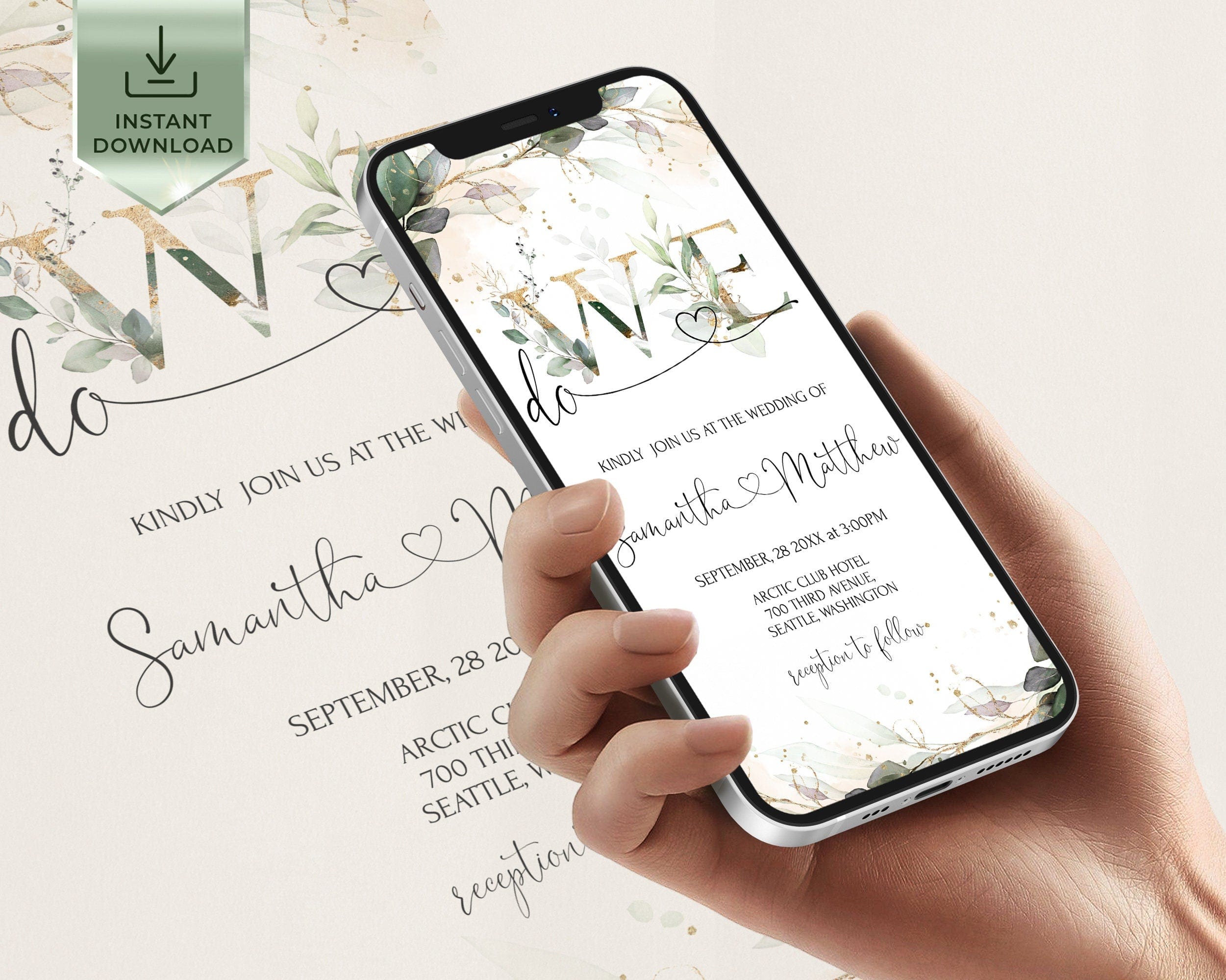 We do Wedding Invitation Suite | Greenery Gold Digital Set