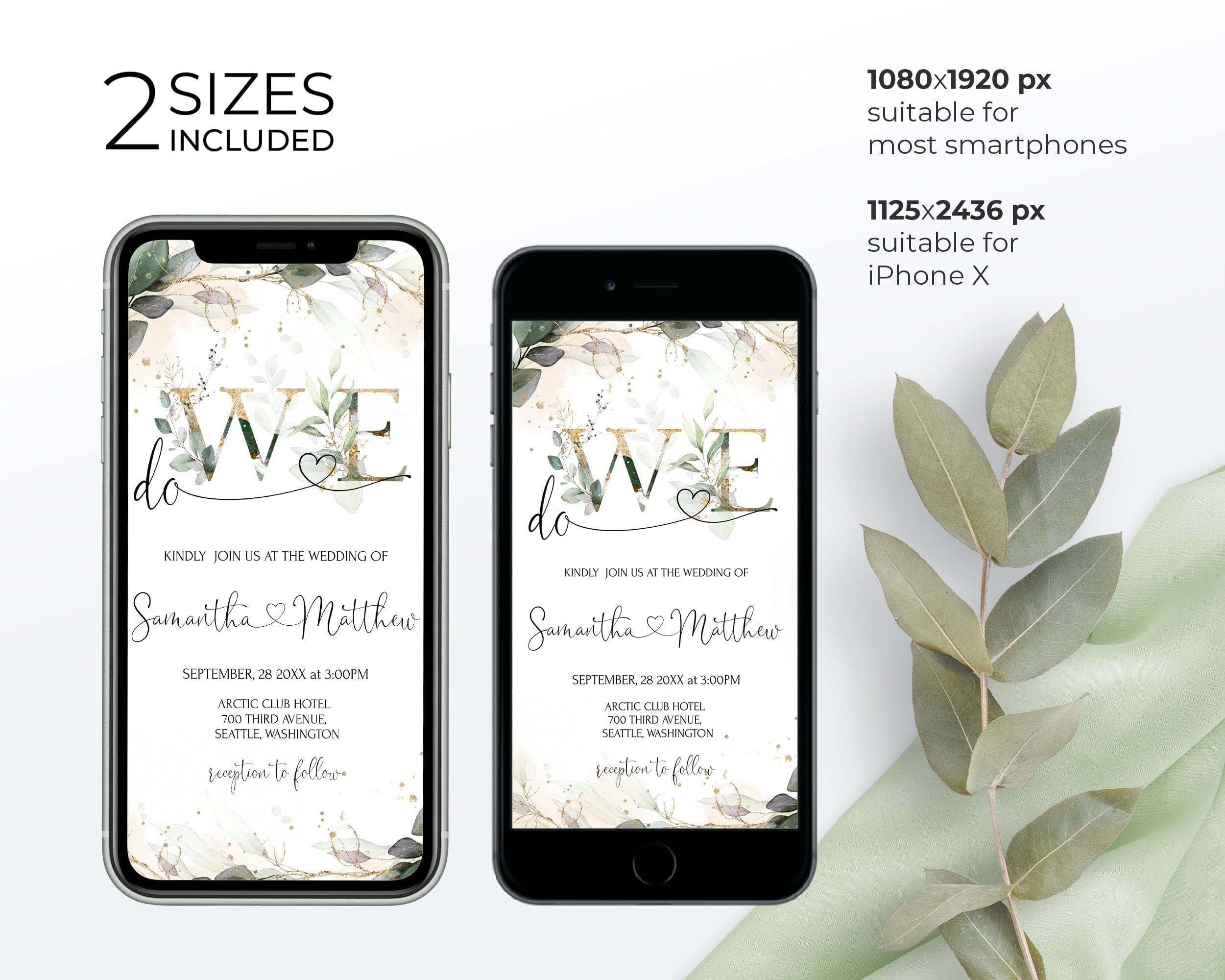 - Electronic Invitation (Evite): 1080 x 1920, 1125 x 2436