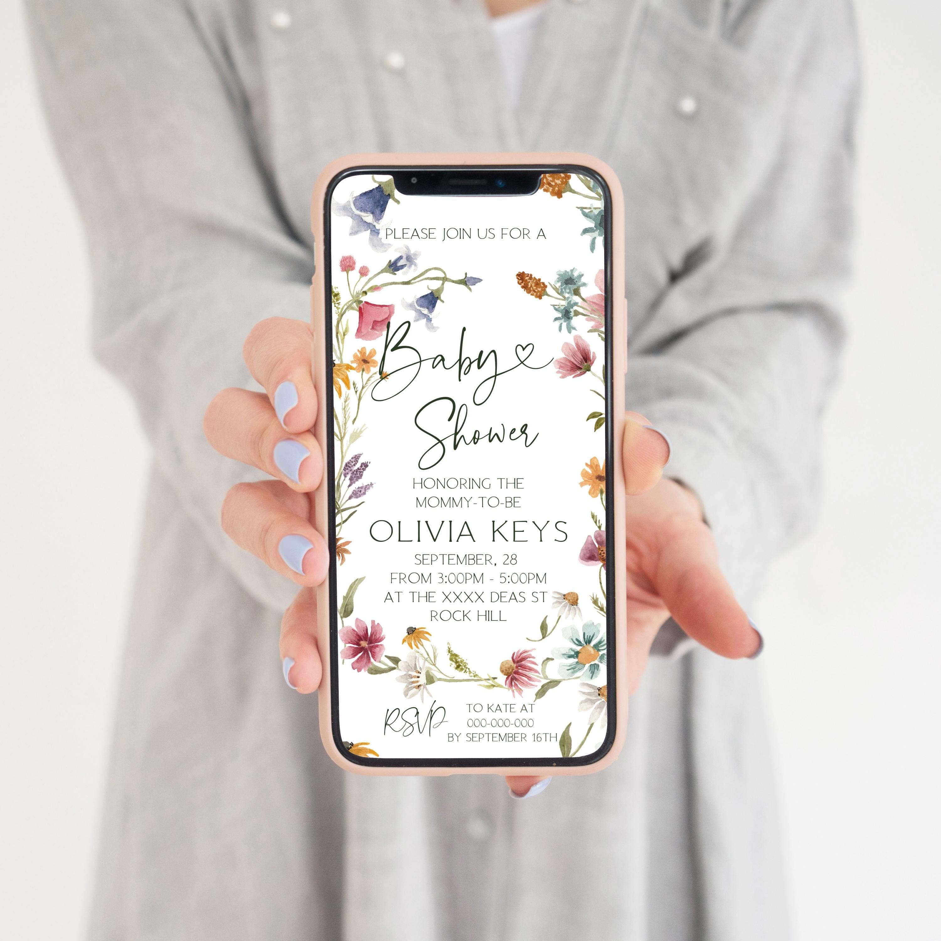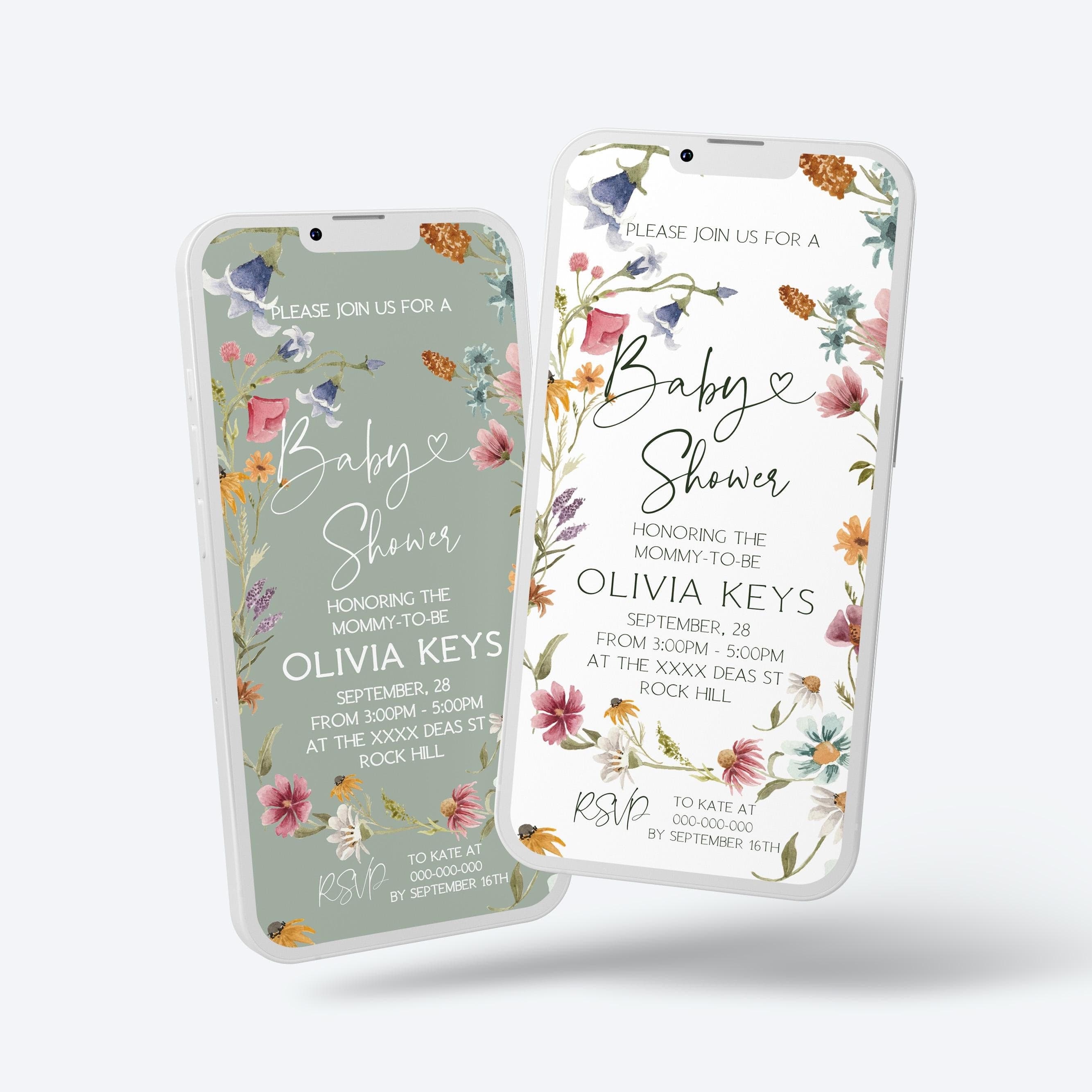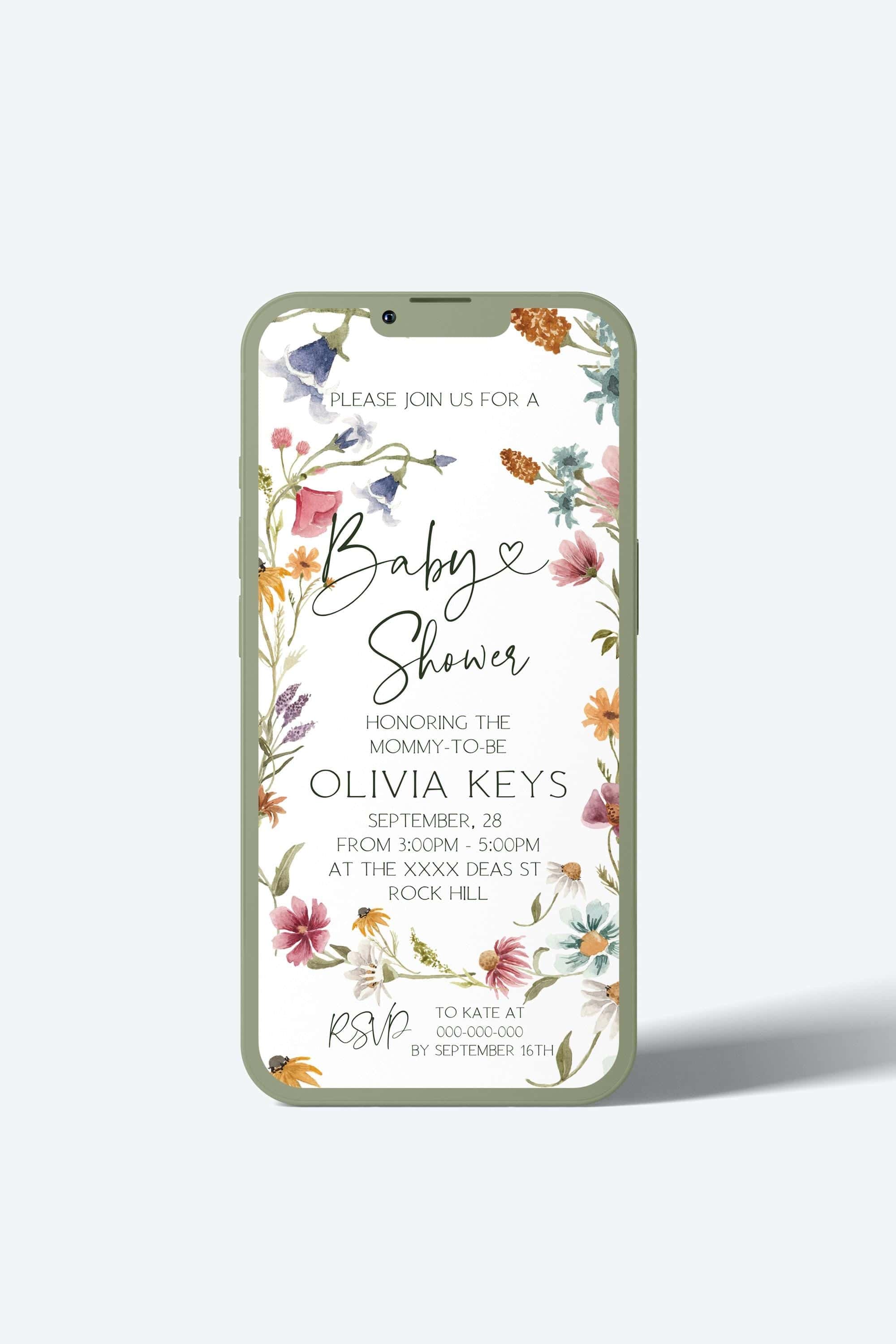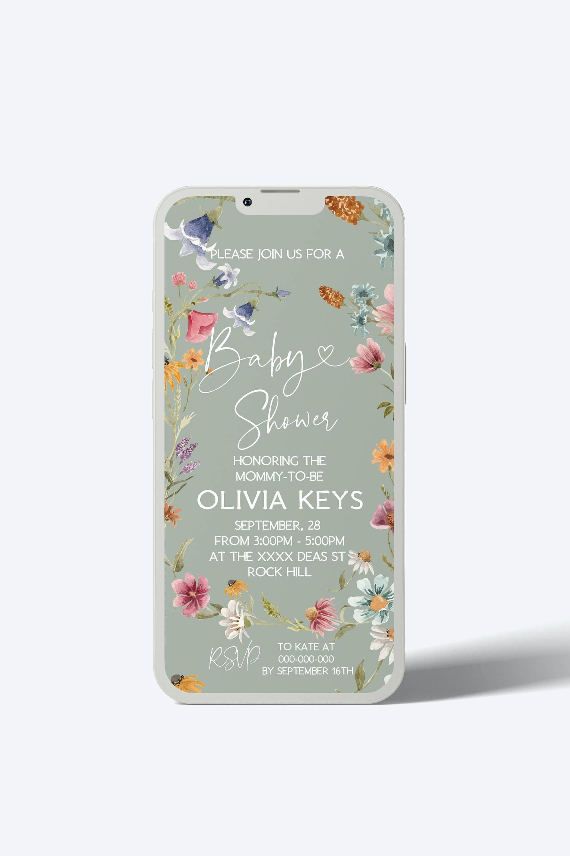Wildflowers Baby Shower Digital Invitation | DIY Smartphone Invites
