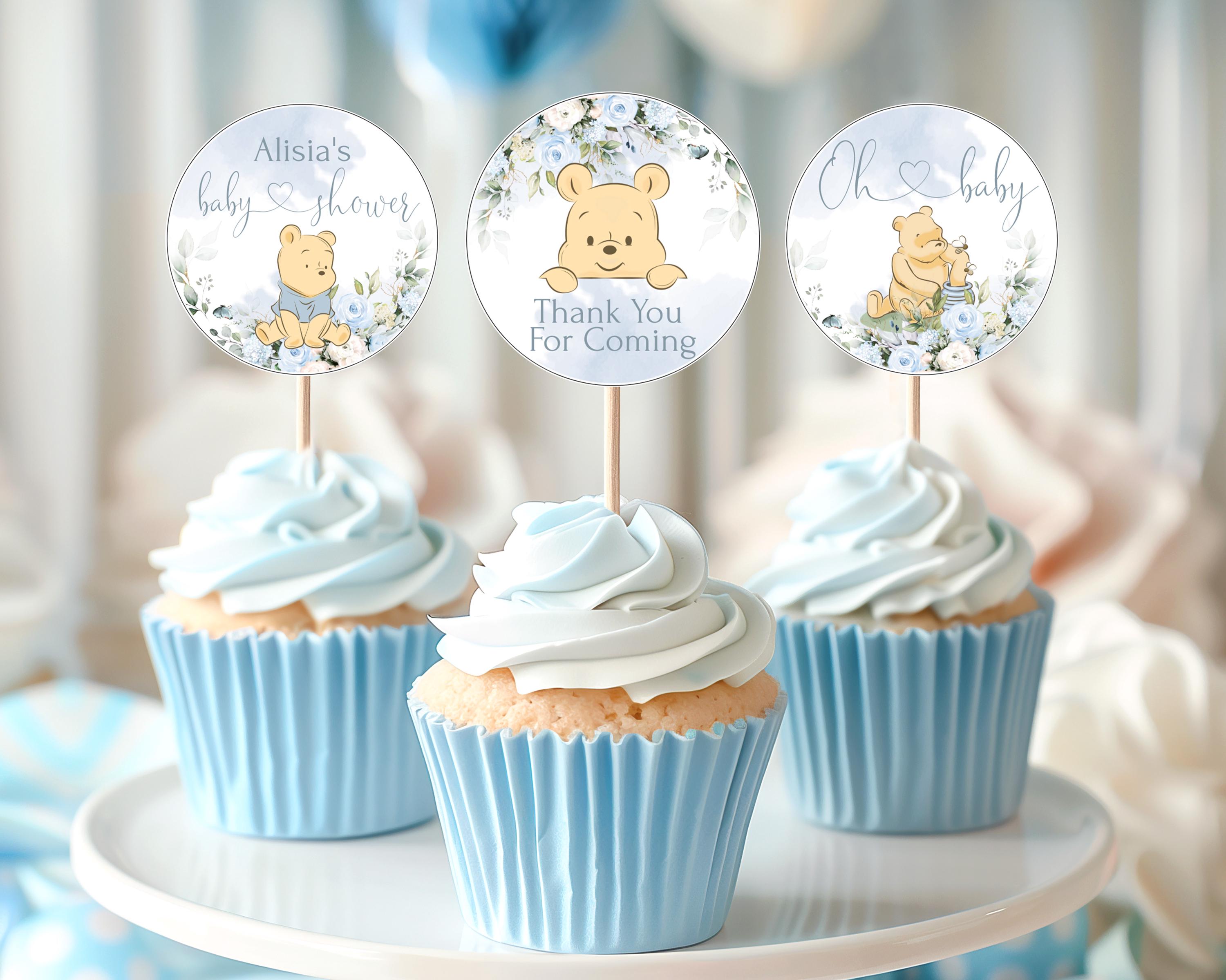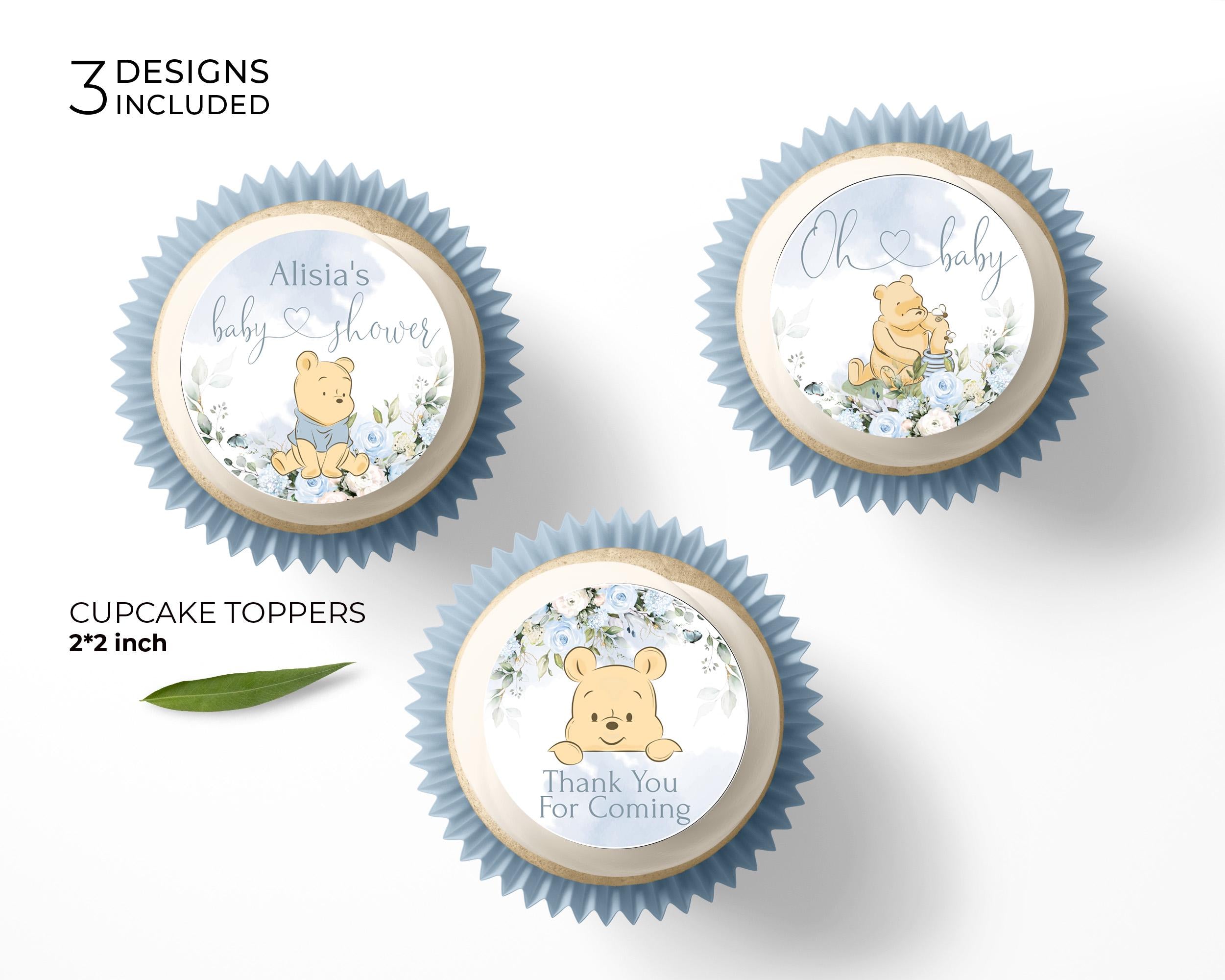 Winnie the Pooh Cupcake Topper, Personalized Baby Shower