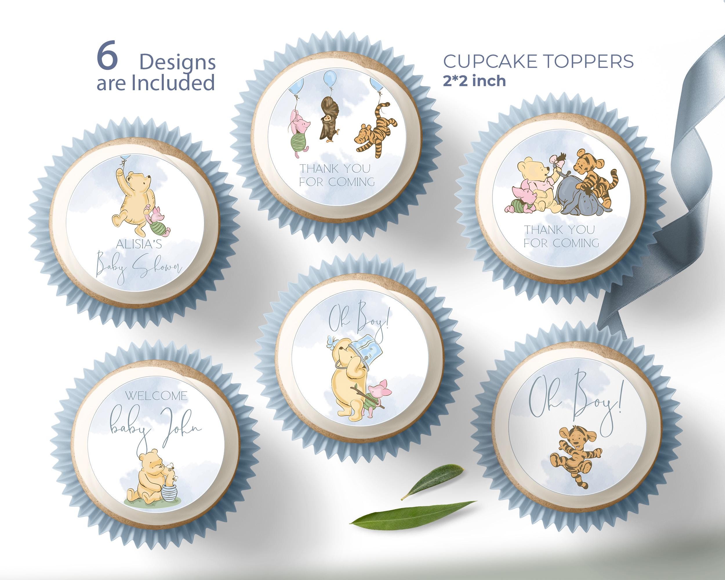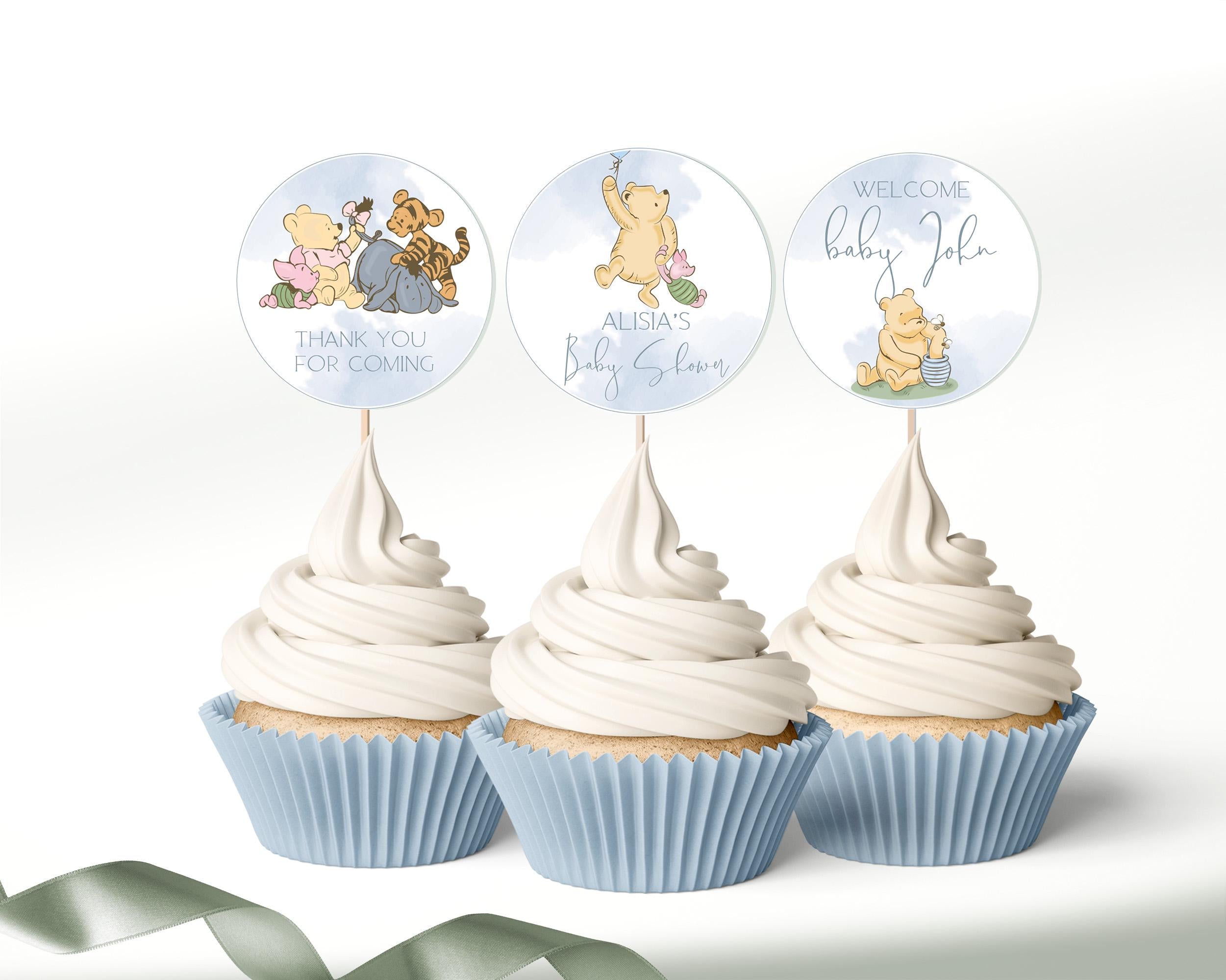 Winnie the Pooh Baby Shower Cupcake Toppers, EDITABLE Templates