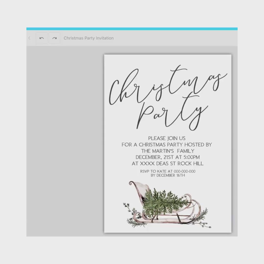 Winter Sleigh Christmas Party Evite, EDITABLE Templates