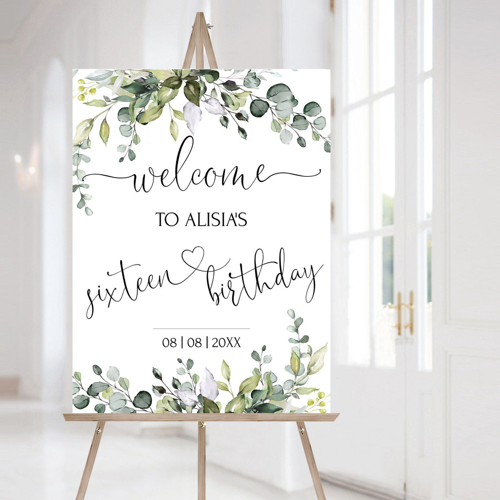 Sweet Sixteen Welcome Sign, EDITABLE Templates