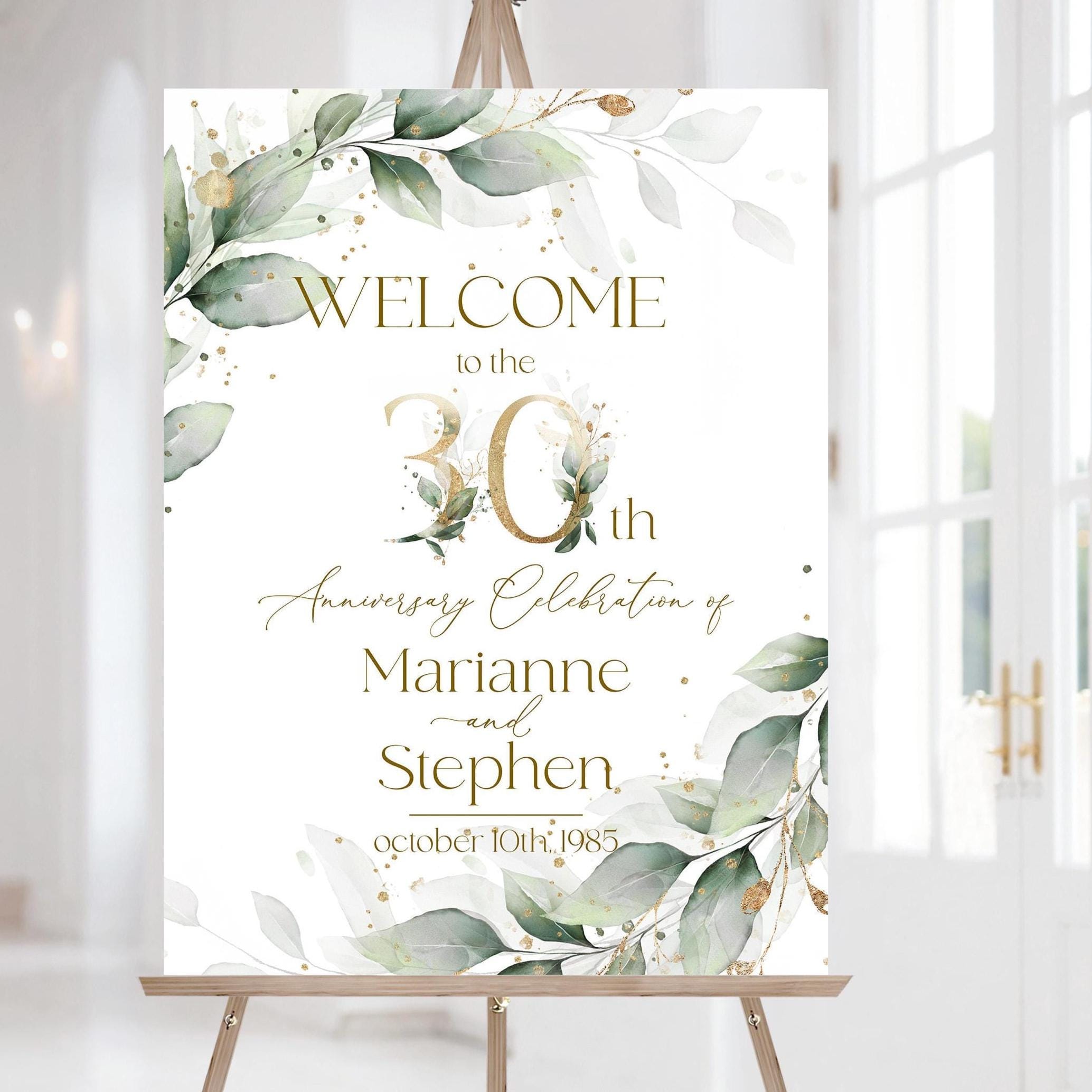 30th Anniversary Welcome Sign Greenery & Gold, EDITABLE Templates