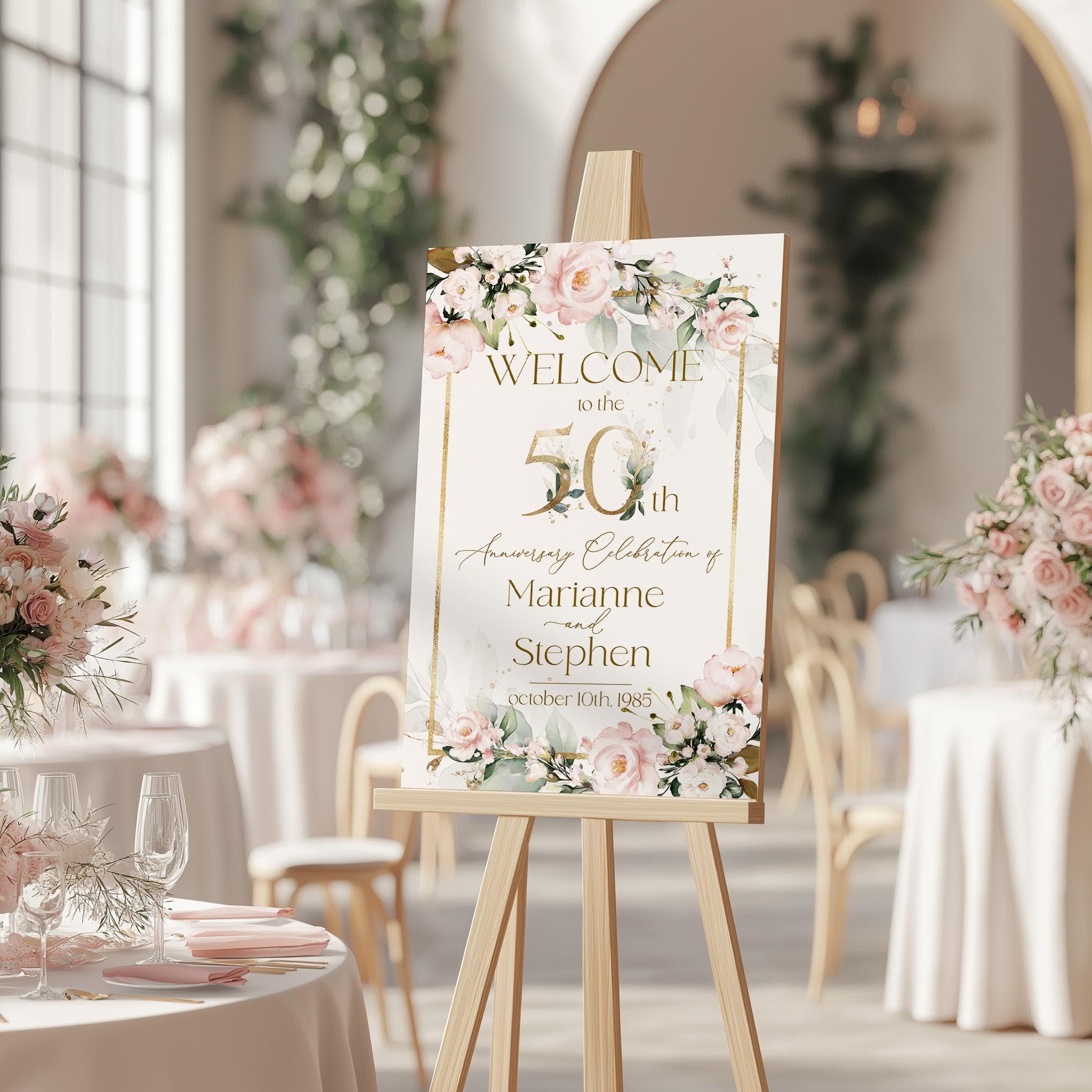 Blush & Gold 50th Anniversary Welcome Sign, EDITABLE Templates
