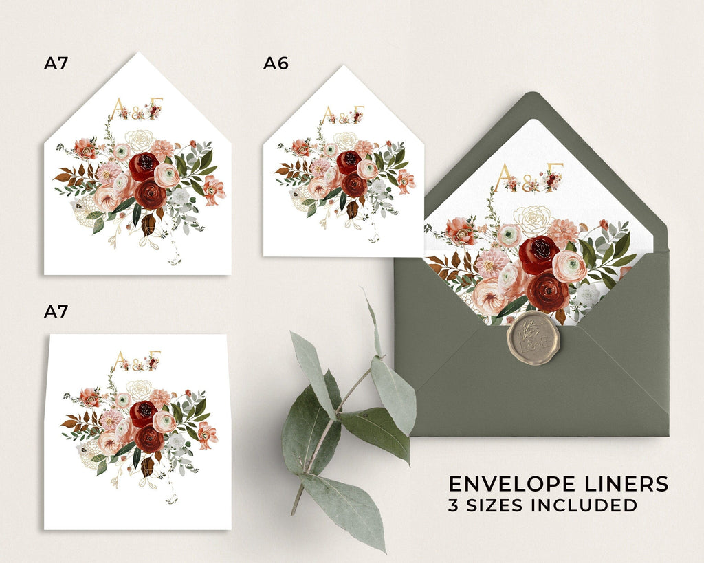 Autumn Flower Envelope Liner | 3 Sizes | Burdundy Flower Themed Inspo Envelope