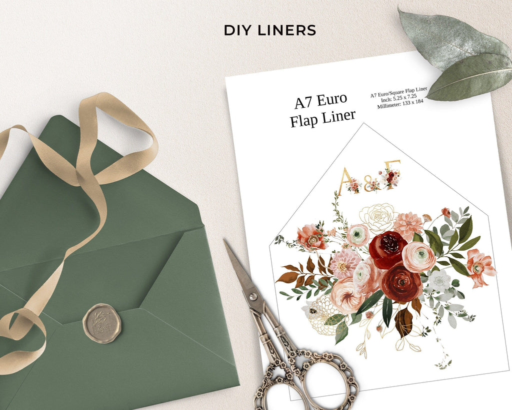 Autumn Flower Envelope Liner, EDITABLE Templates
