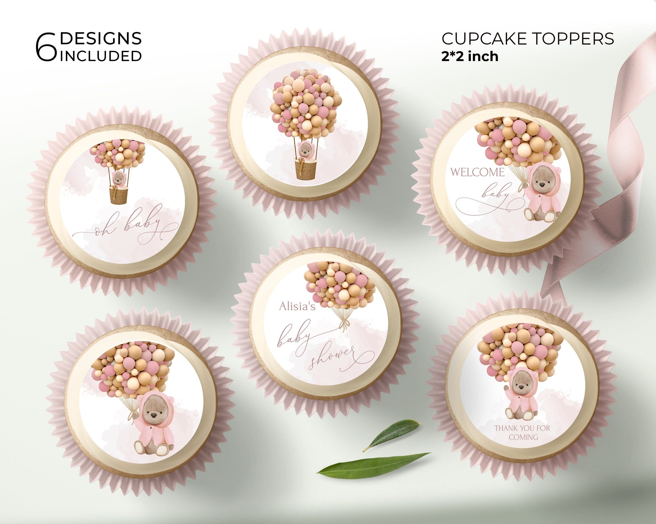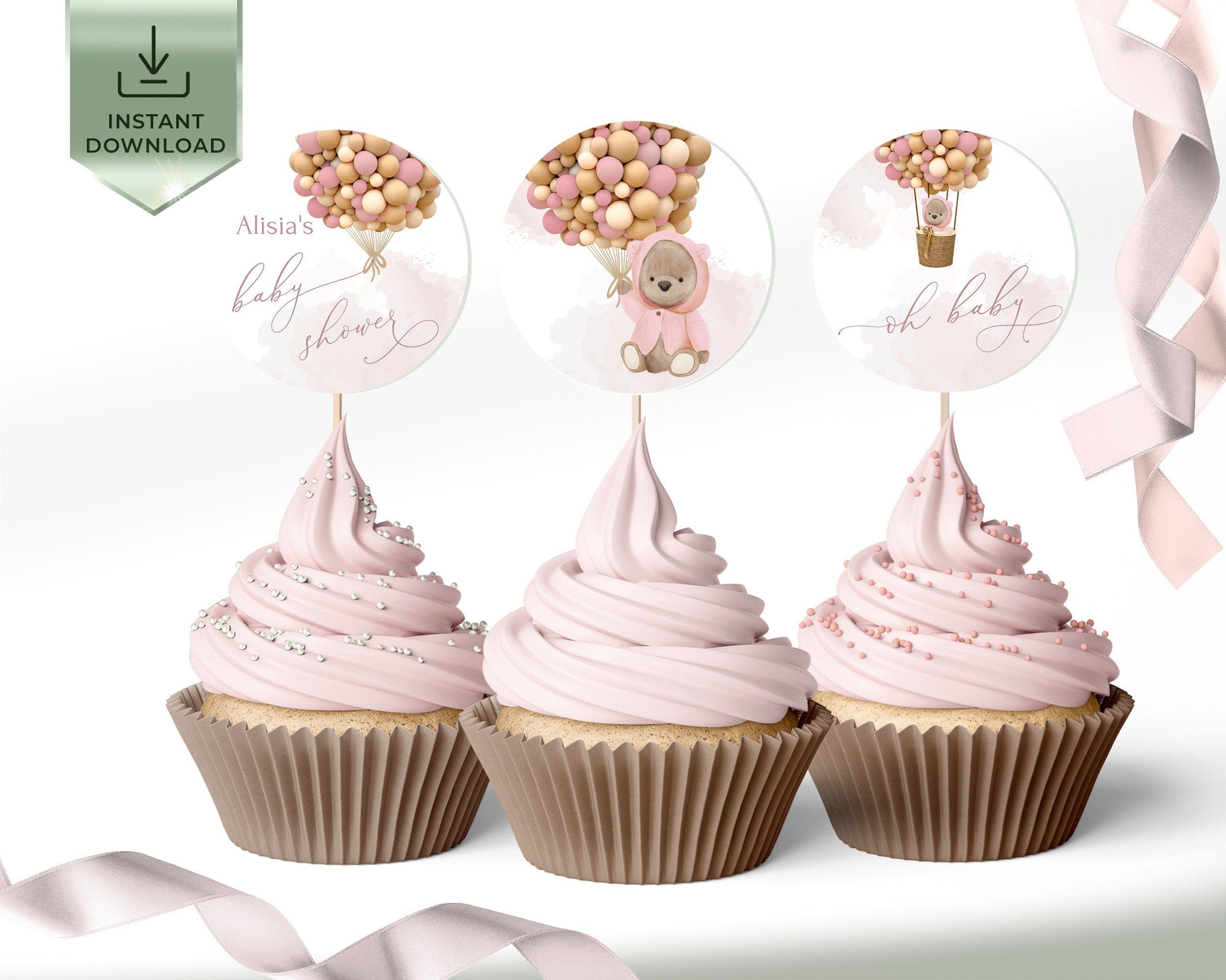 Bear Baby Shower Cupcake Toppers | 6 Designs Included | Pink & Brown Themed Printables