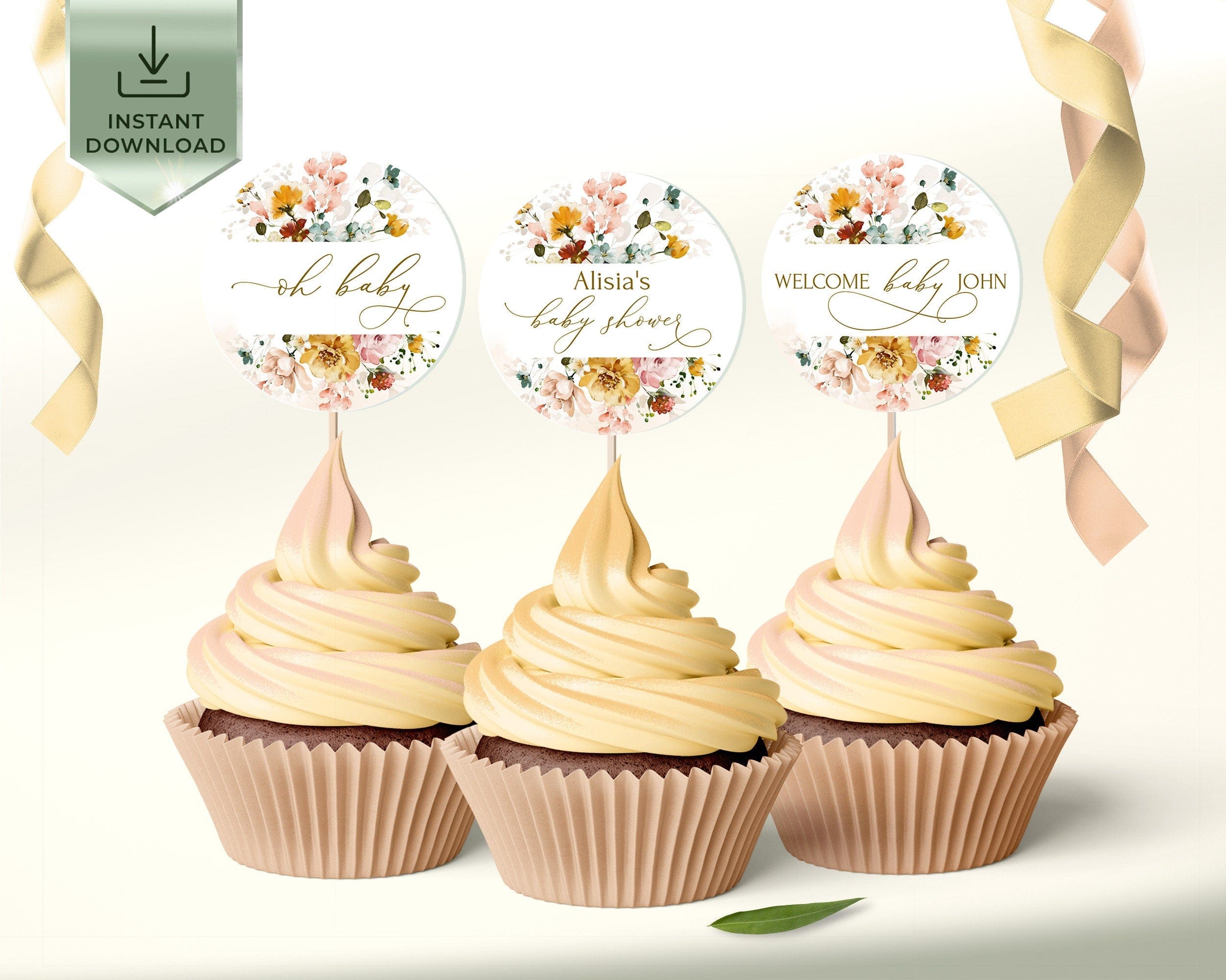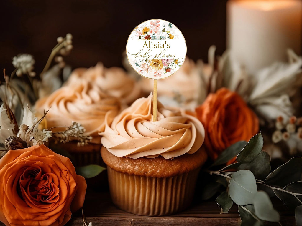 Fall Garden Baby Shower Cupcake Toppers, EDITABLE Templates