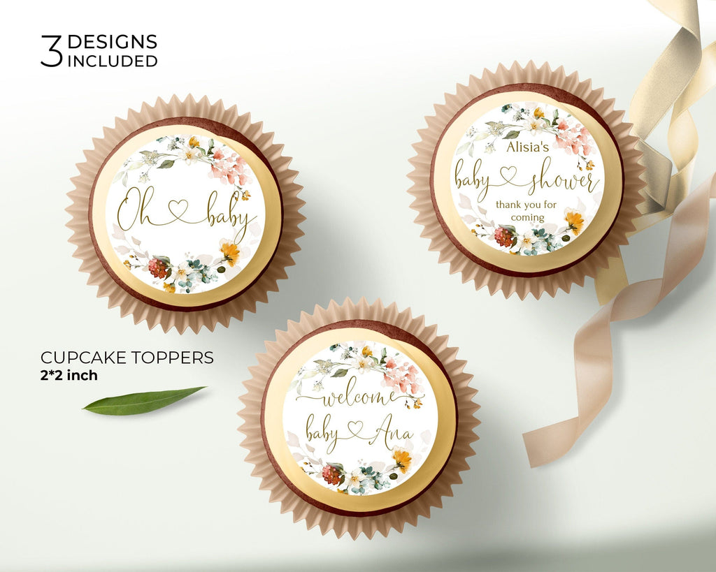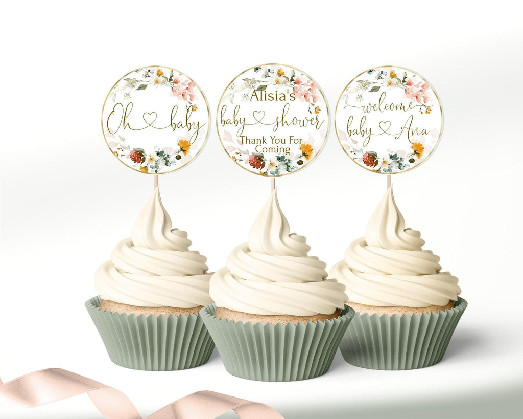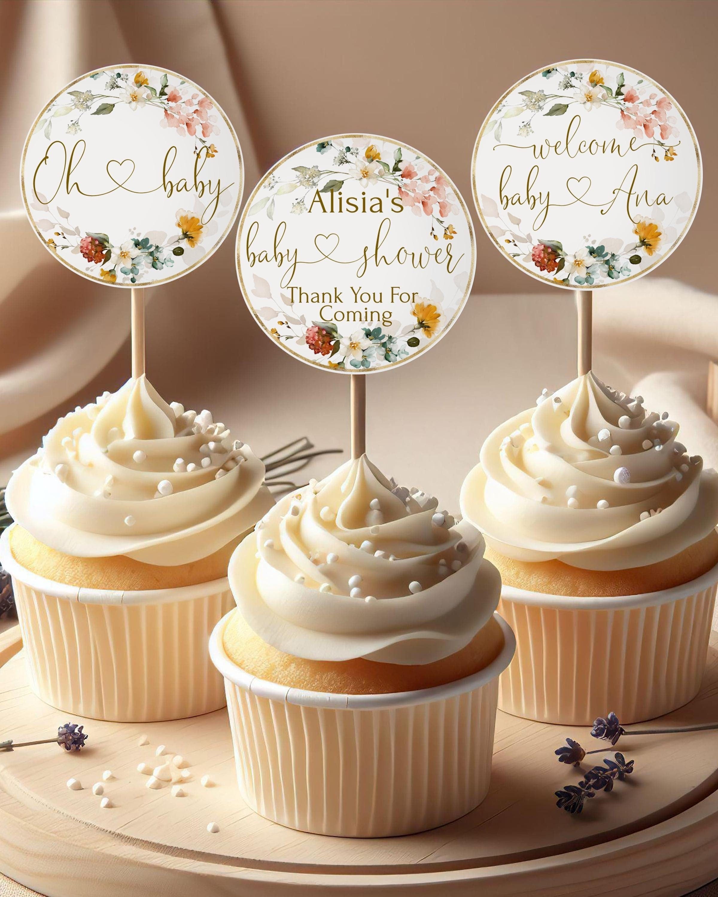 Floral Baby Shower Cupcake Toppers, EDITABLE Templates
