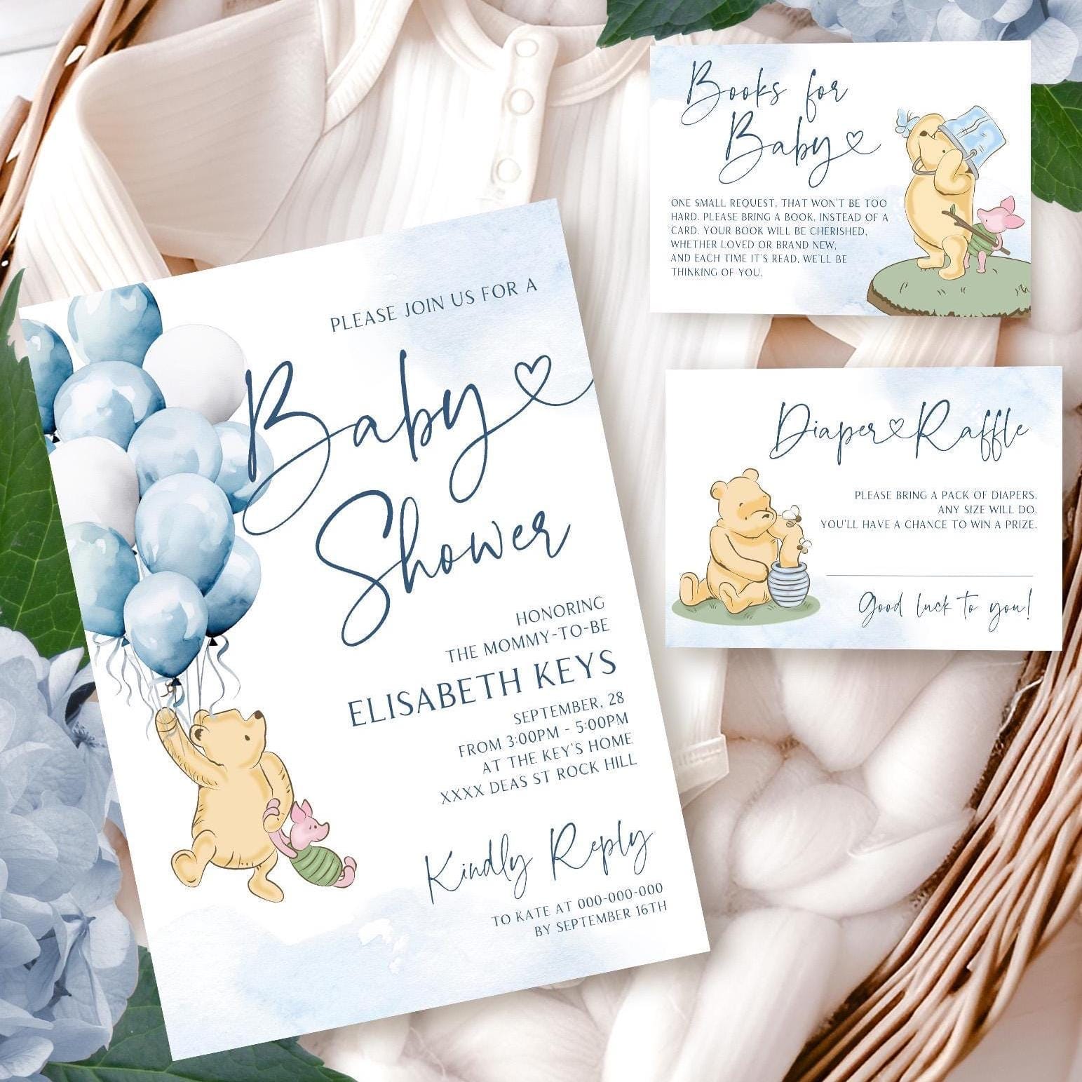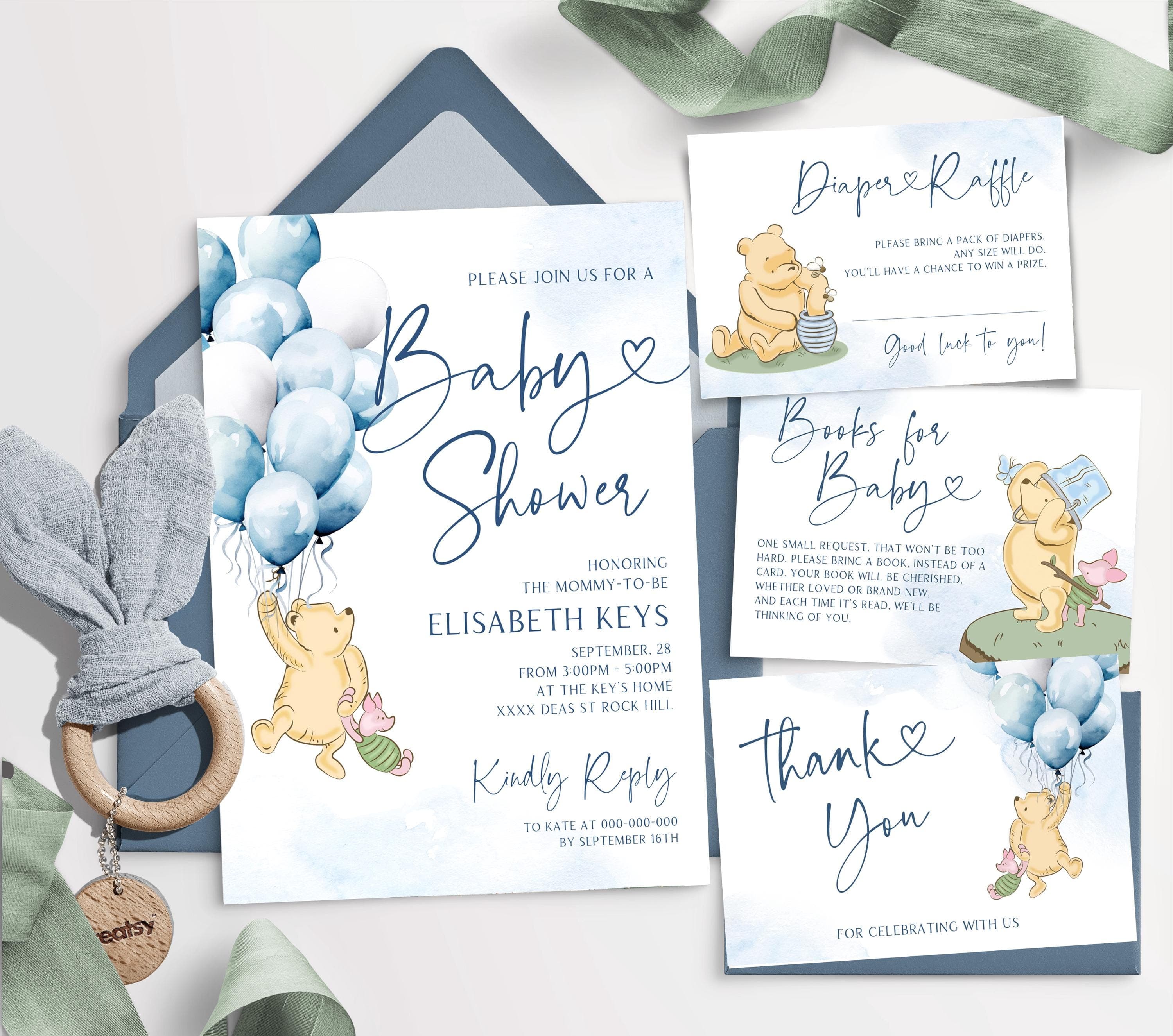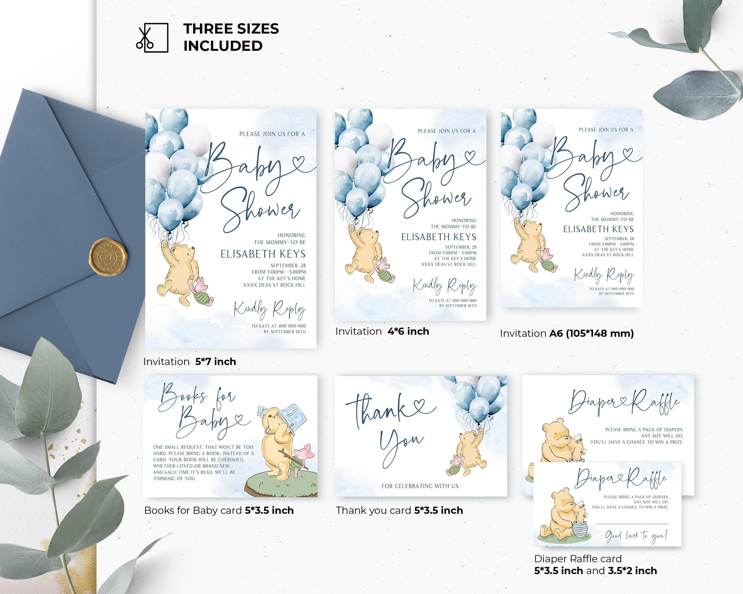 Baby Shower Suite Blue Balloons & Bear, EDITABLE Templates