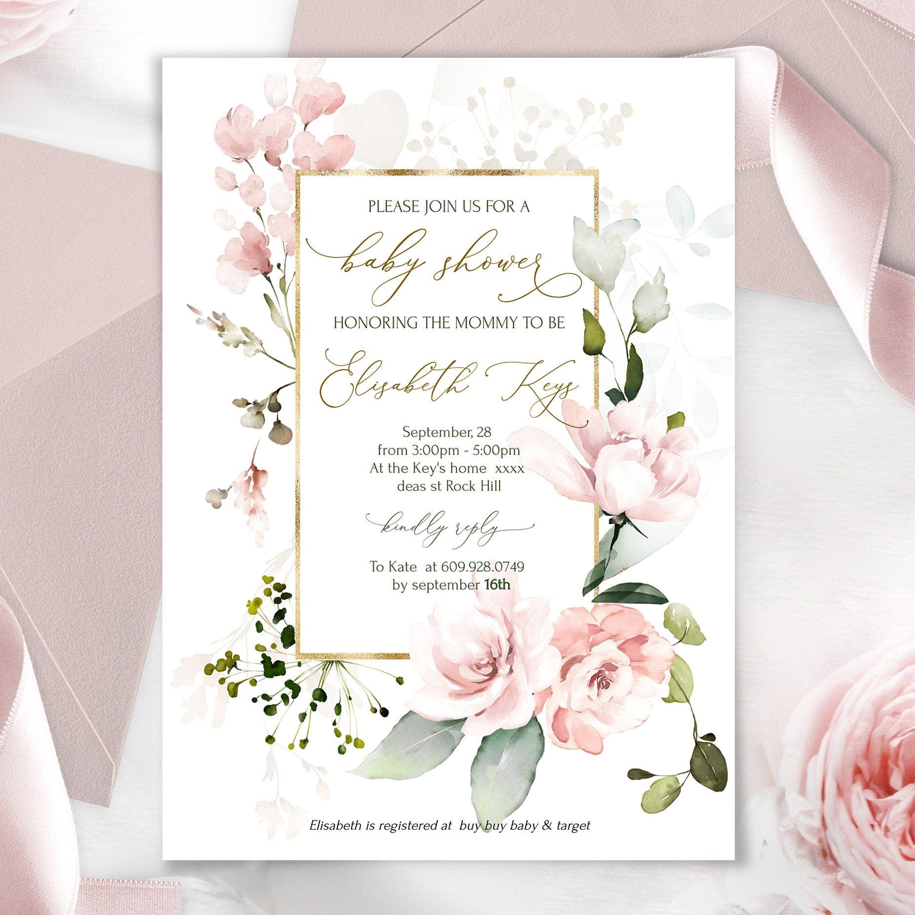 Floral Girls Baby Shower Invite, EDITABLE Templates