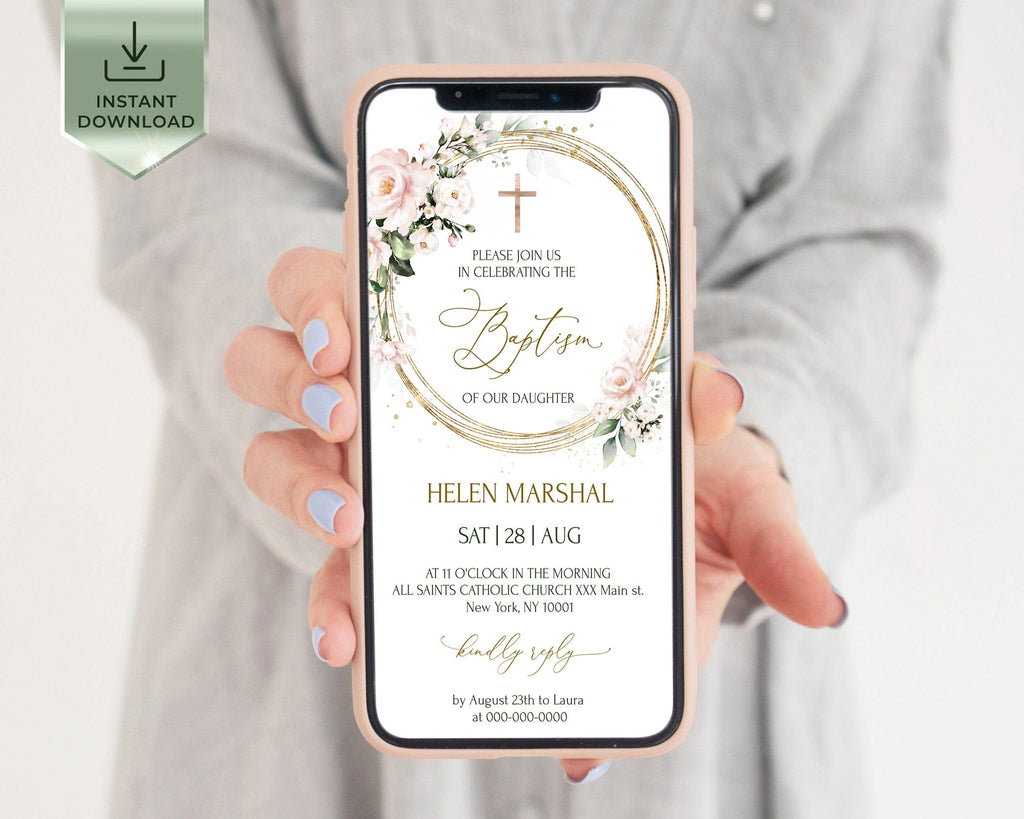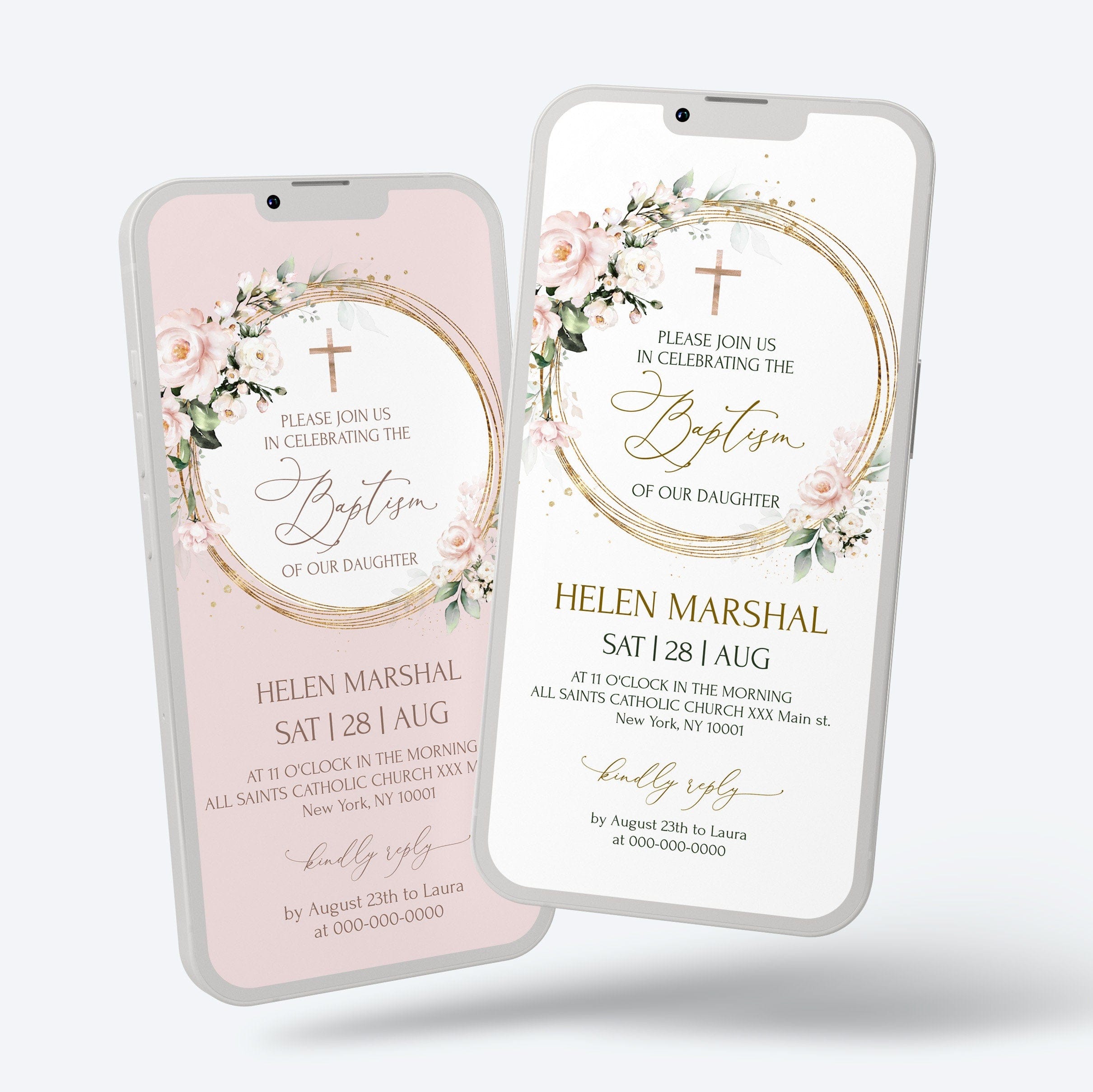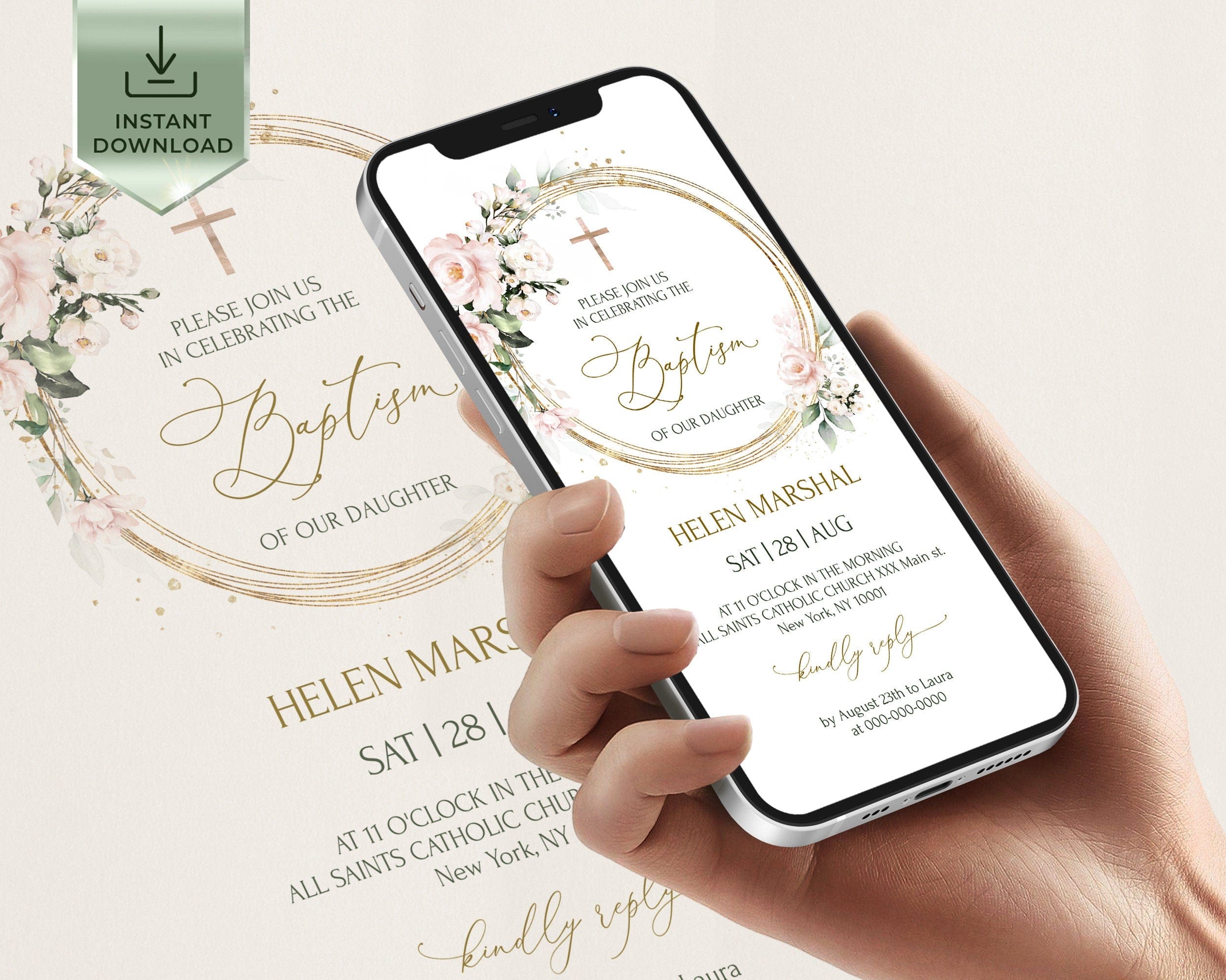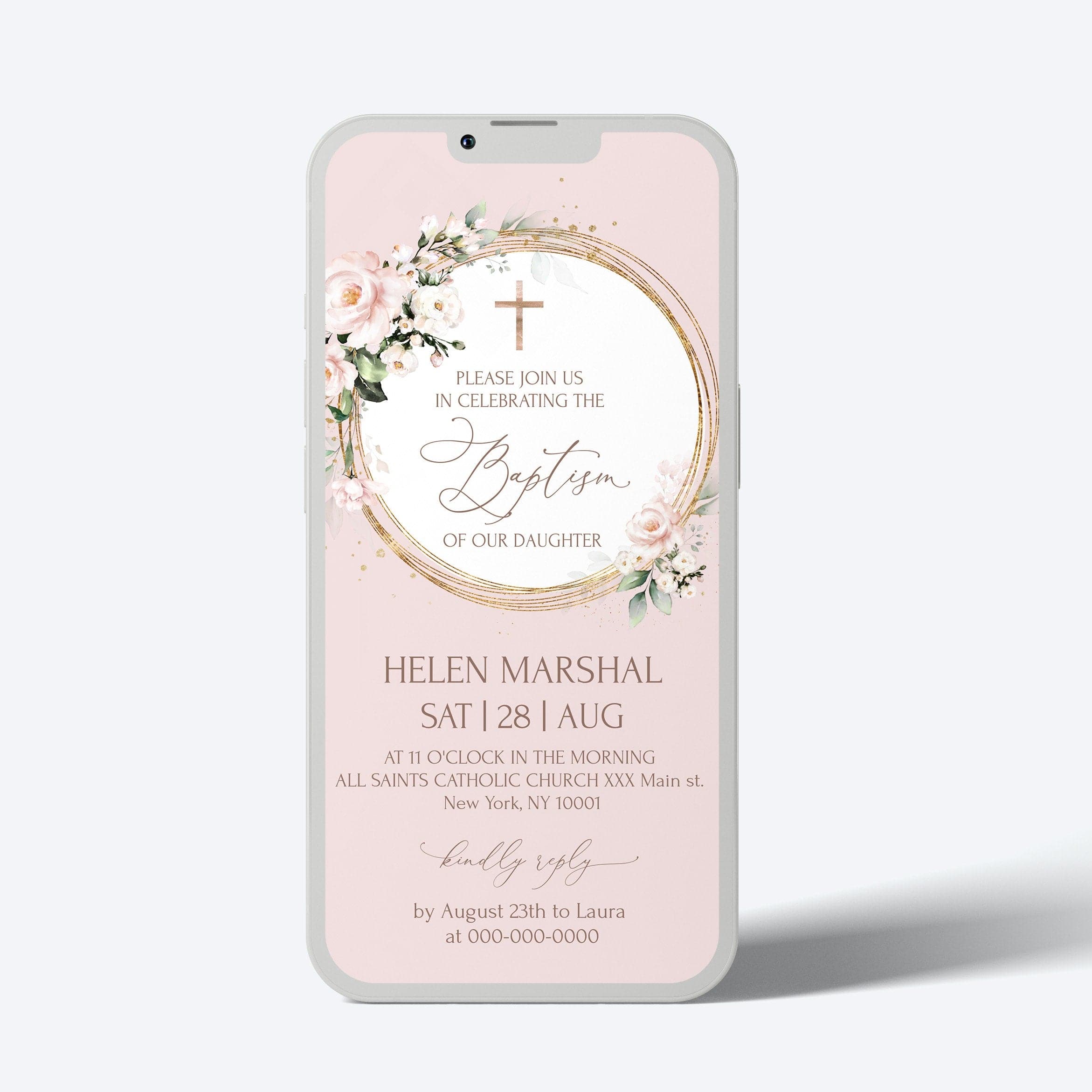 Editable Soft Pink Baptism Invitation | DIY Christening | Personalized Evites