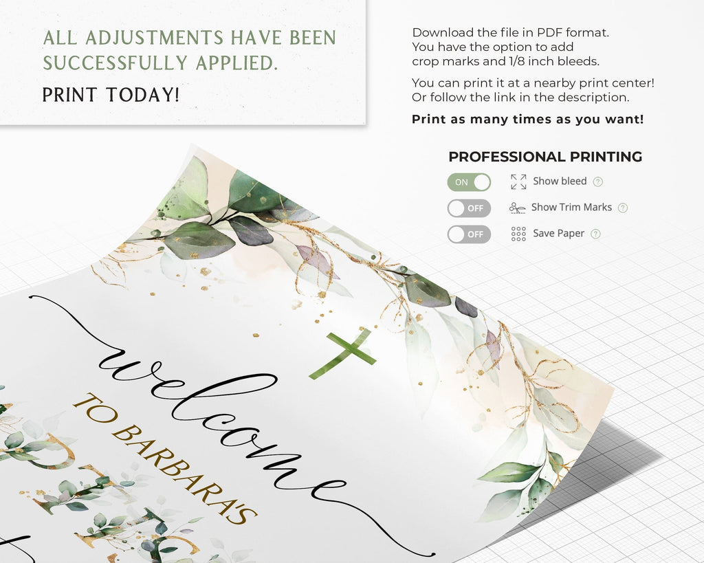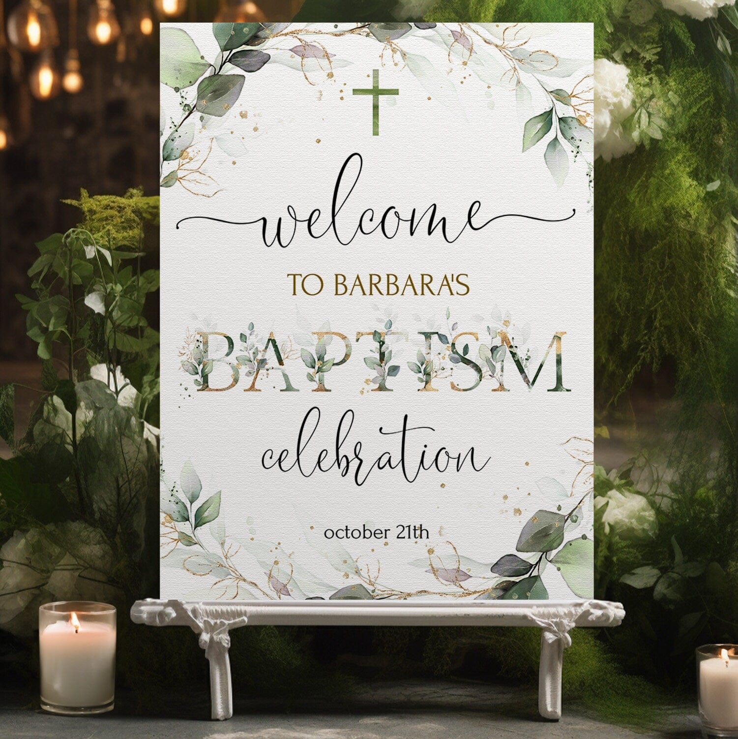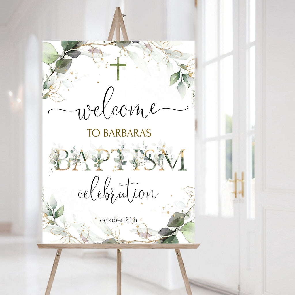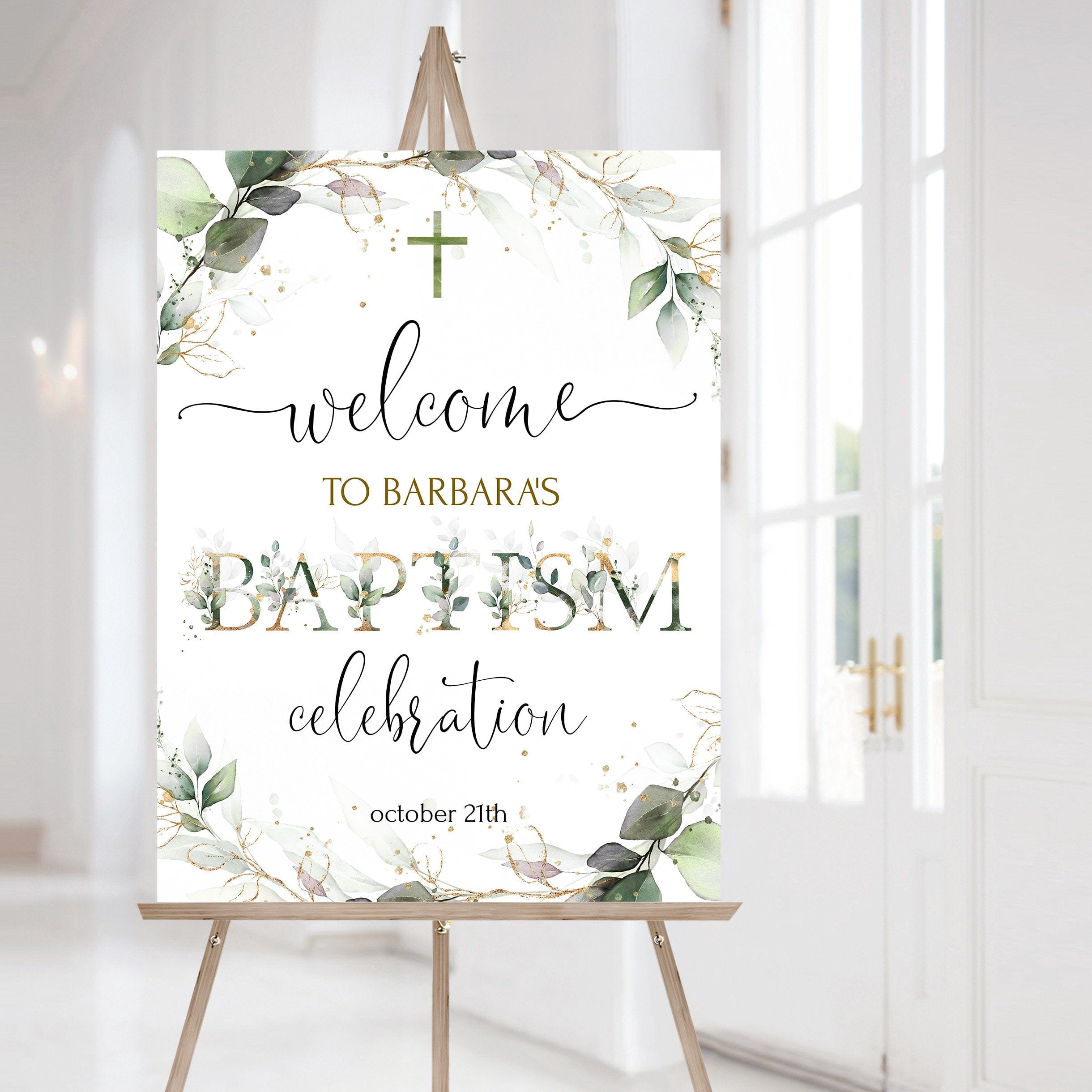 Greenery Baptism Welcome Sign, EDITABLE Templates