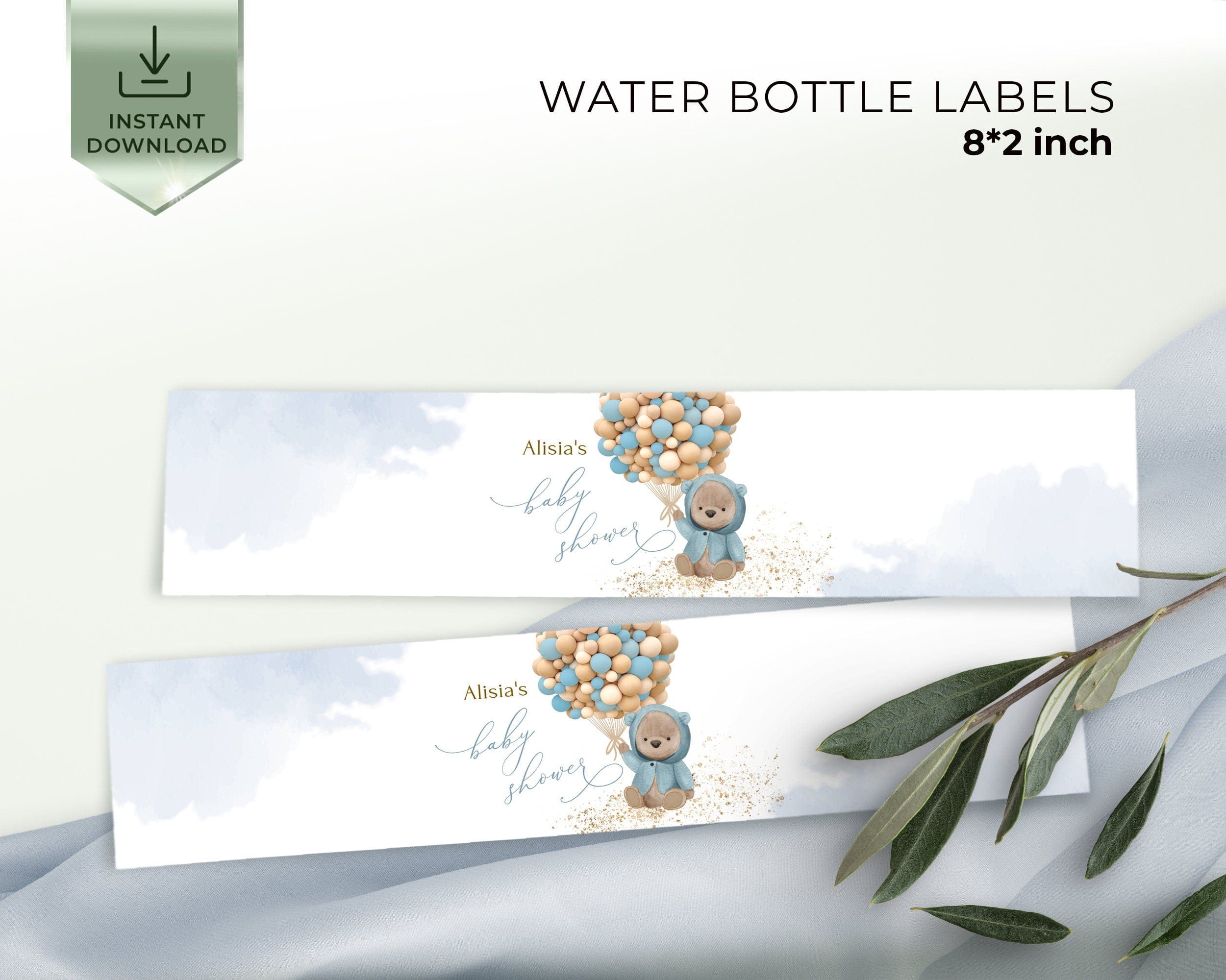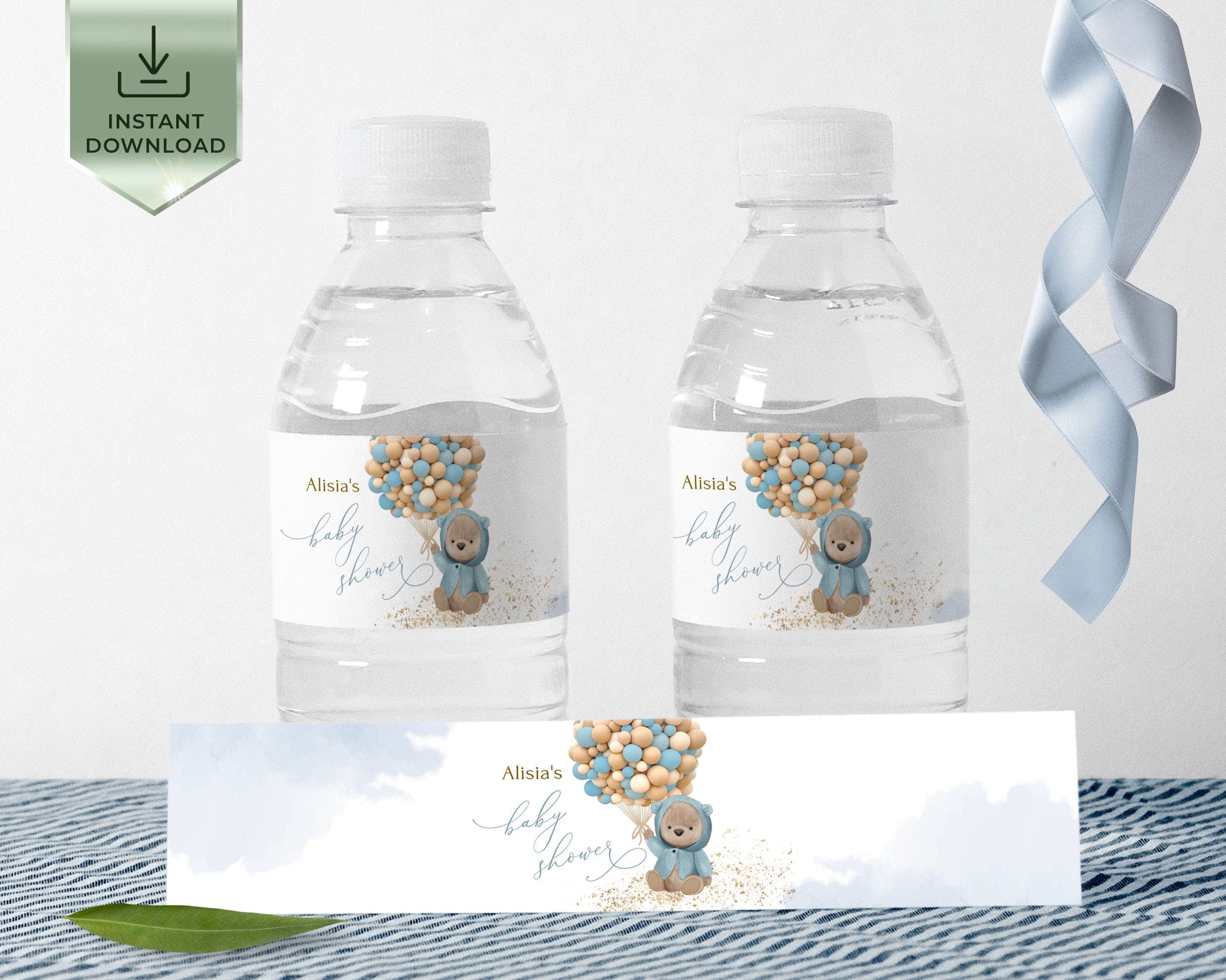 Bear Themed Baby Shower Bottle Label, Personalized Printable Template