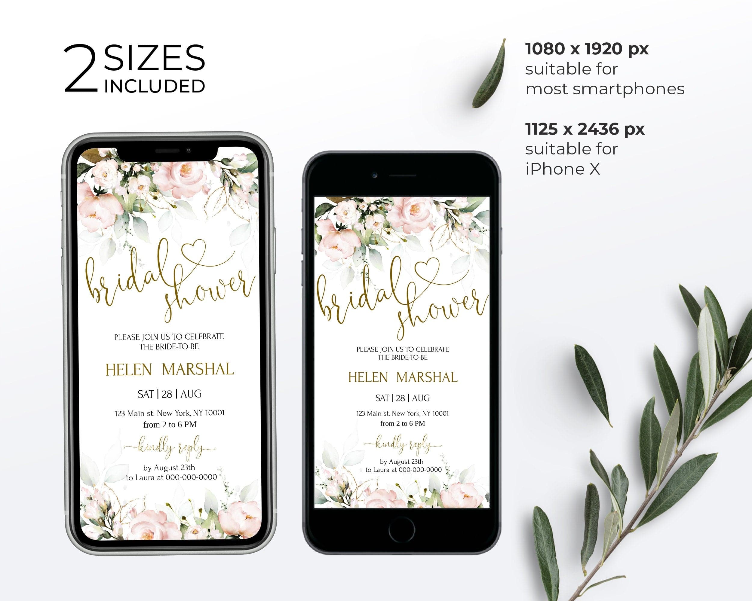 - Bridal Shower Evite: 1080 x 1920, 1125 x 2436