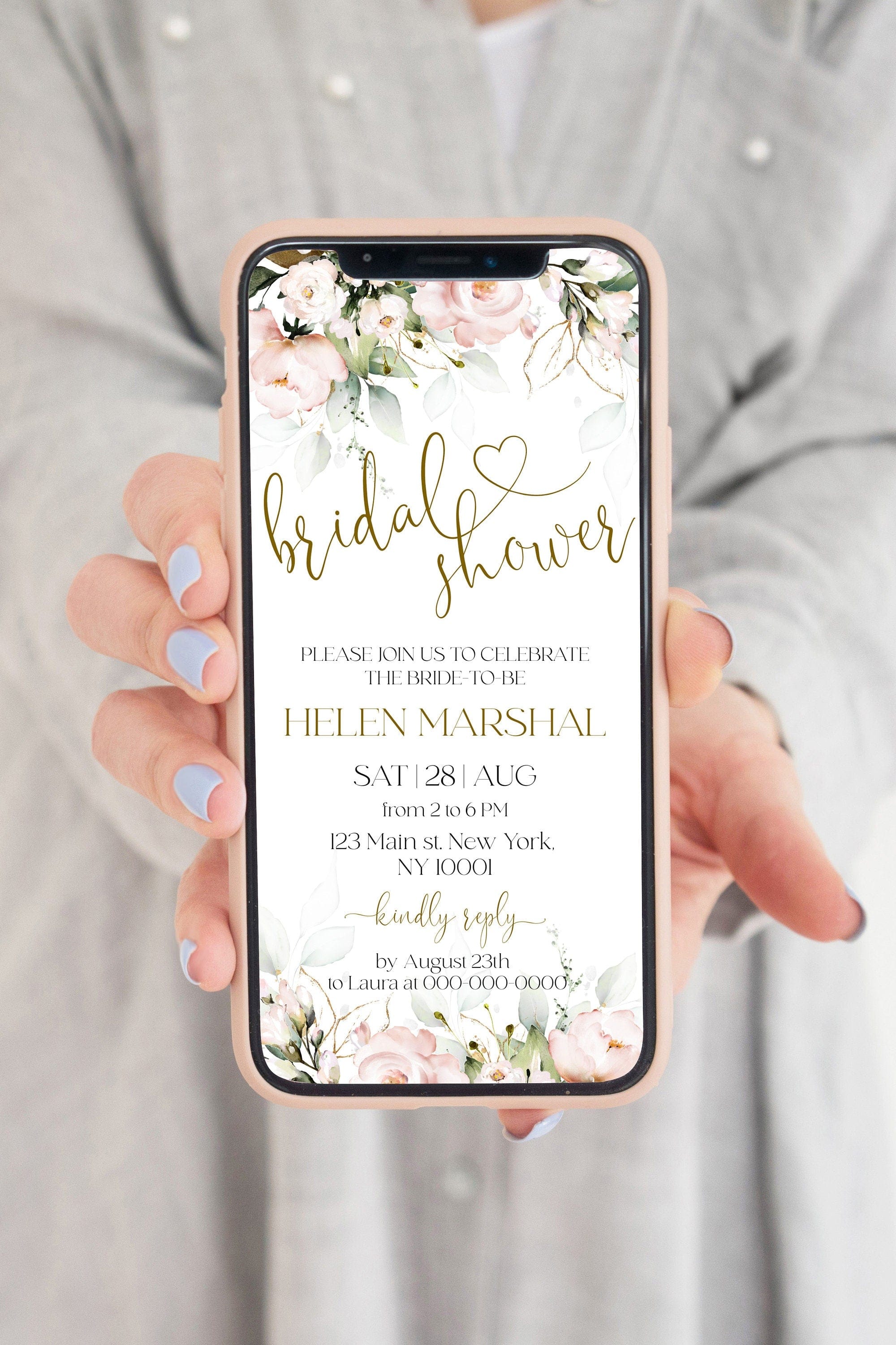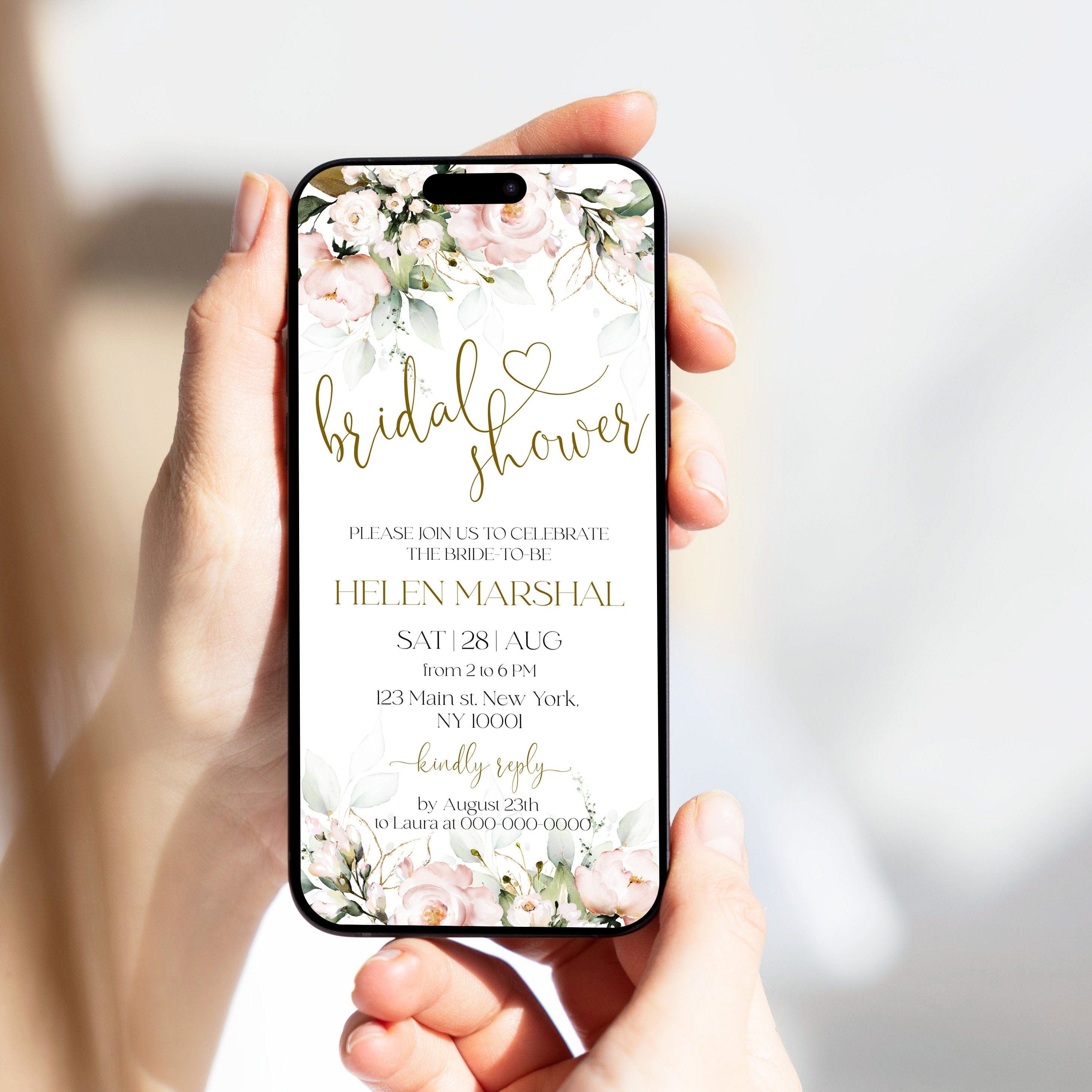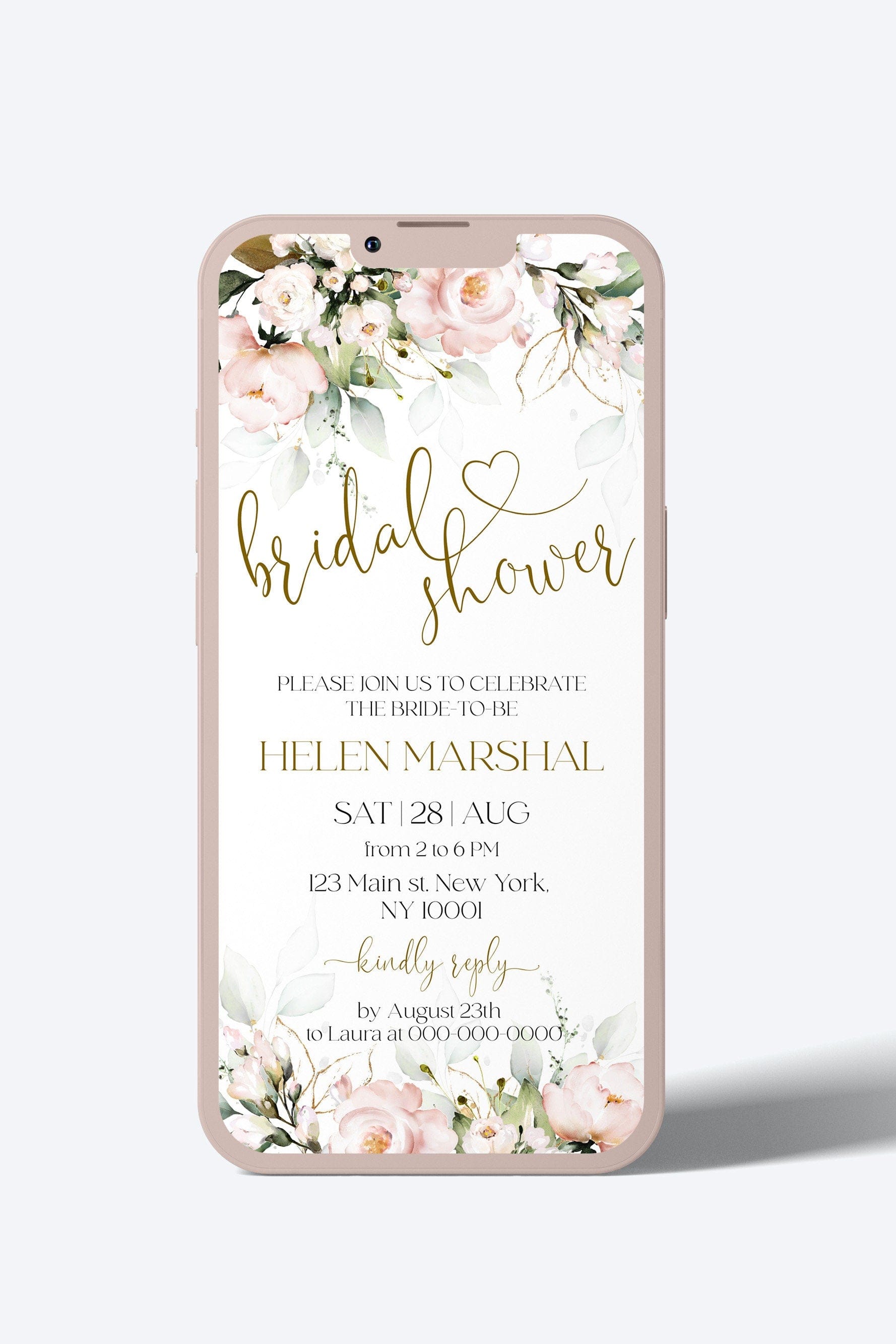 Soft Pink Bridal Shower Invite for iPhone, EDITABLE Templates