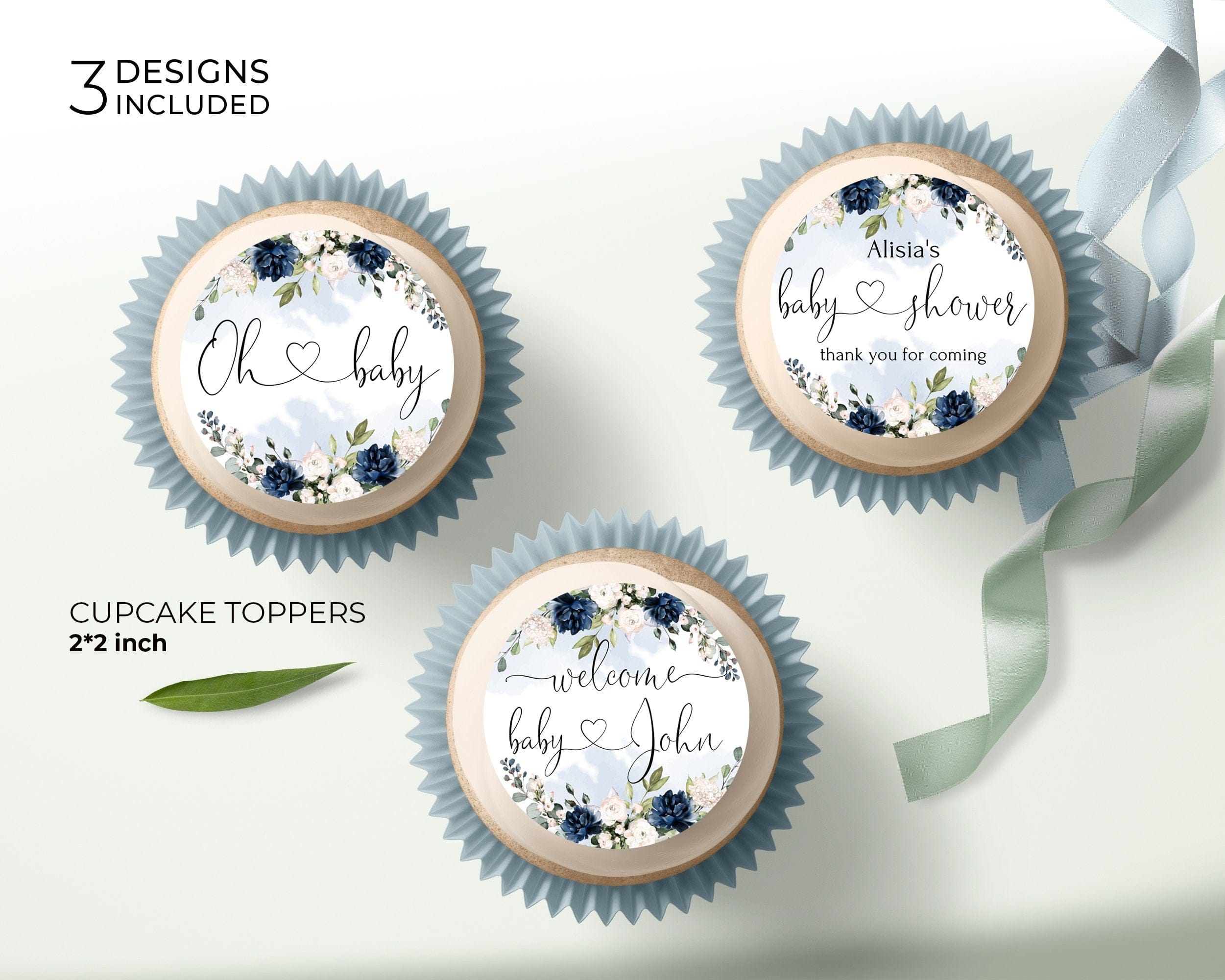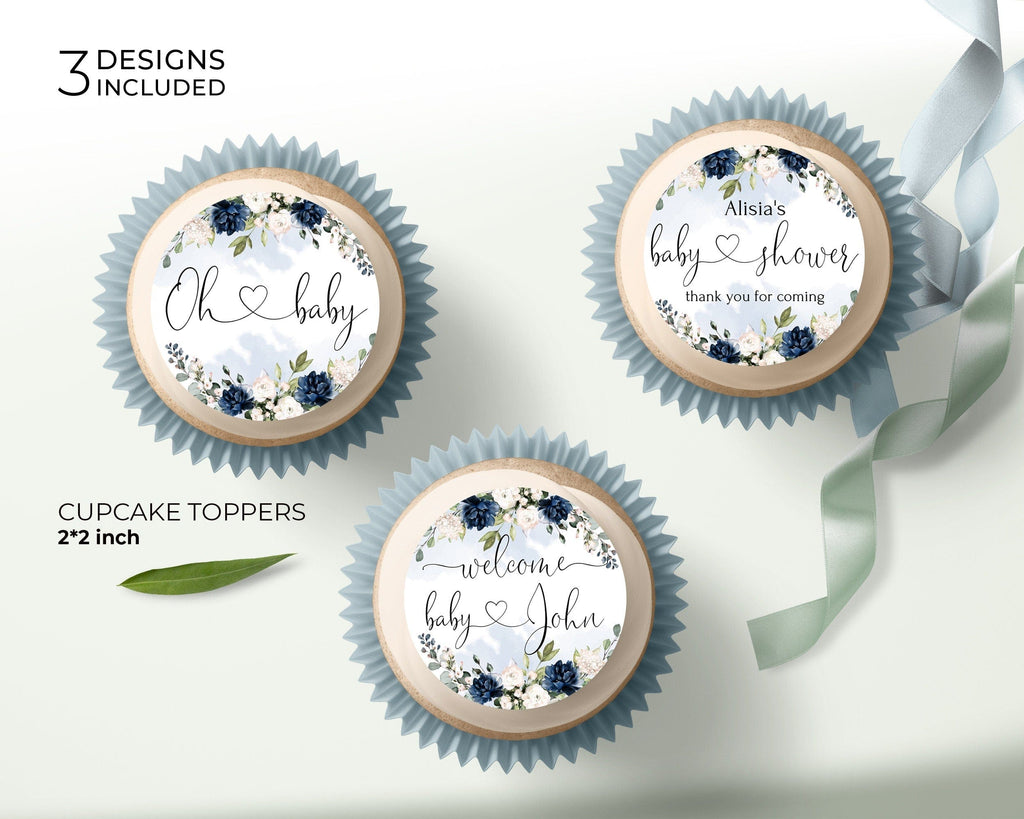 Blue Baby Shower Cupcake Toppers, EDITABLE Templates