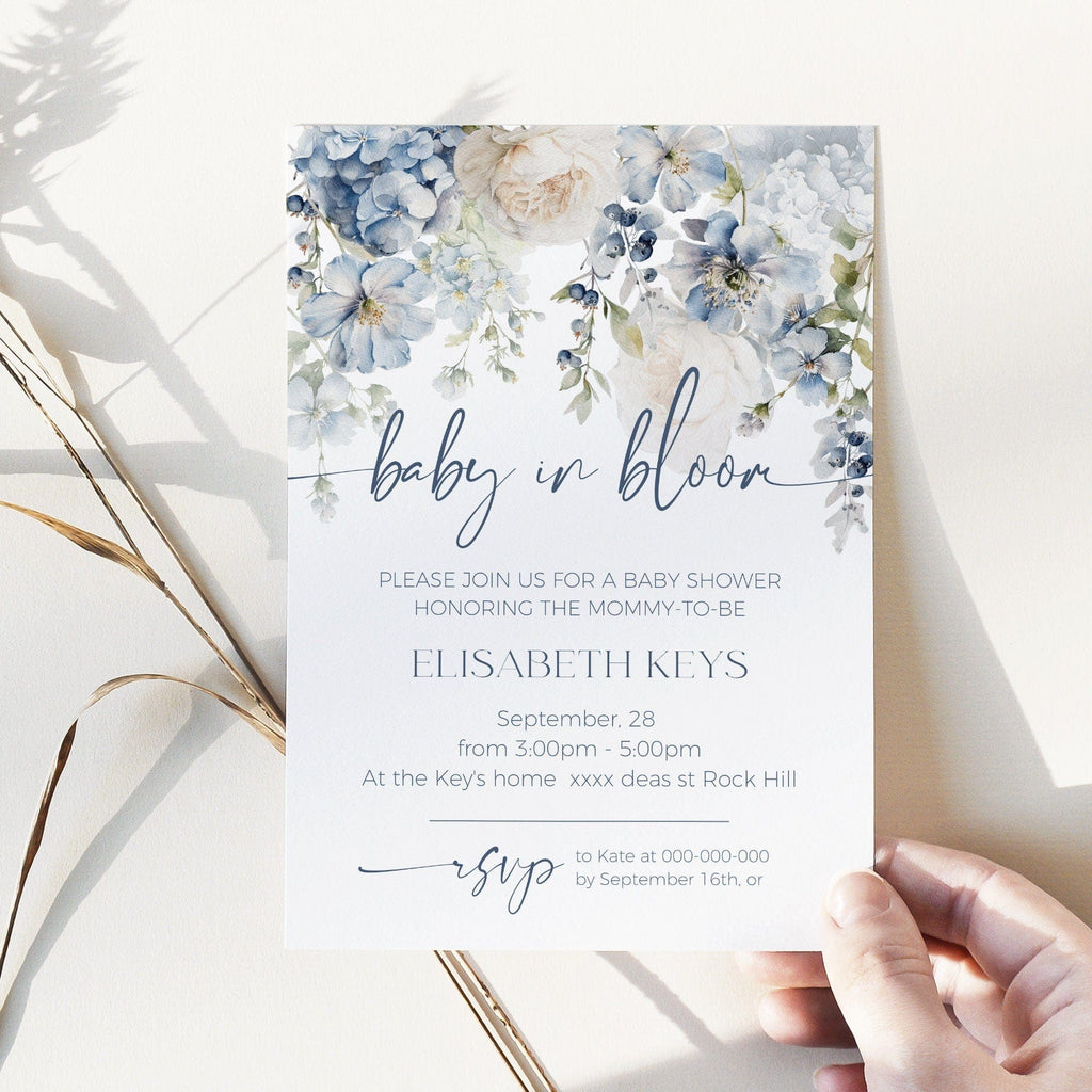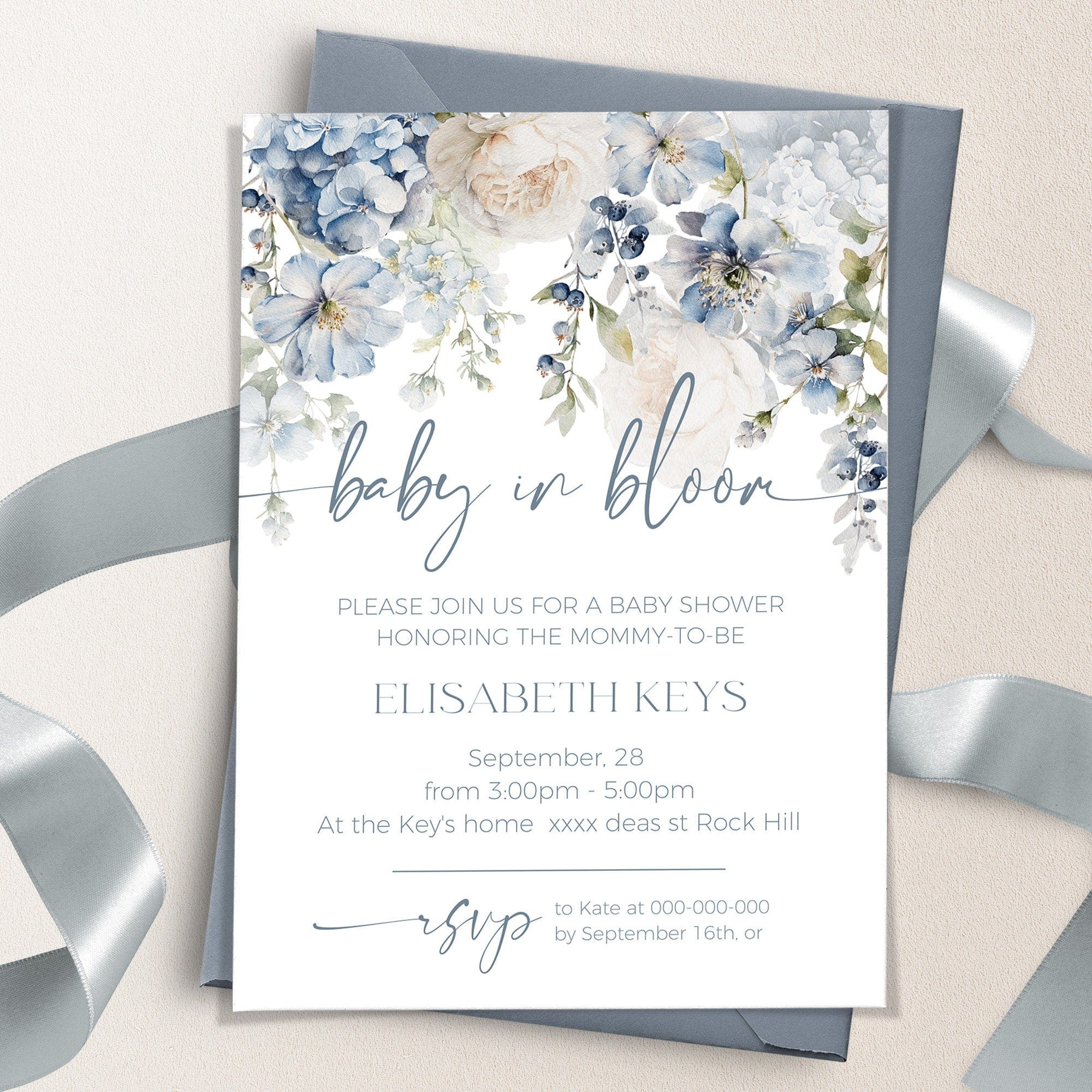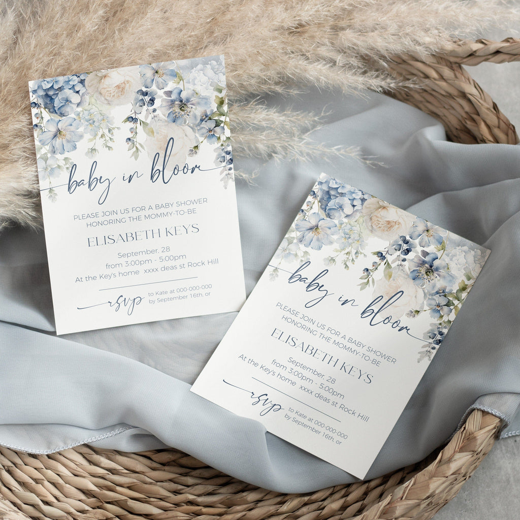 Dusty Rose & Blue Baby Shower Invitation | 3 Sizes | Personalized Invites