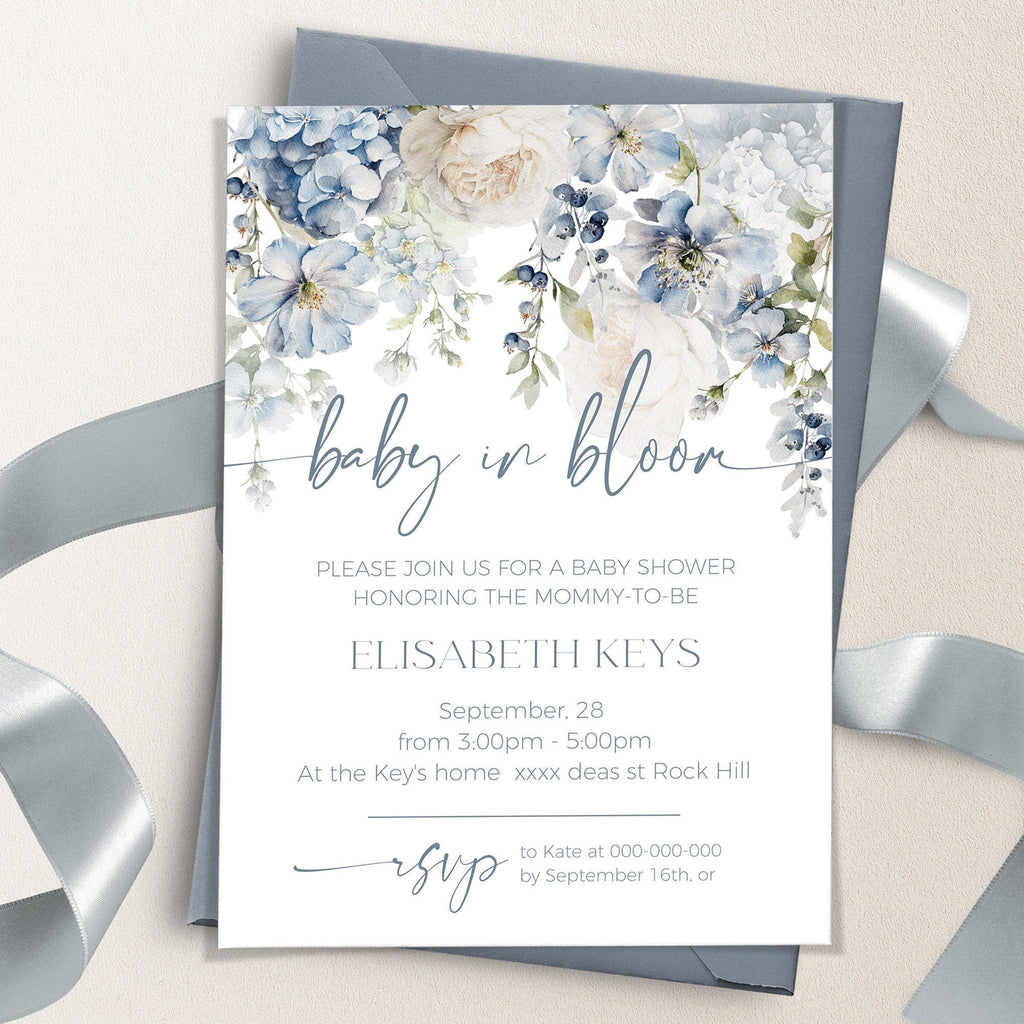 Dusty Rose & Blue Baby Shower Invitation, EDITABLE Templates