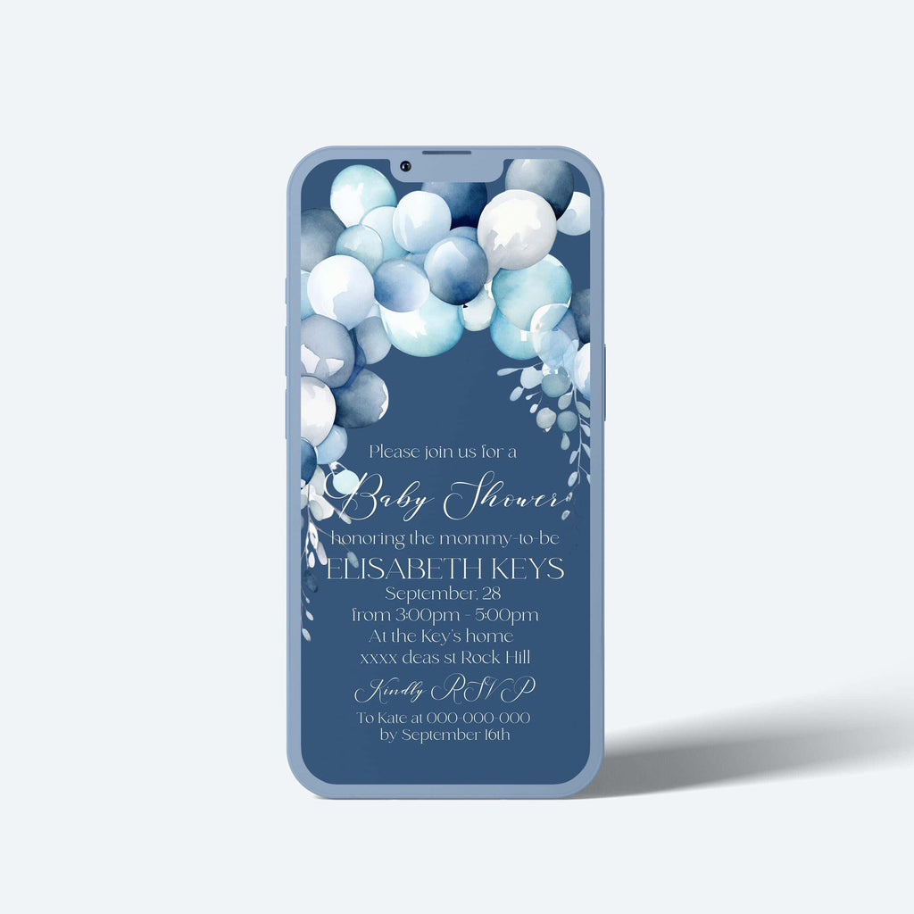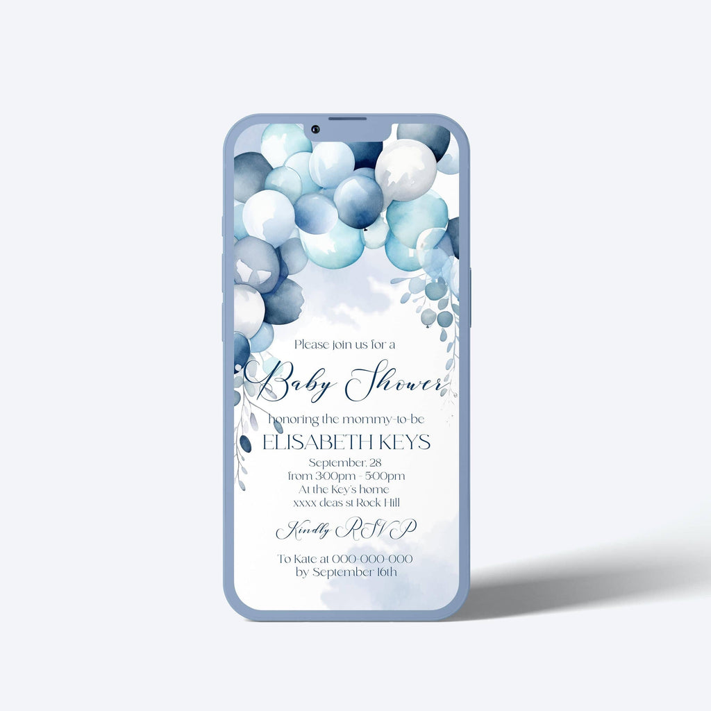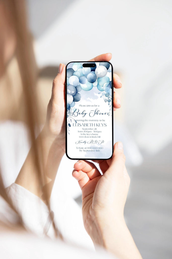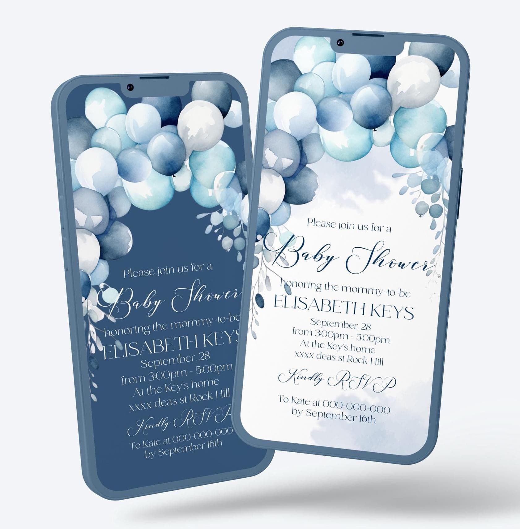 Blue Balloons Baby Shower Invitation, EDITABLE Templates