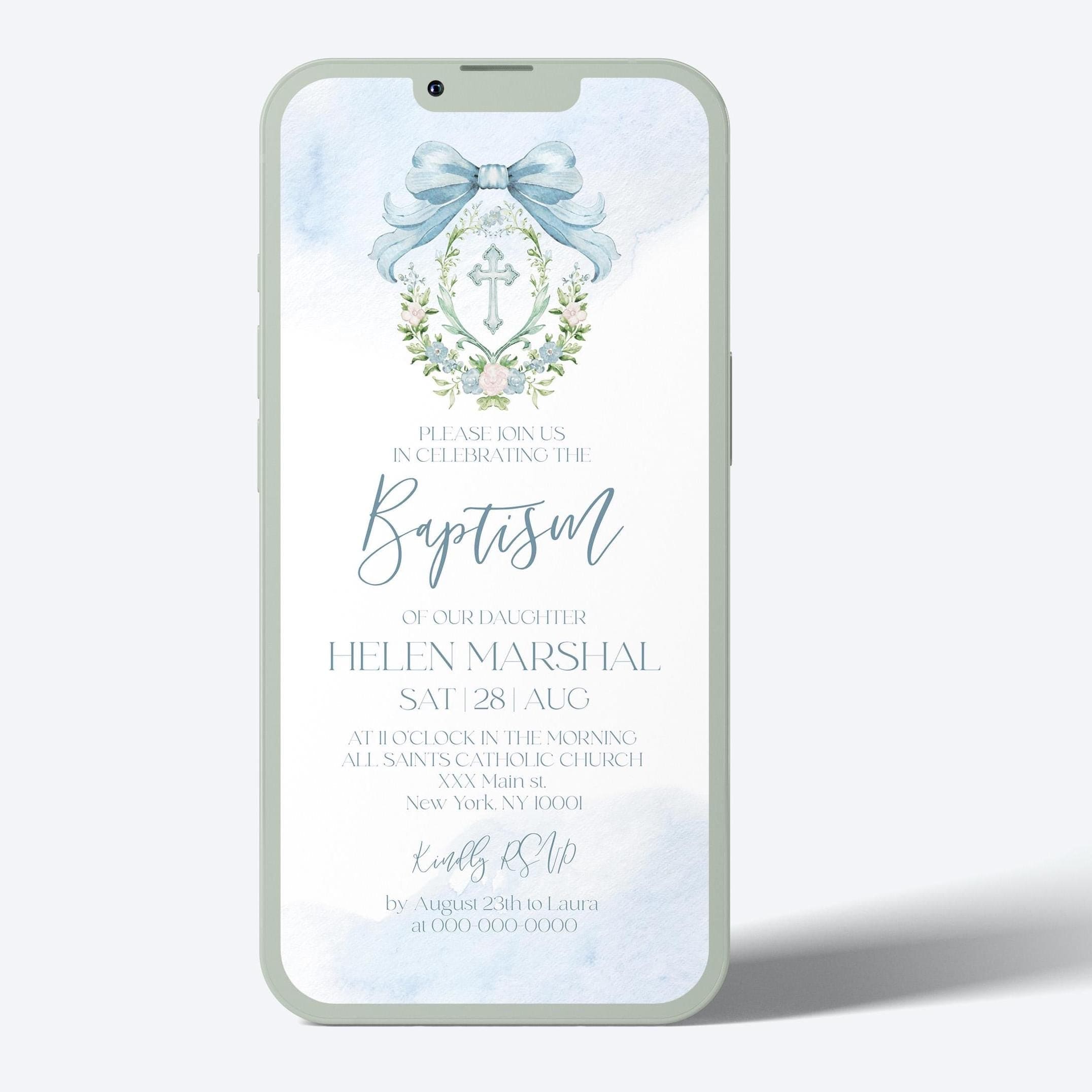 Crest Blue Electronic Baptism Invitation, Personalized iPhone Invites
