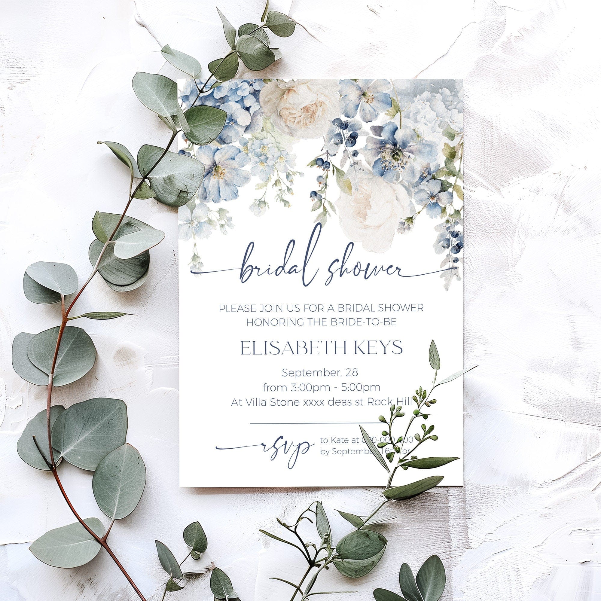 Blue Bridal Shower Invitation | 3 Sizes | Dusty Blue Printable Templates