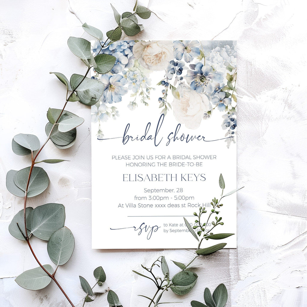 Blue Bridal Shower Invitation, EDITABLE Templates