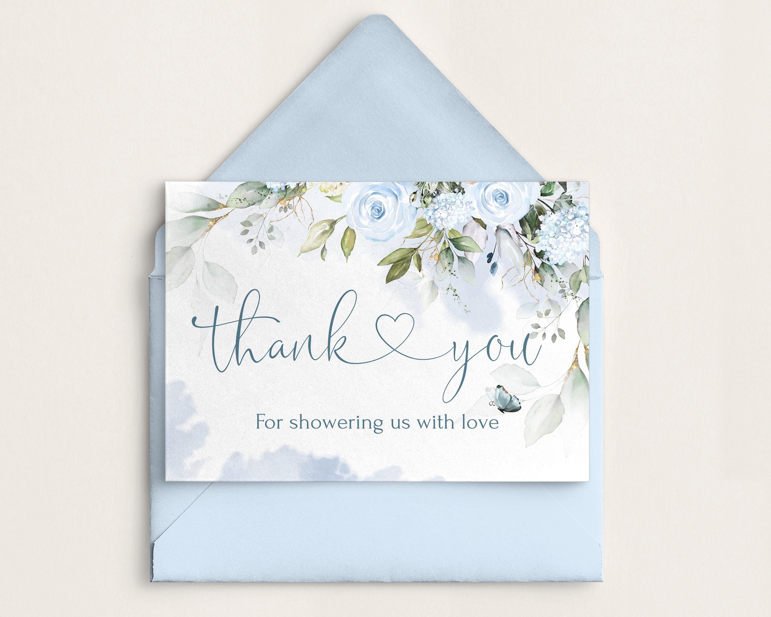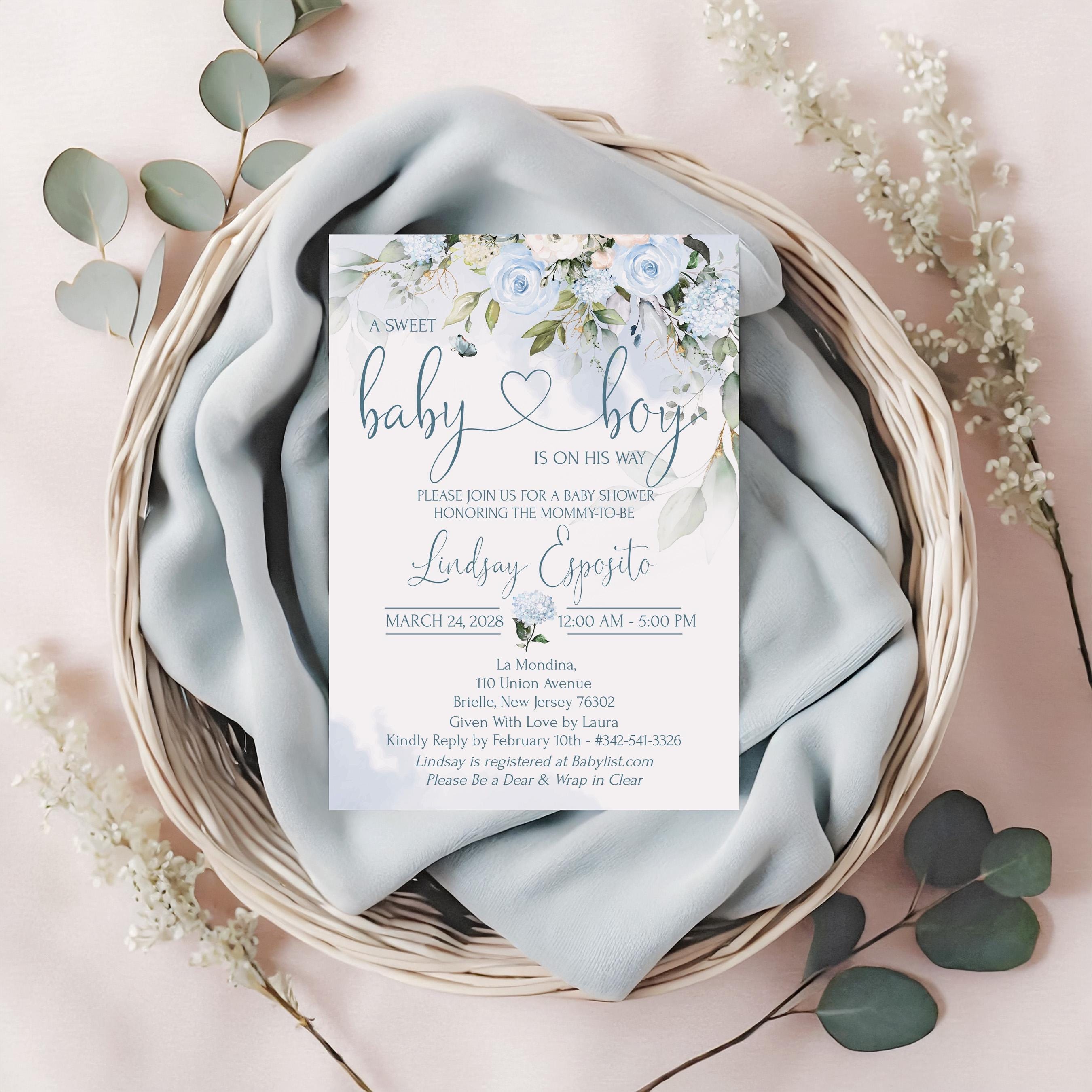 Dusty Blue Floral Baby Boy Shower Invite Bundle