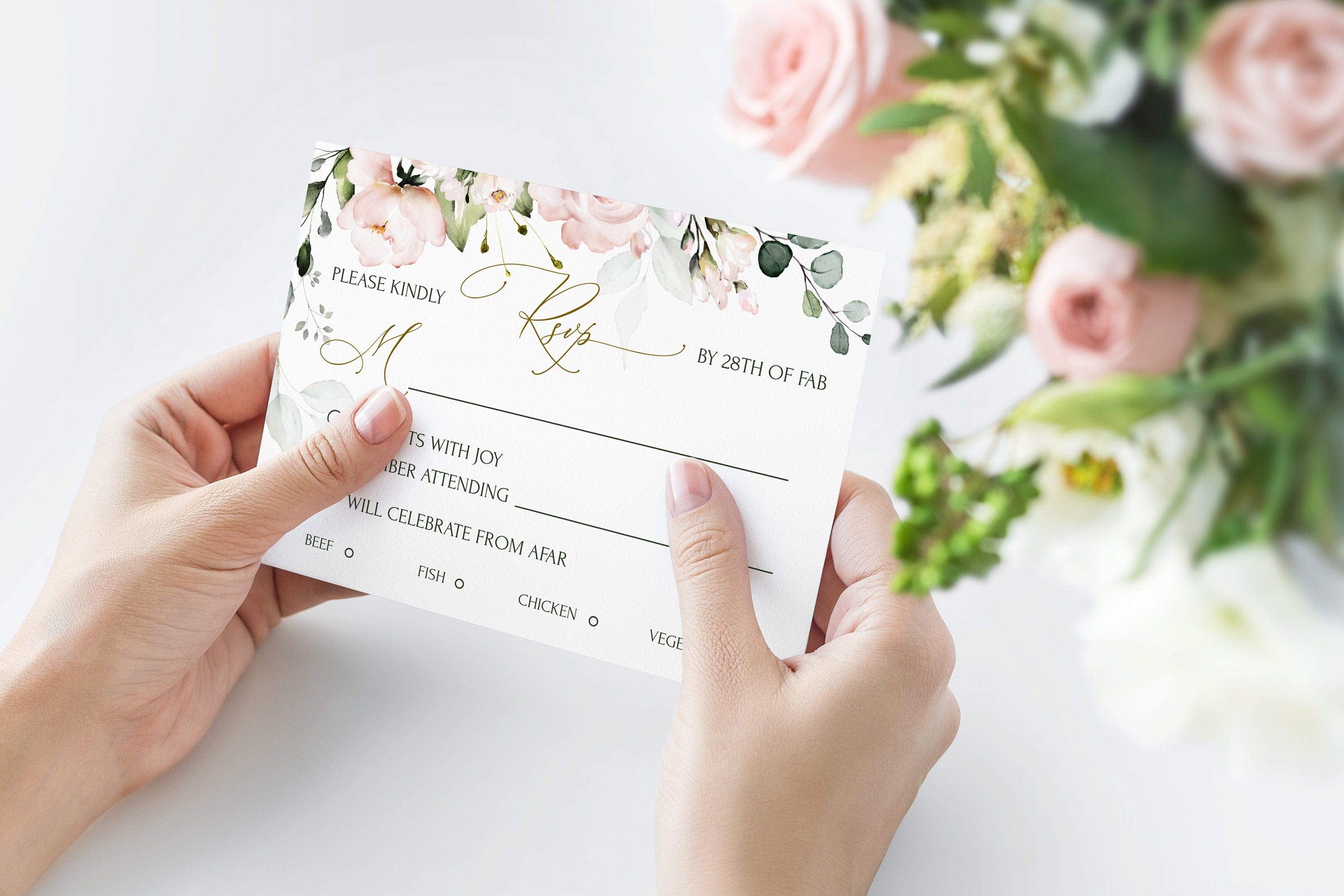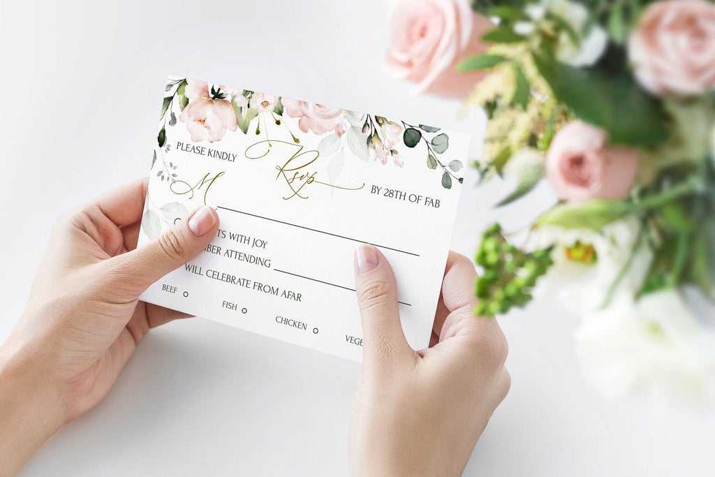 Blush Floral Wedding Invitation Suite | 5 items | Elegant Gold Frame