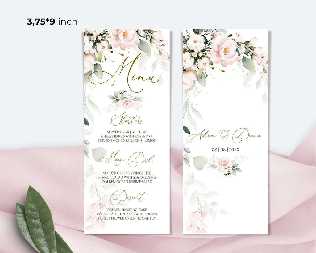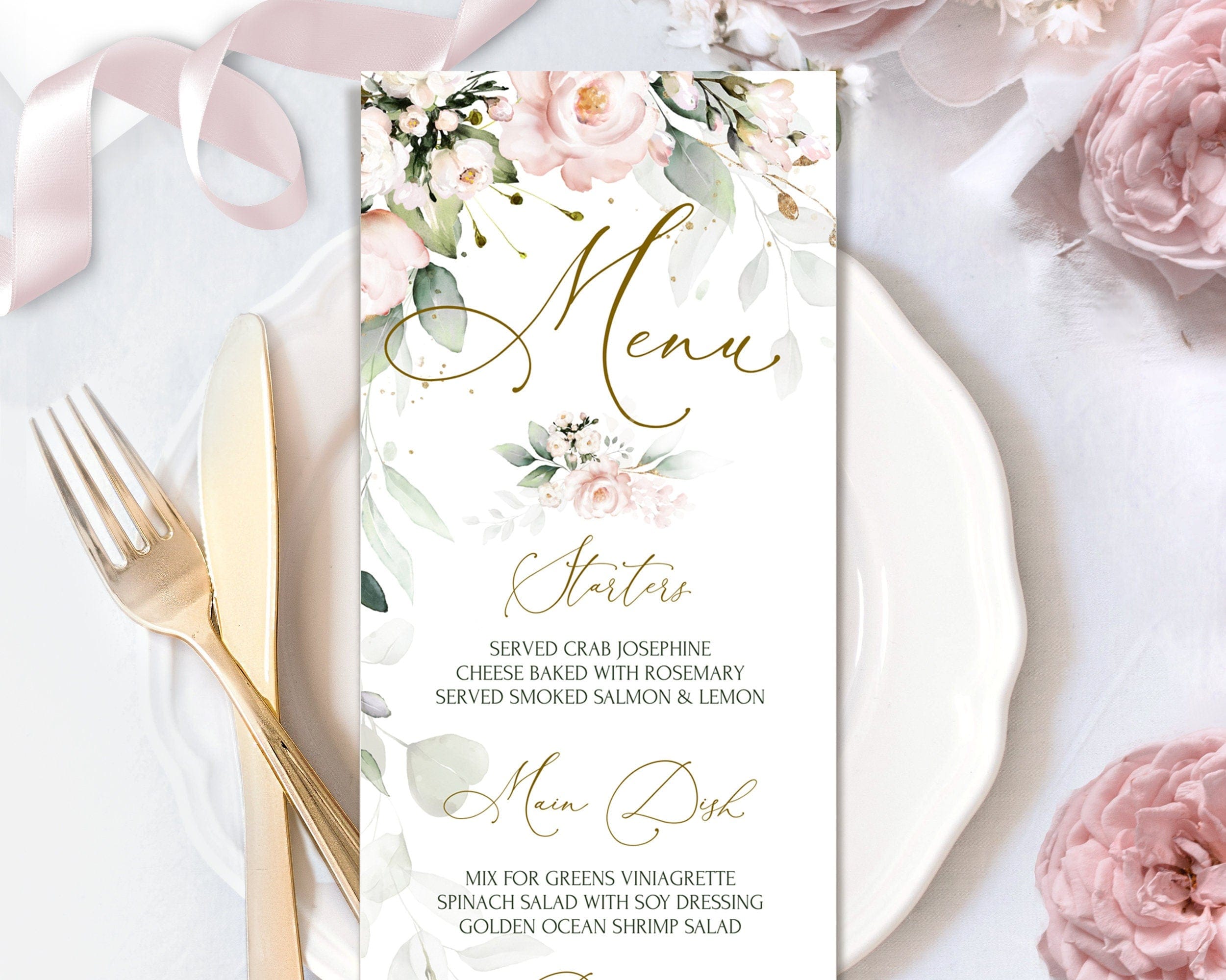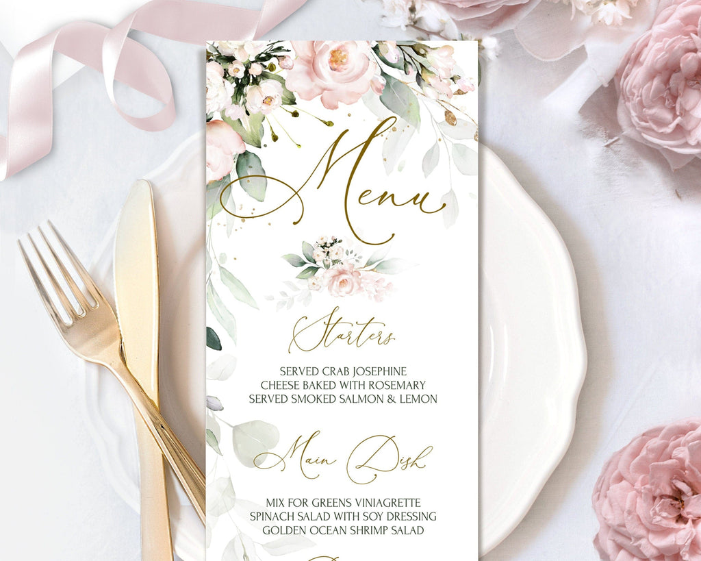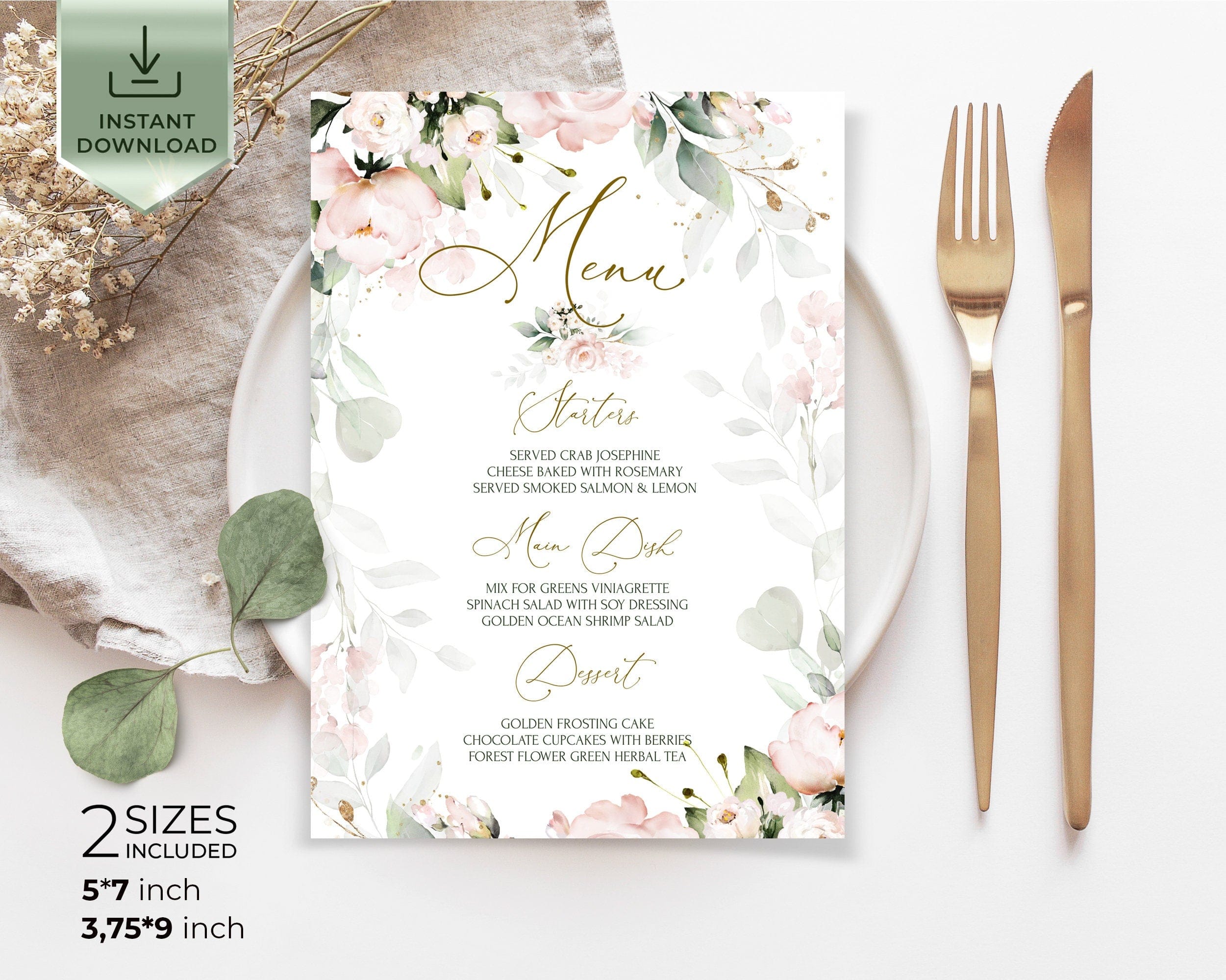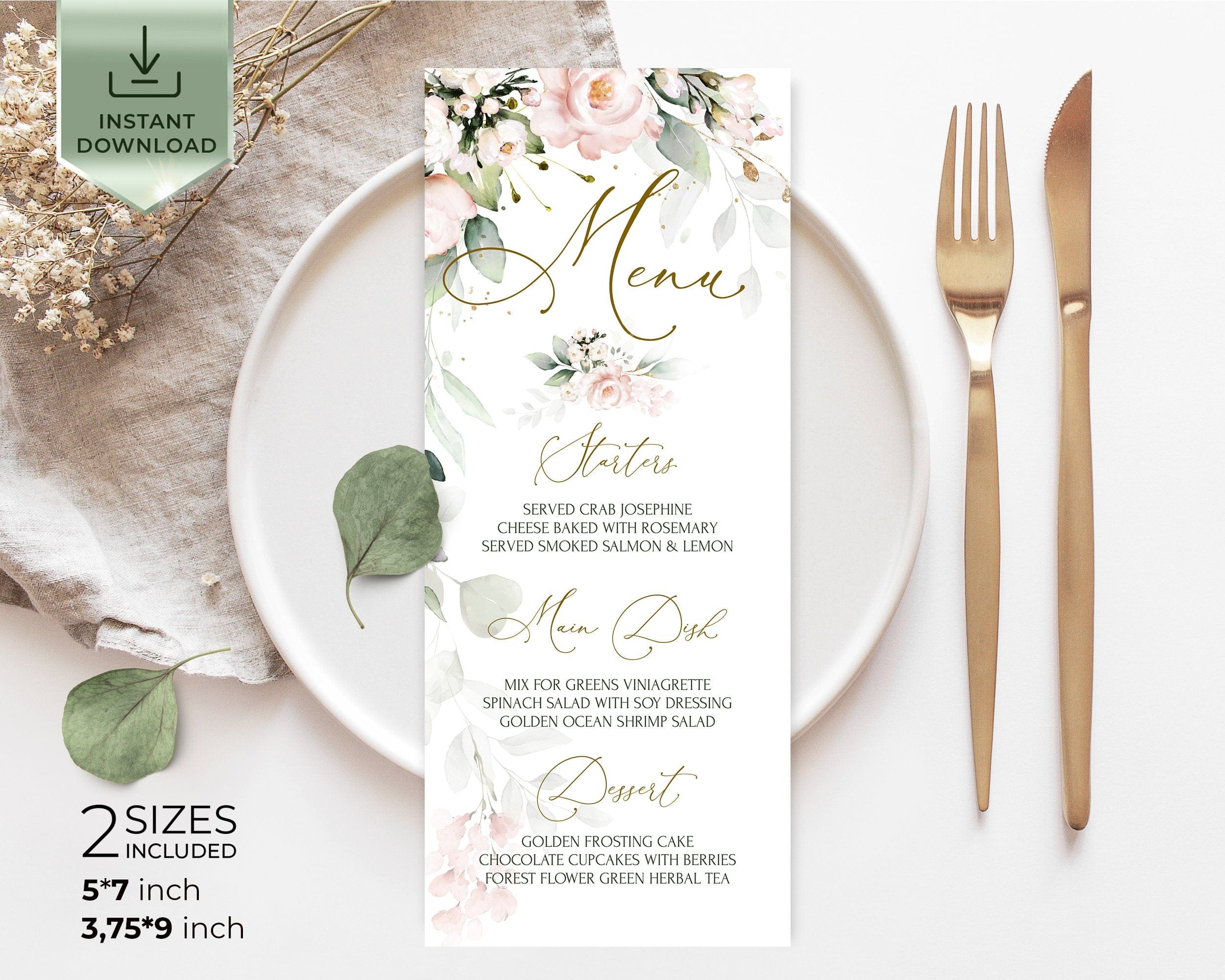 Blush Greenery Dinner Card | 2 Sizes | DIY Wedding Menu Inspo