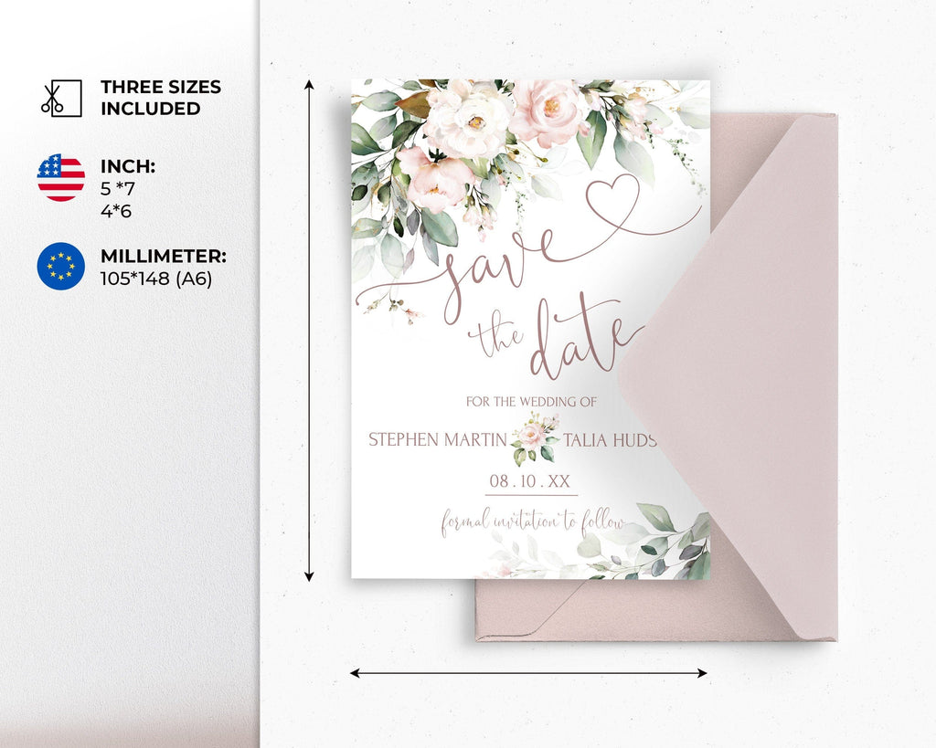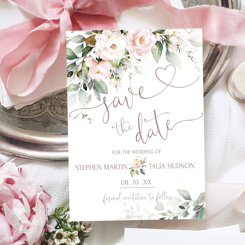 Blush Pink Save the Date Cards, EDITABLE Templates