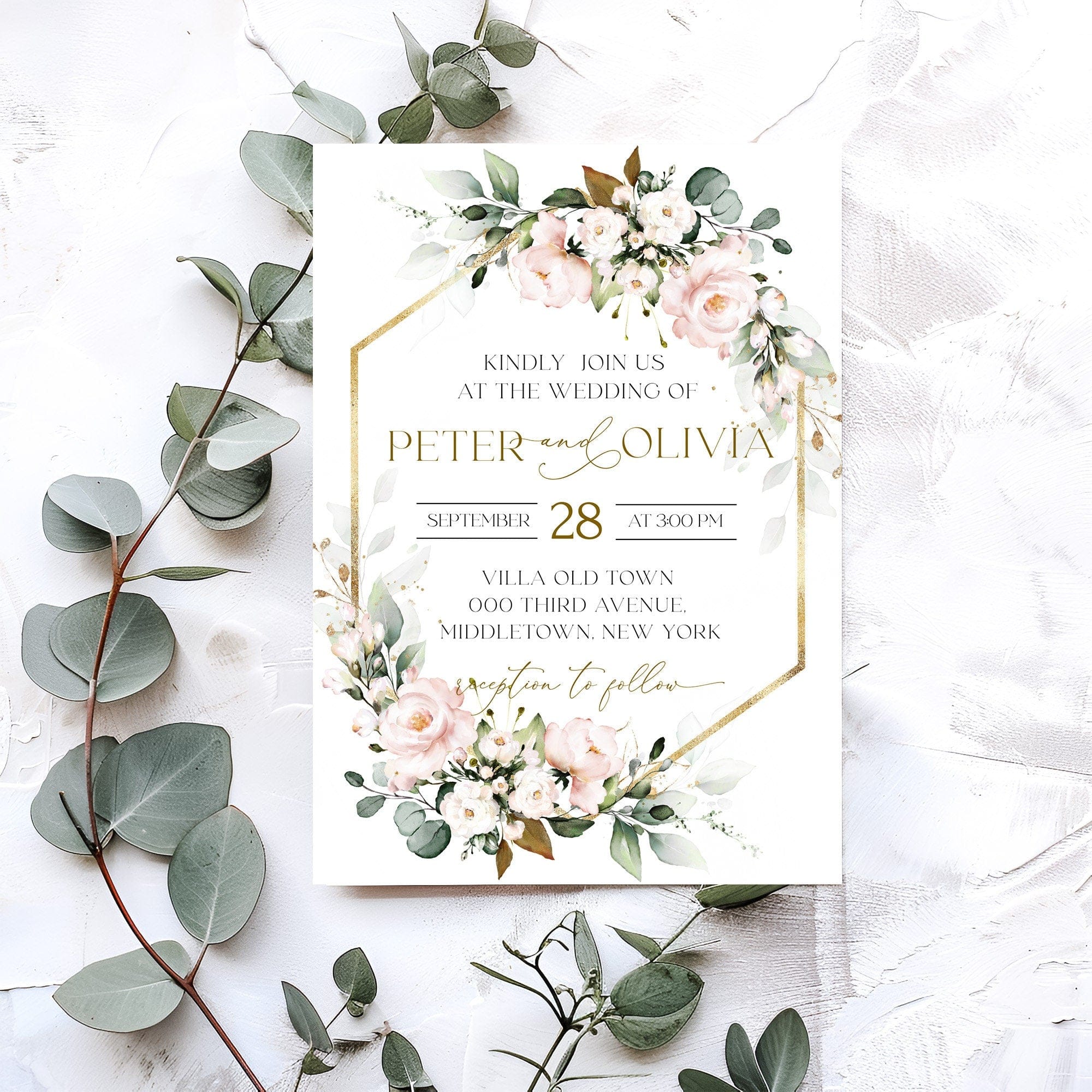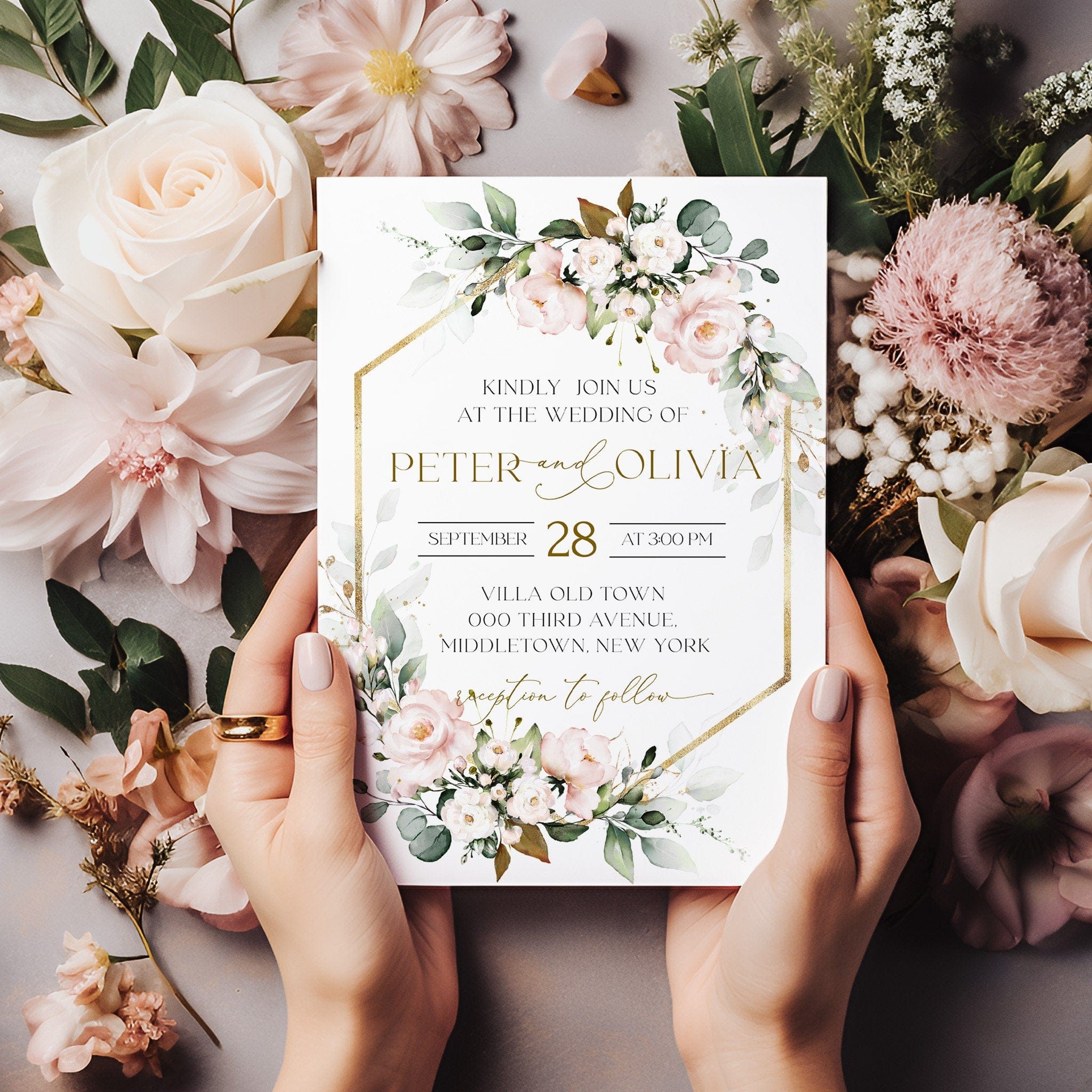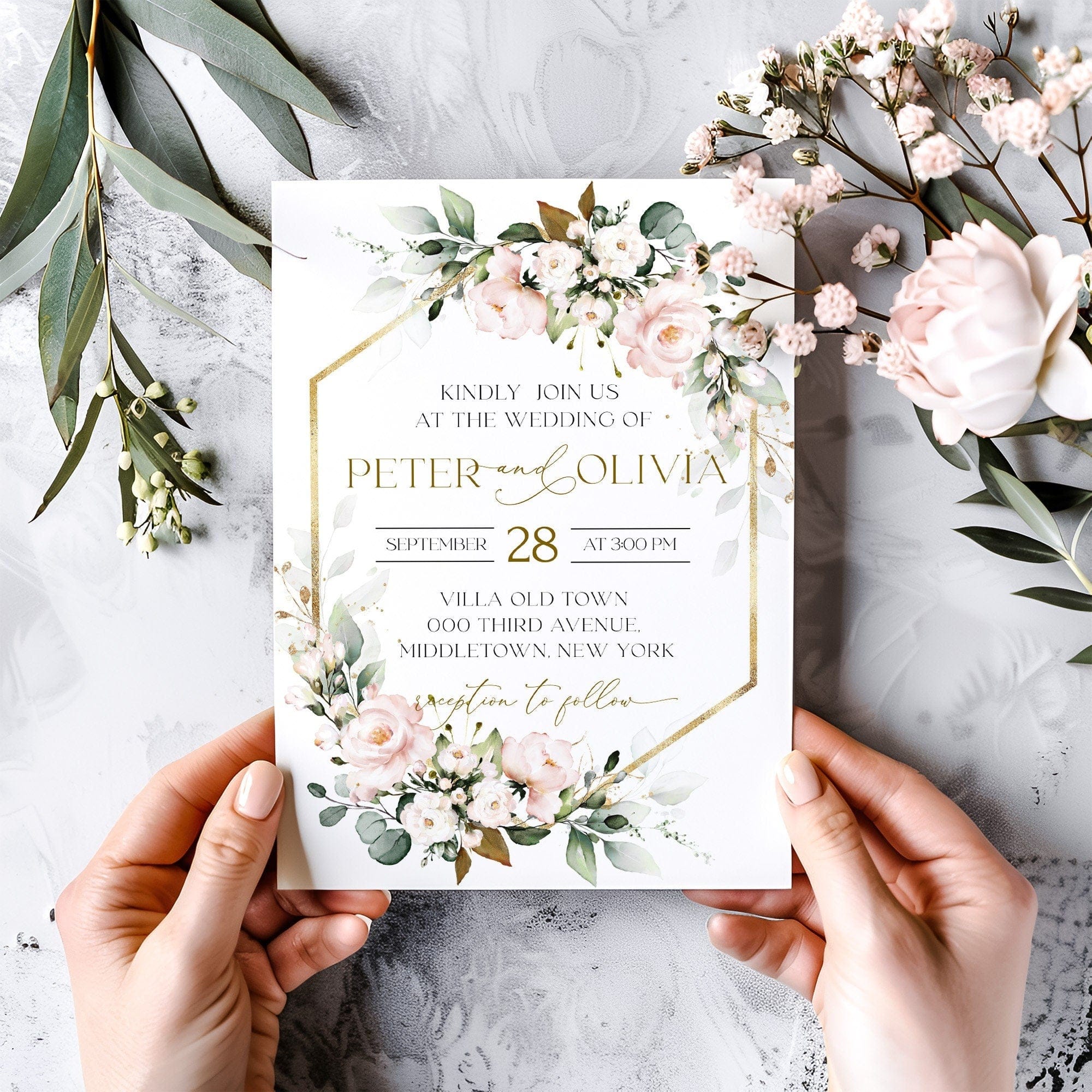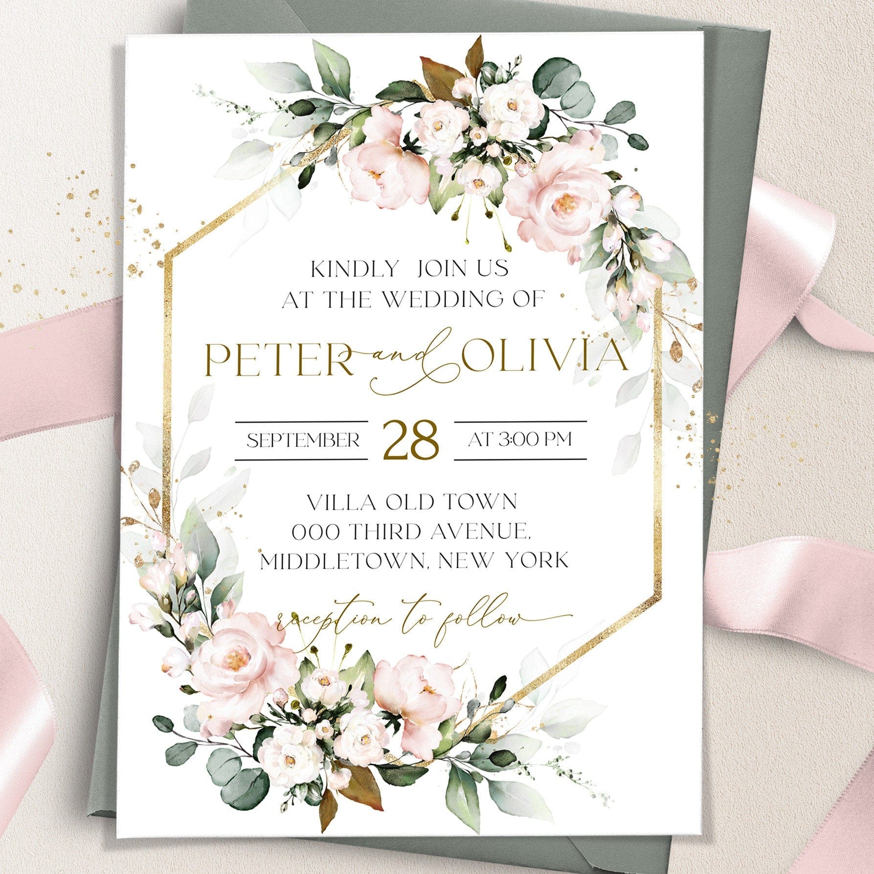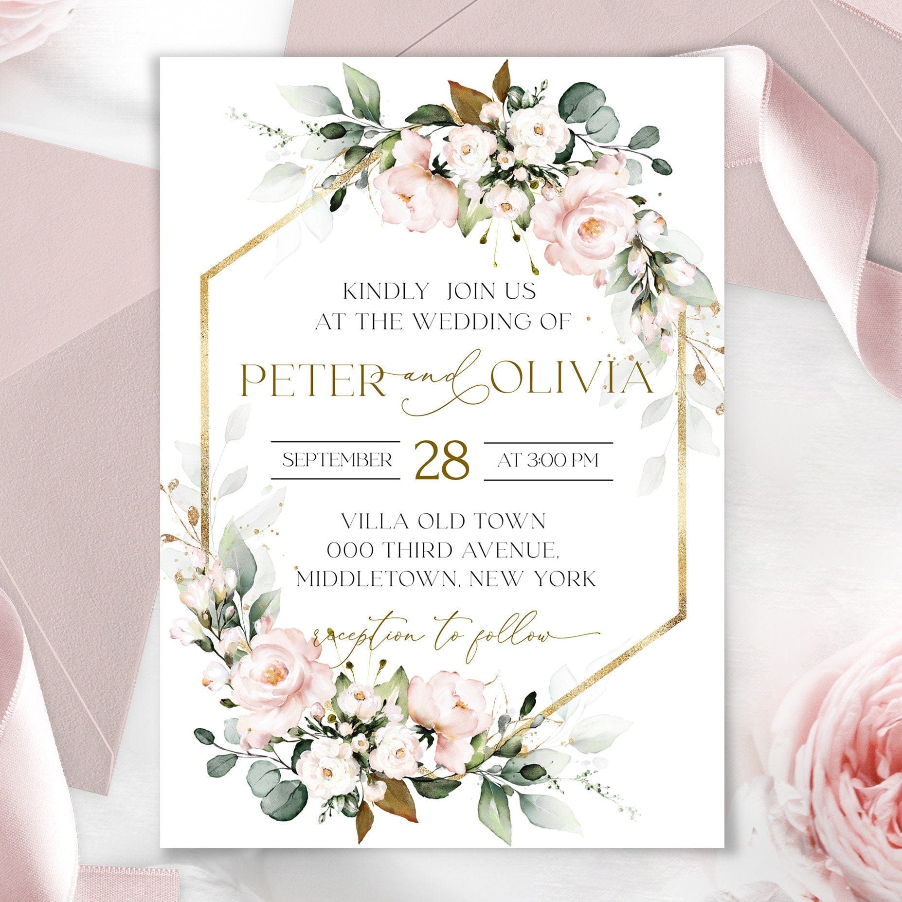 Boho Wedding Blush Pink Invitations | 3 Sizes | Personalized Printables