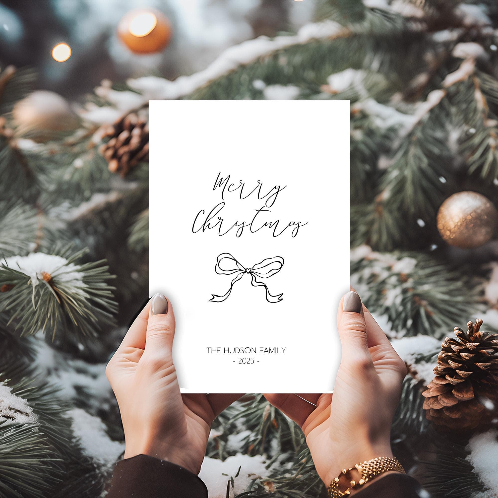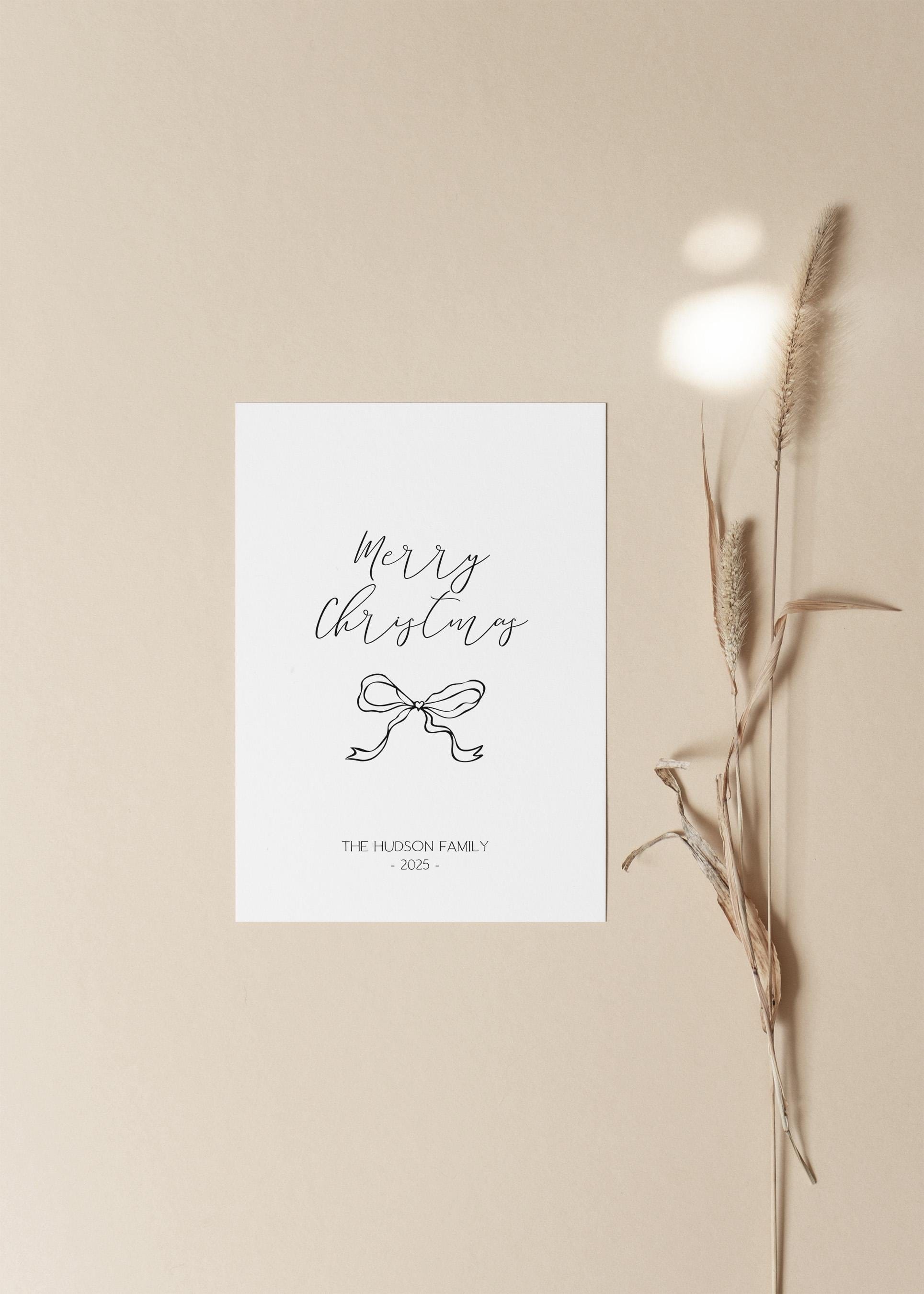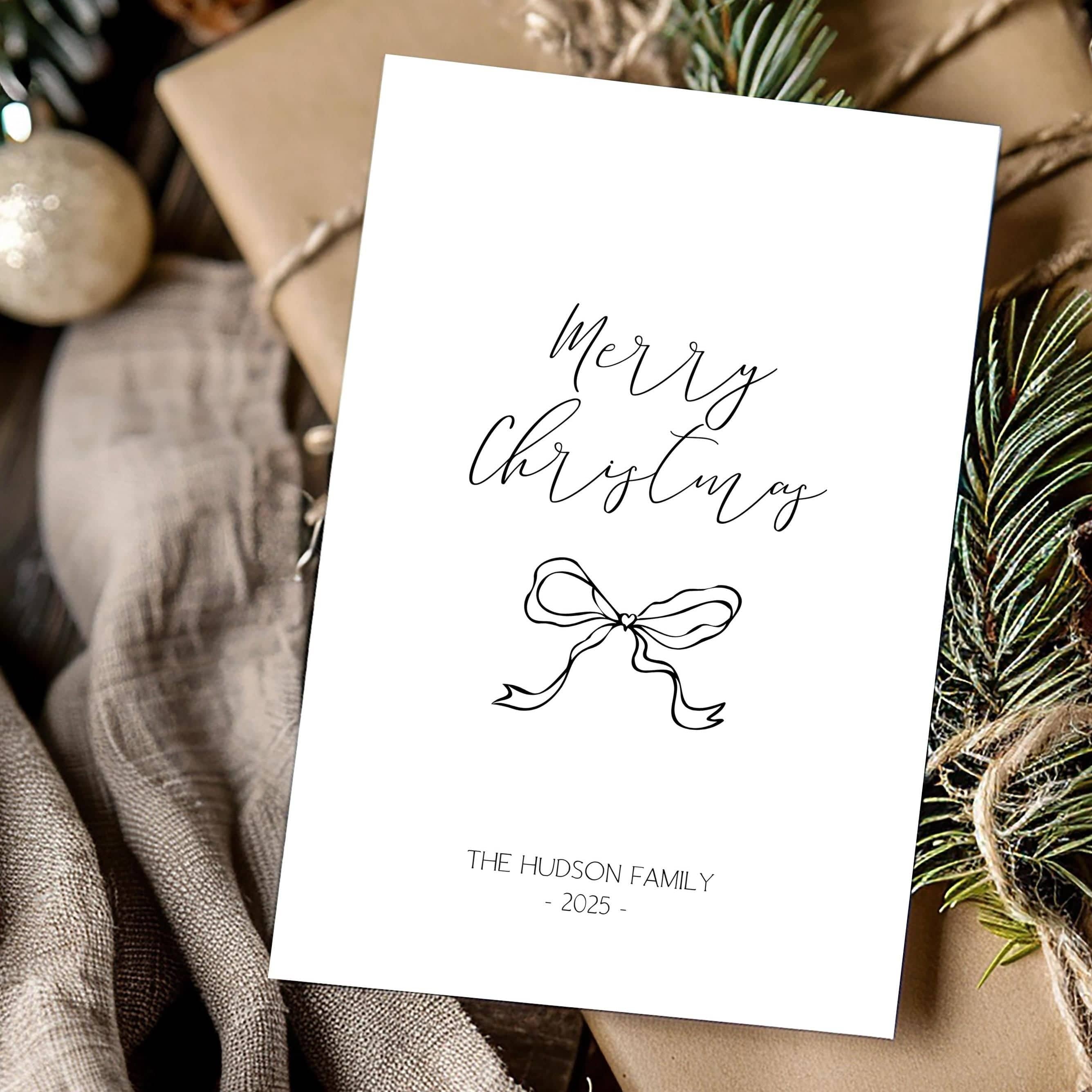Hand Written Christmas Holiday Card | 3 Sizes | Bow Themed Greeting Card