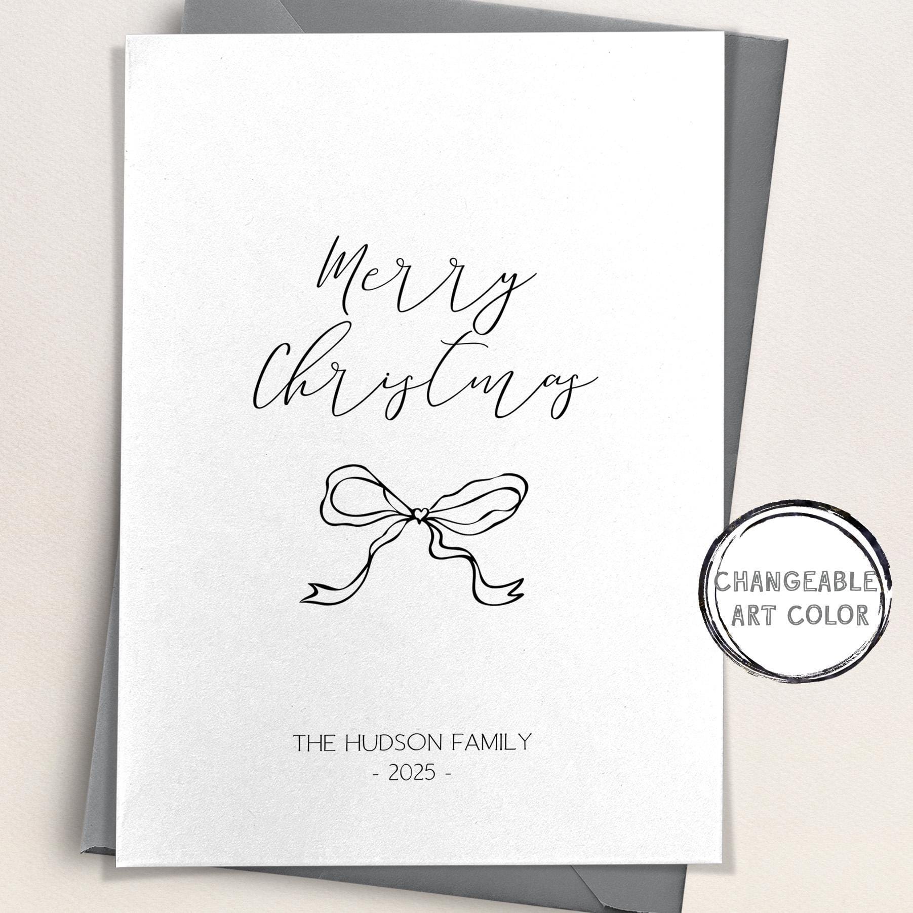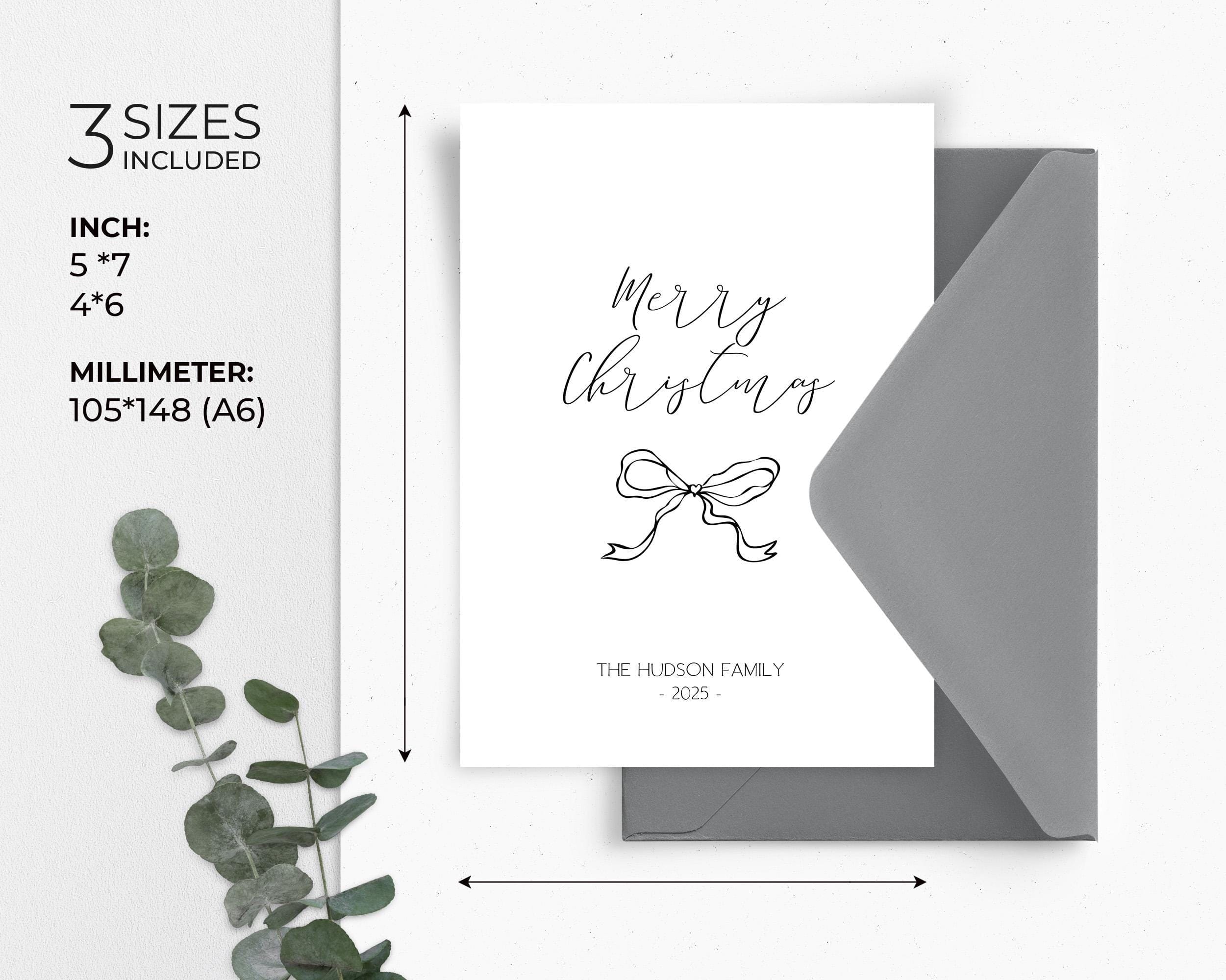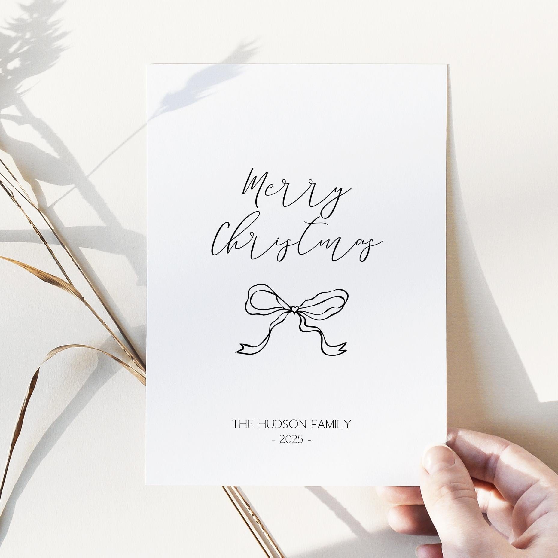 Hand Written Christmas Holiday Card | 3 Sizes | Bow Themed Greeting Card