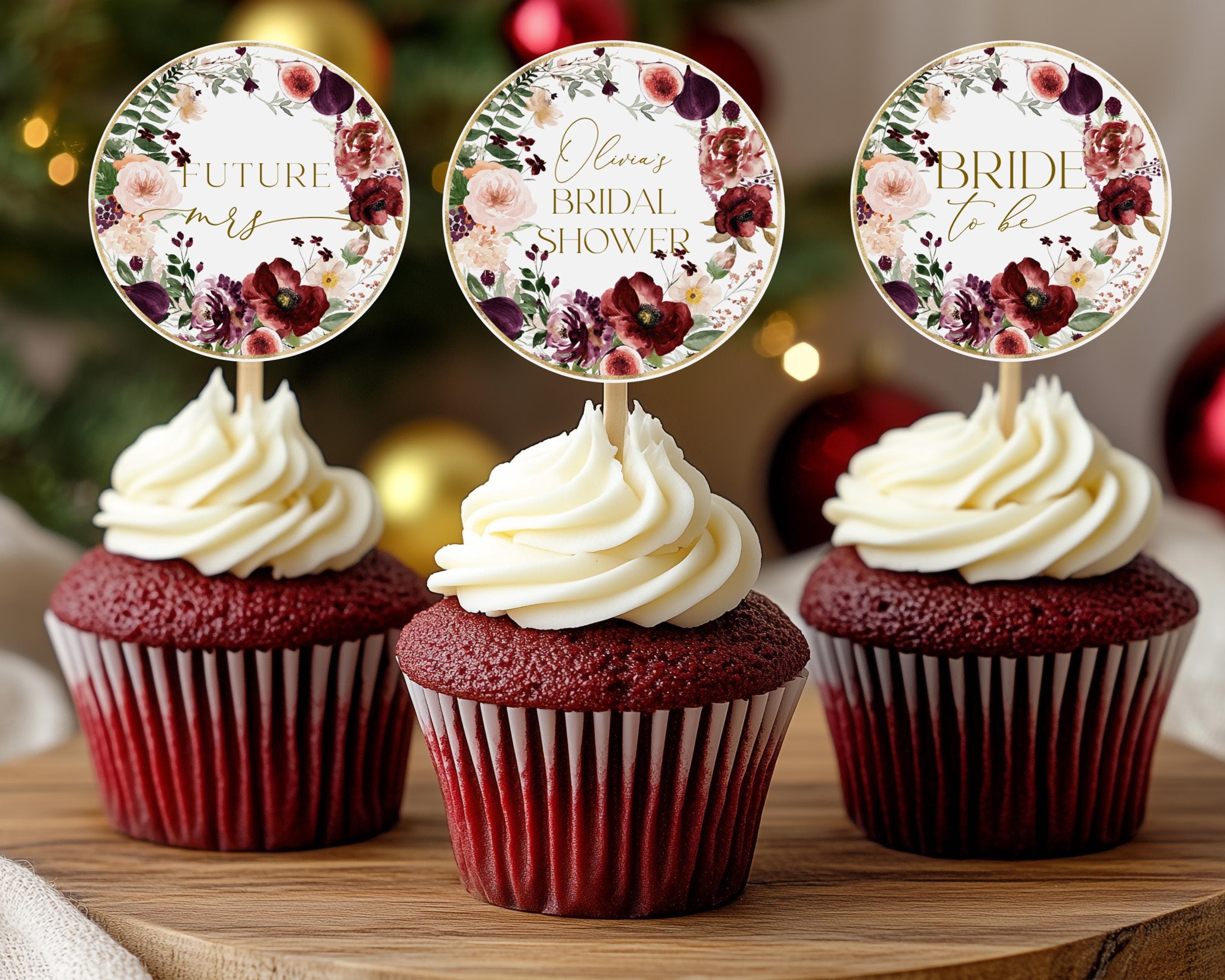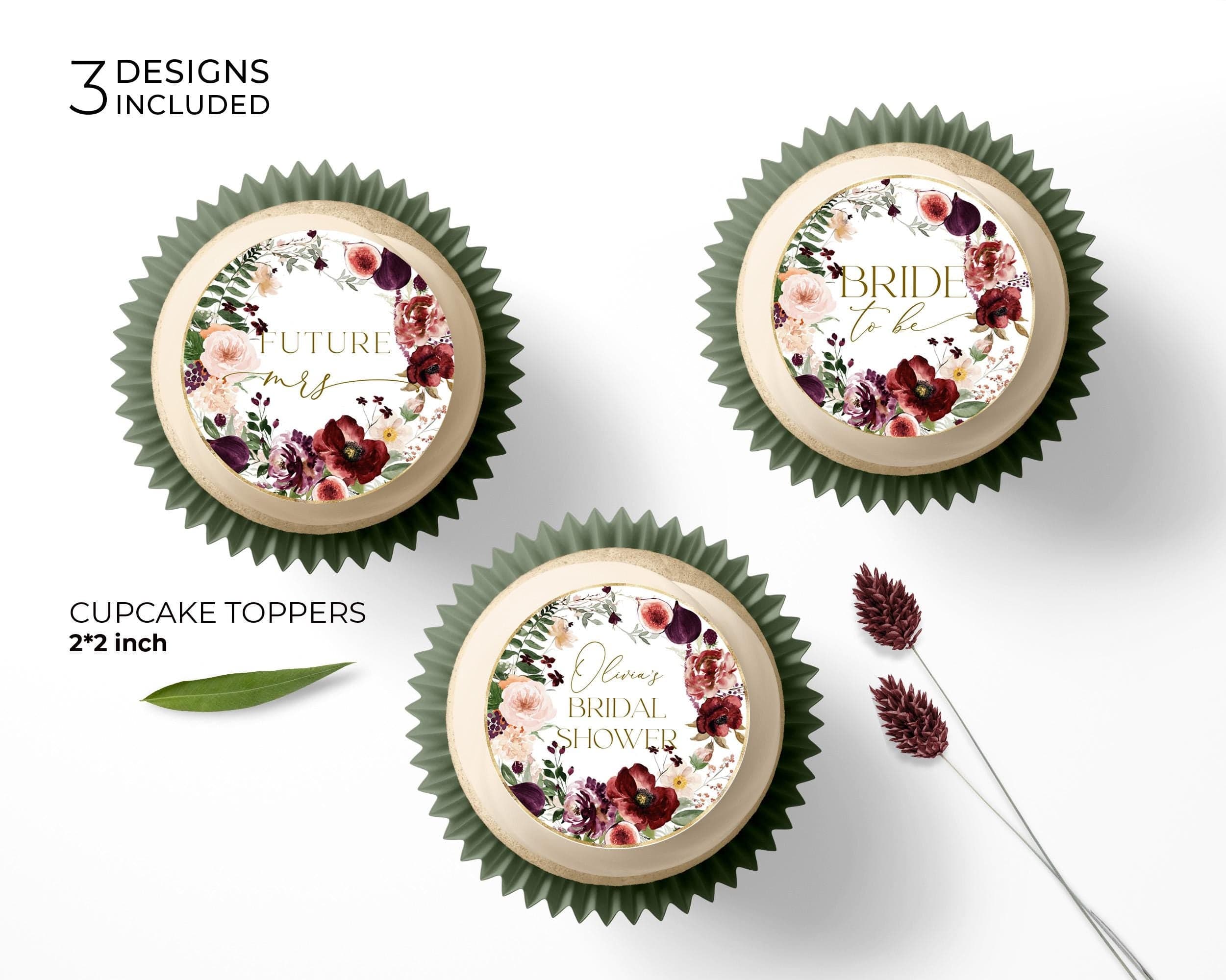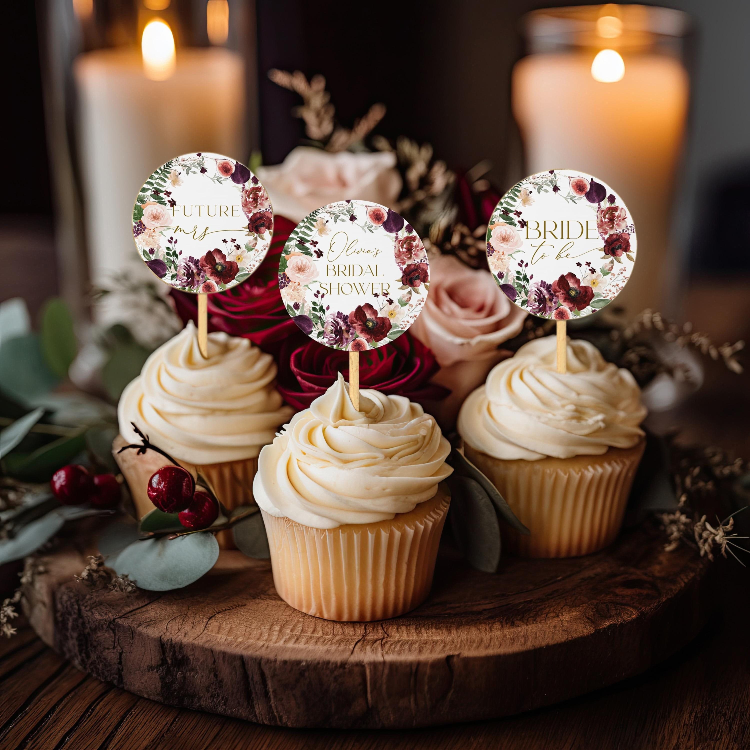 Bride To Be Cupcake Toppers Dark Floral Boho 2x2 Printable