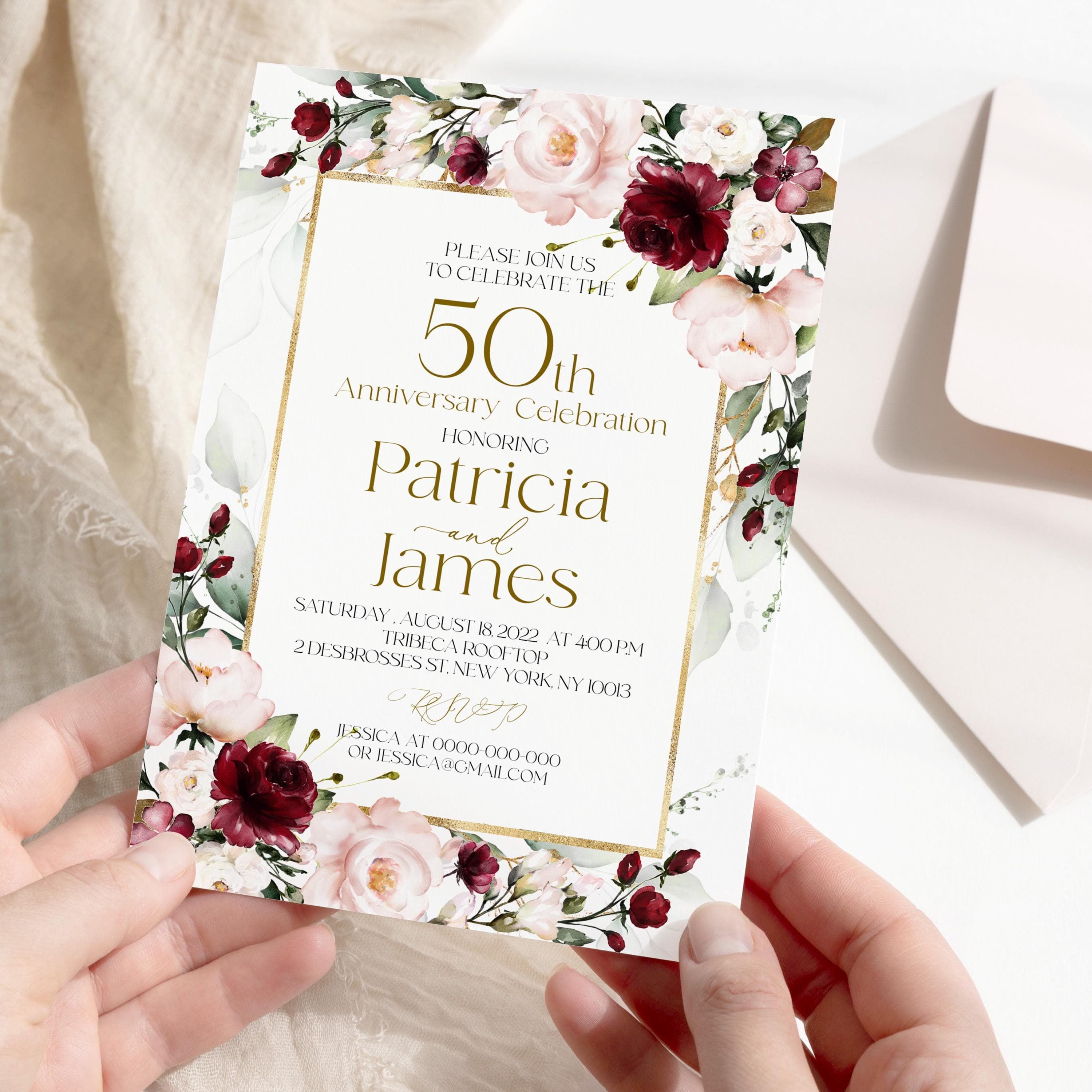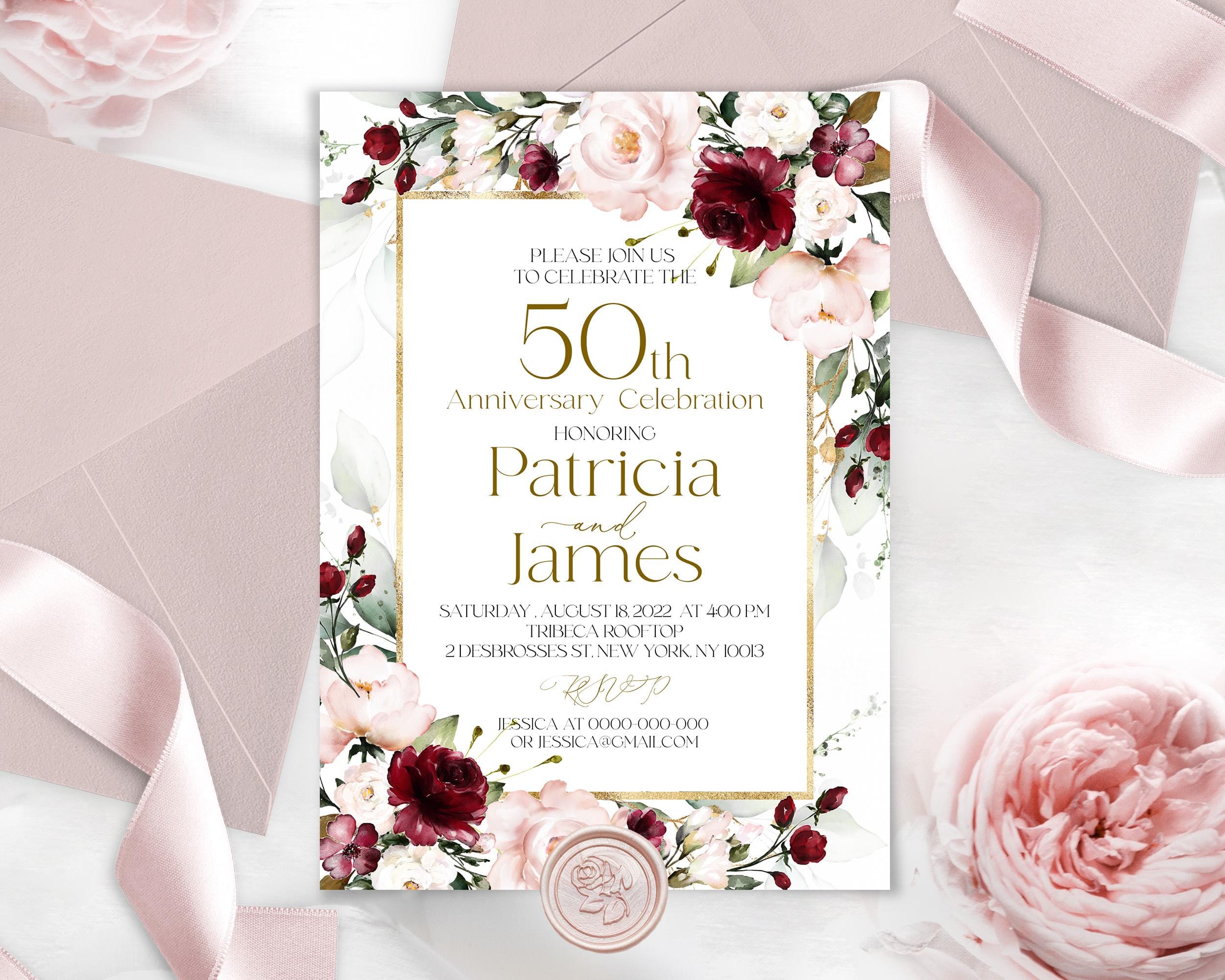 Floral 50th Anniversary Invitation, EDITABLE Templates