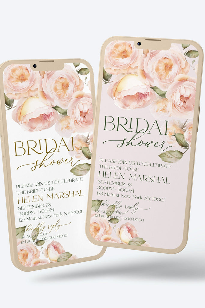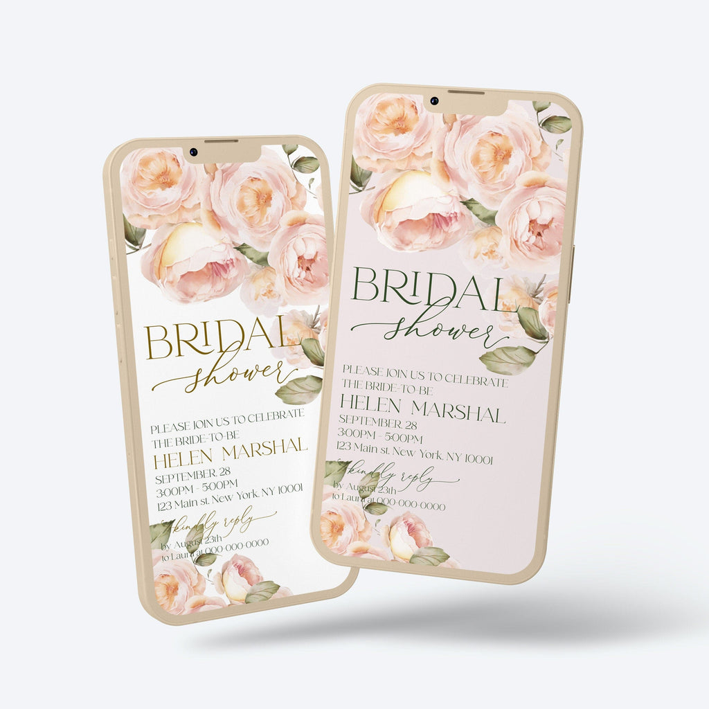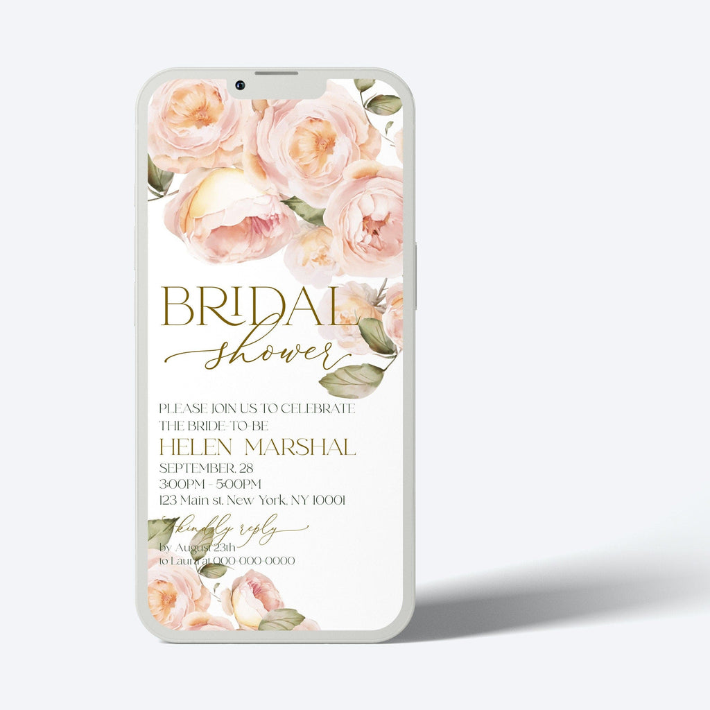 Digital Bridal Shower Invitation | Blush Peach Floral E-Invite