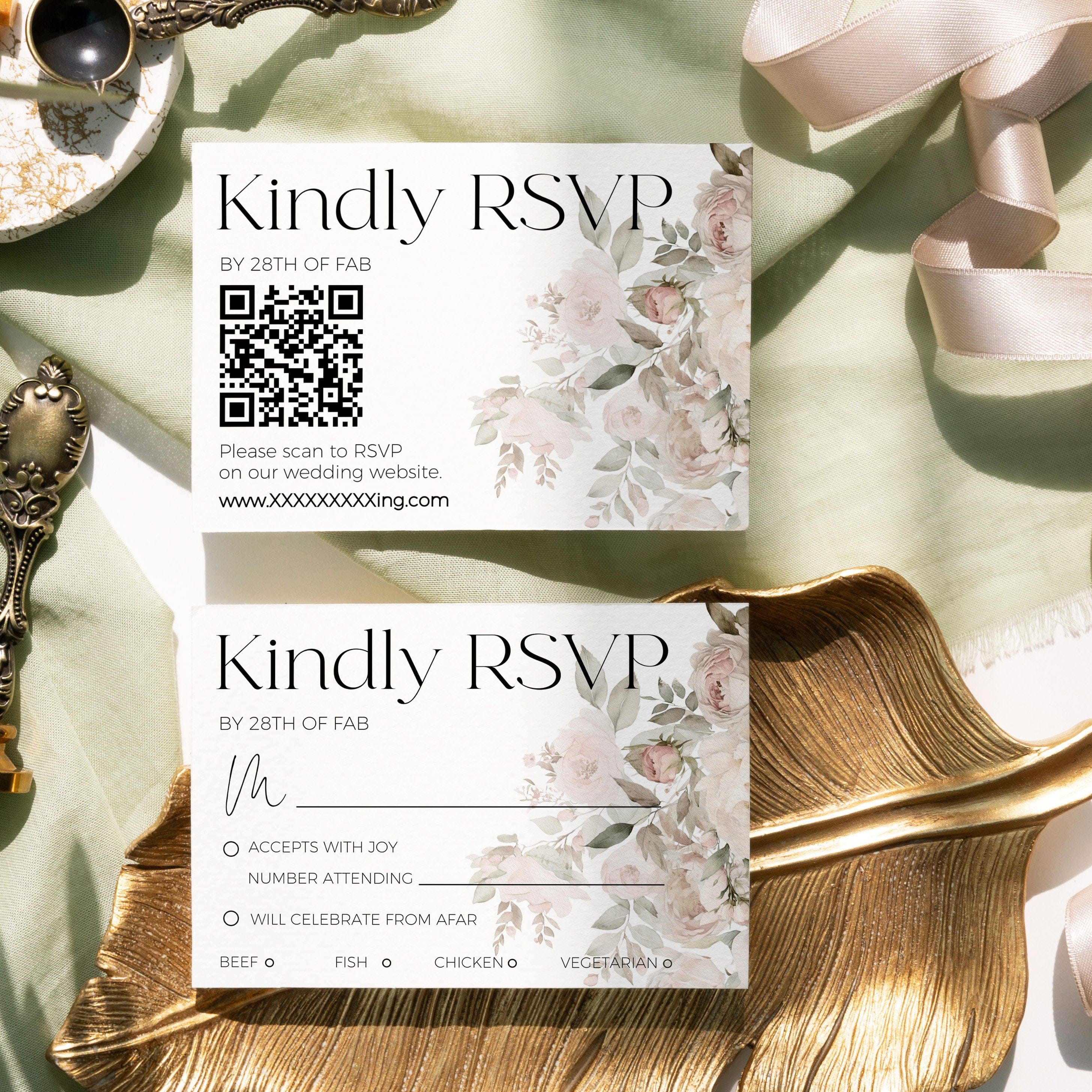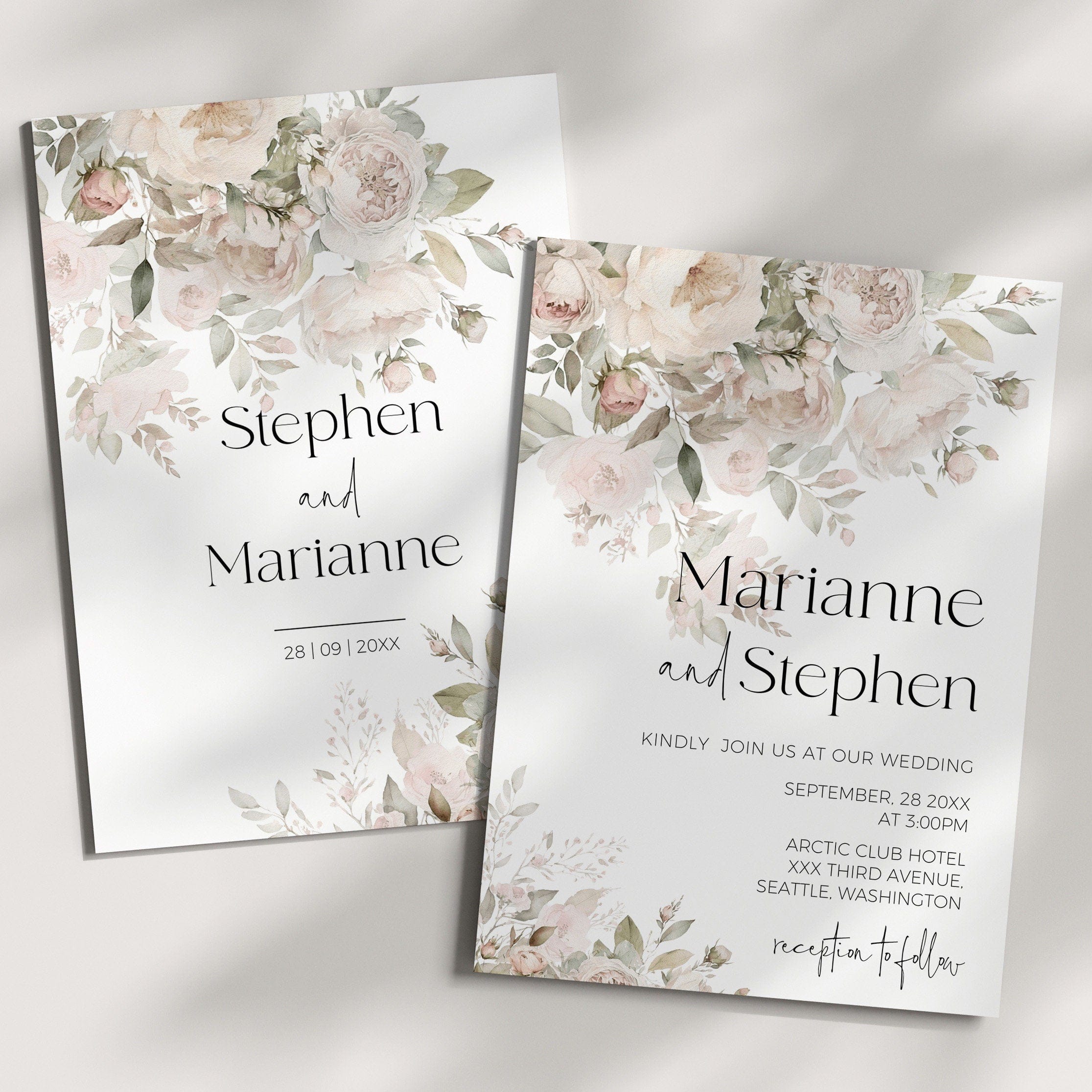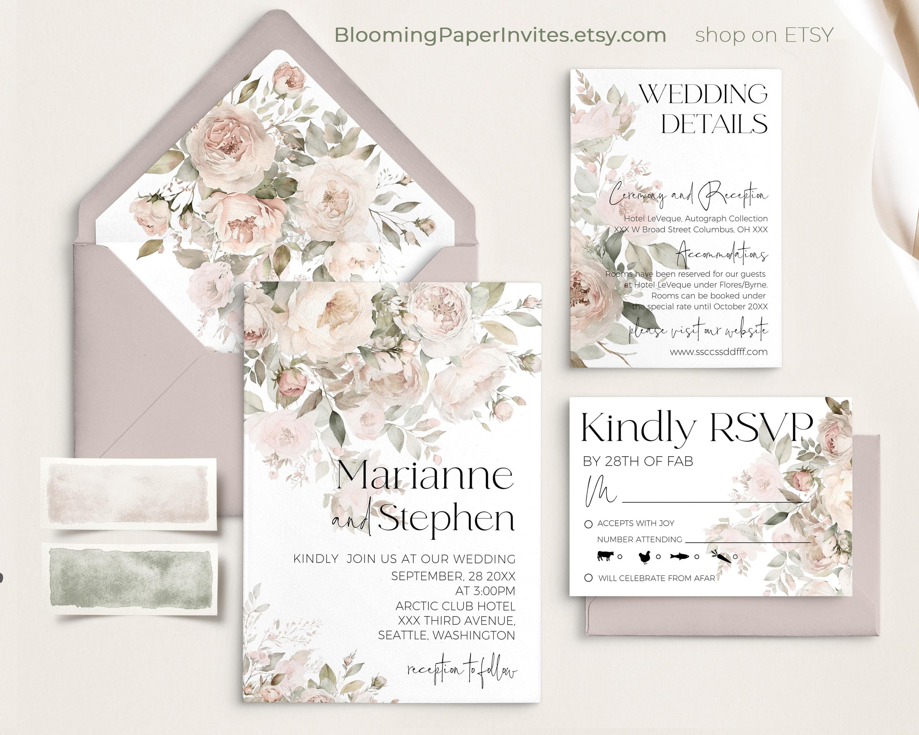 Romantic Dusty Rose Wedding Invite Set with RSVP | DIY Printables