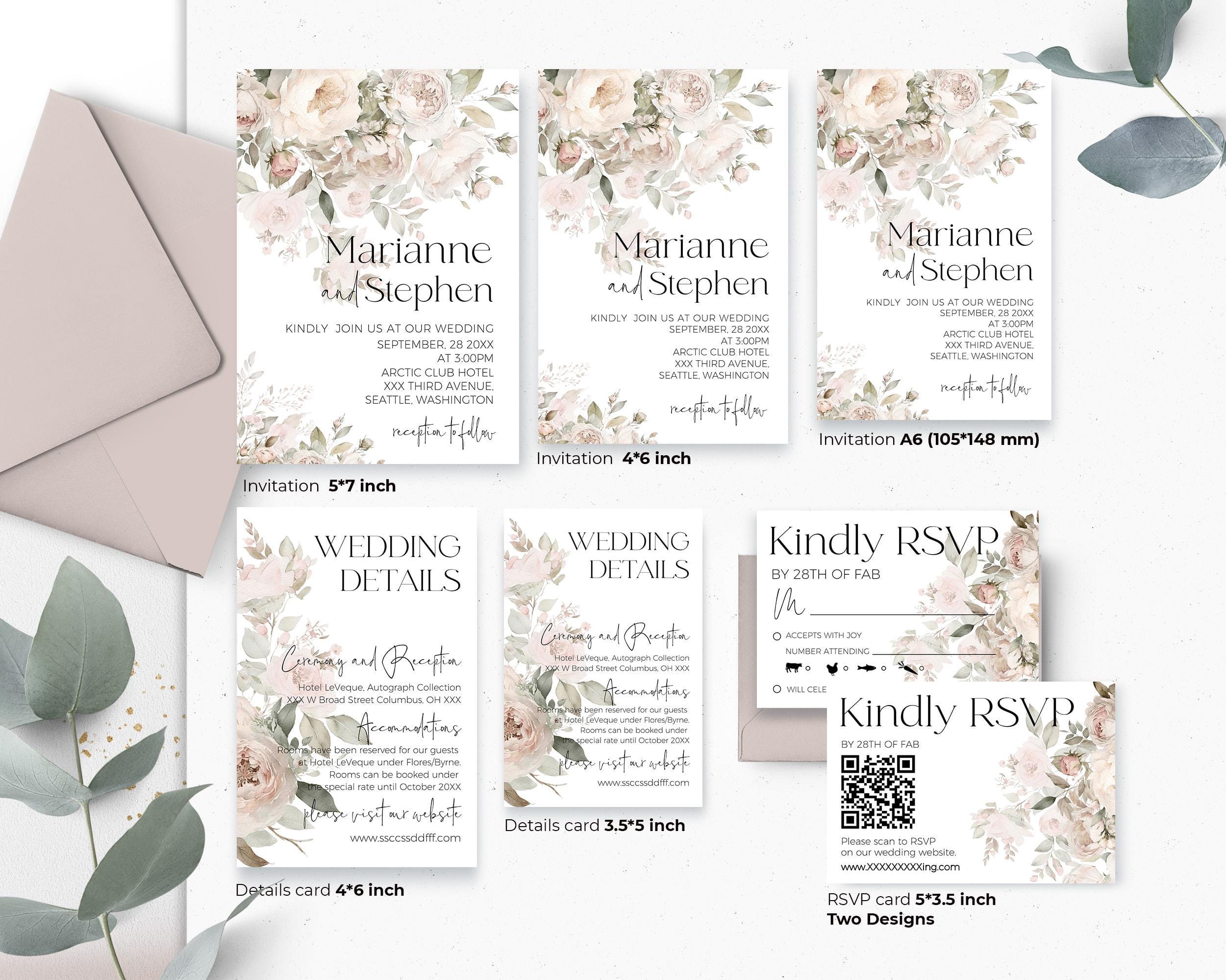 - Invitation Card: 5" x 7", 4" x 6'', A6 (105 x 148 mm)