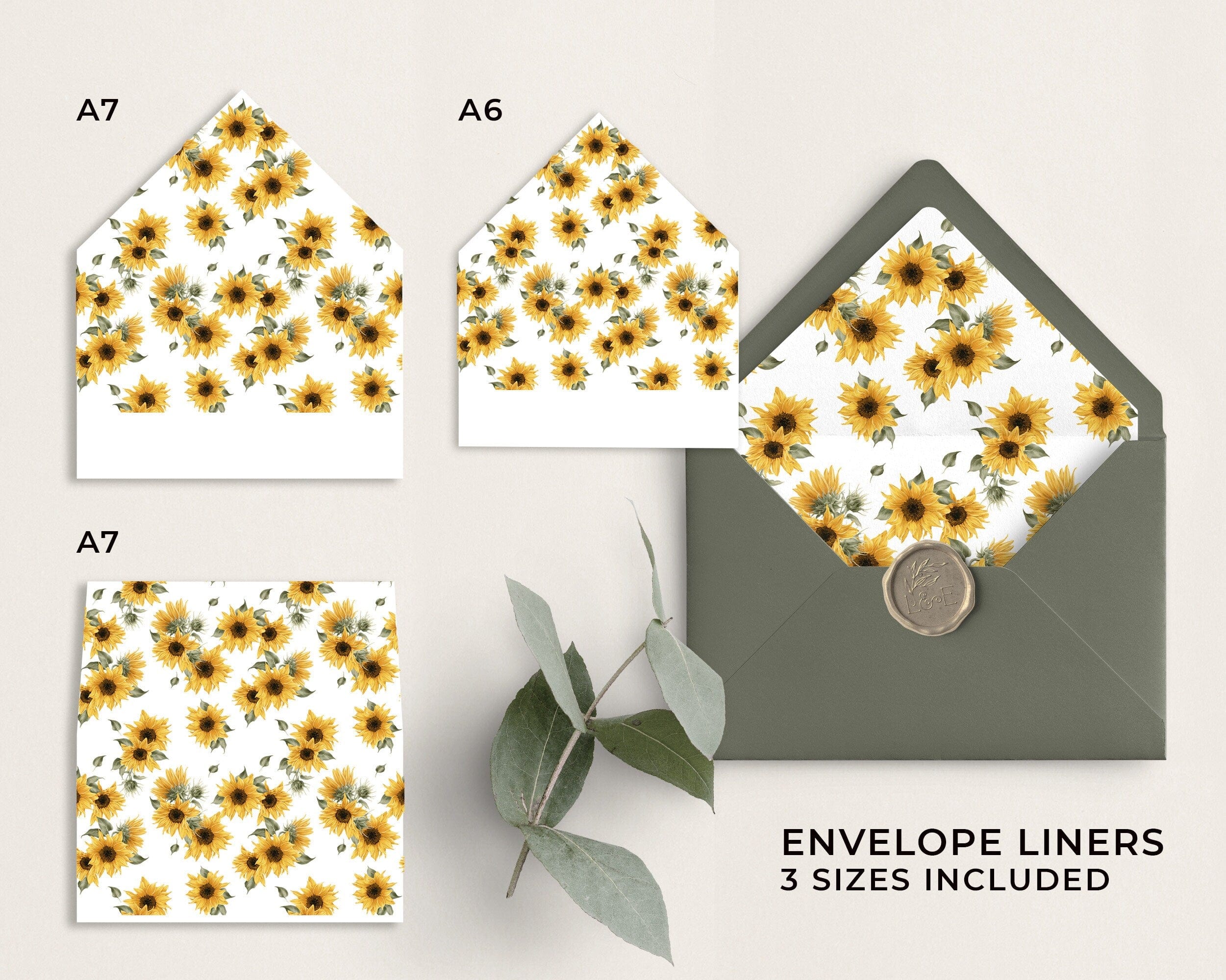 Envelope Liner With Sunflowers, EDITABLE Templates