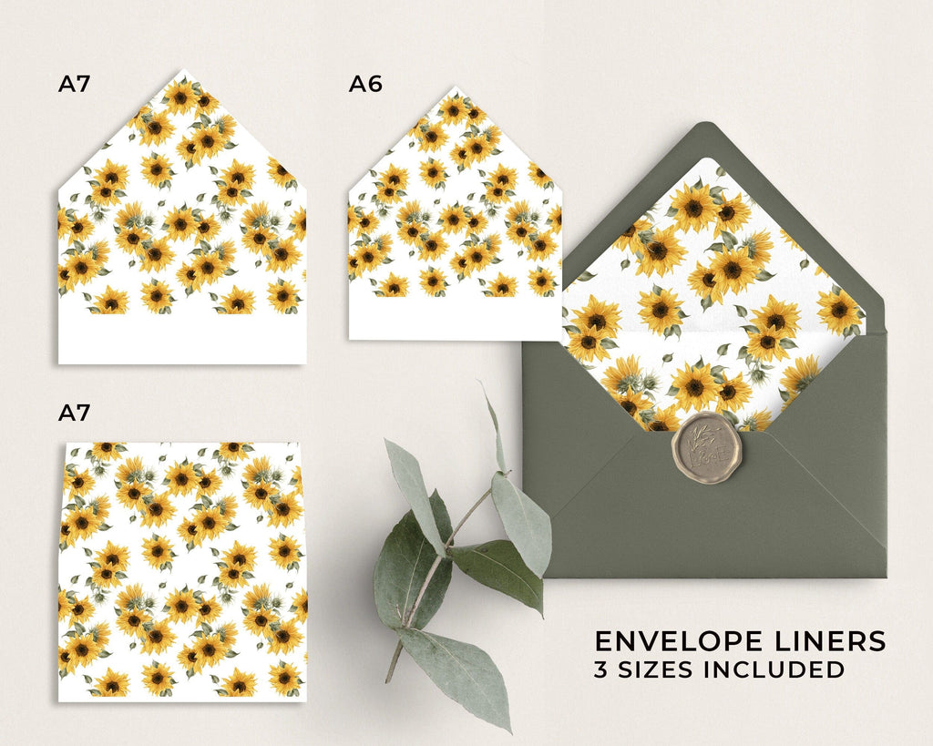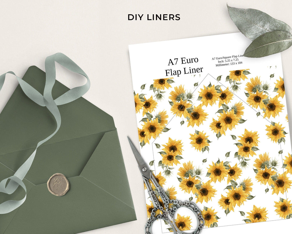 Envelope Liner With Sunflowers | Printable in 3 Sizes | DIY Bride Inspo