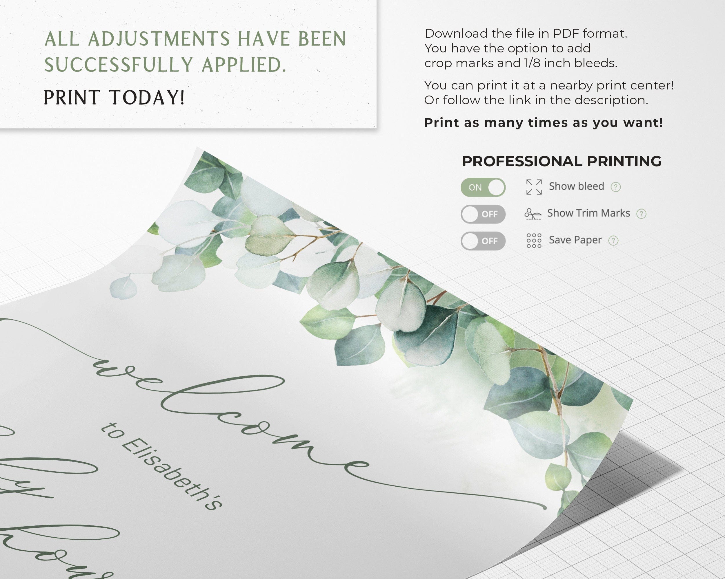 Eucalyptus Bridal Shower Welcome Signs | 5 sizes | DIY Bride Inspiration